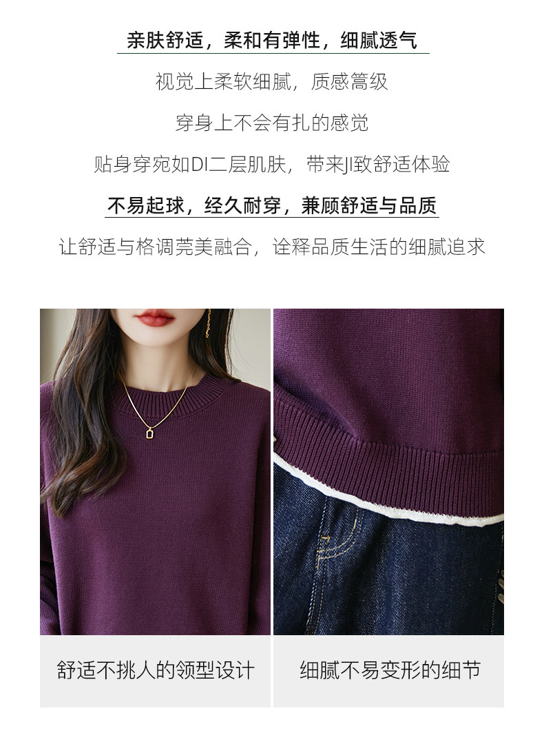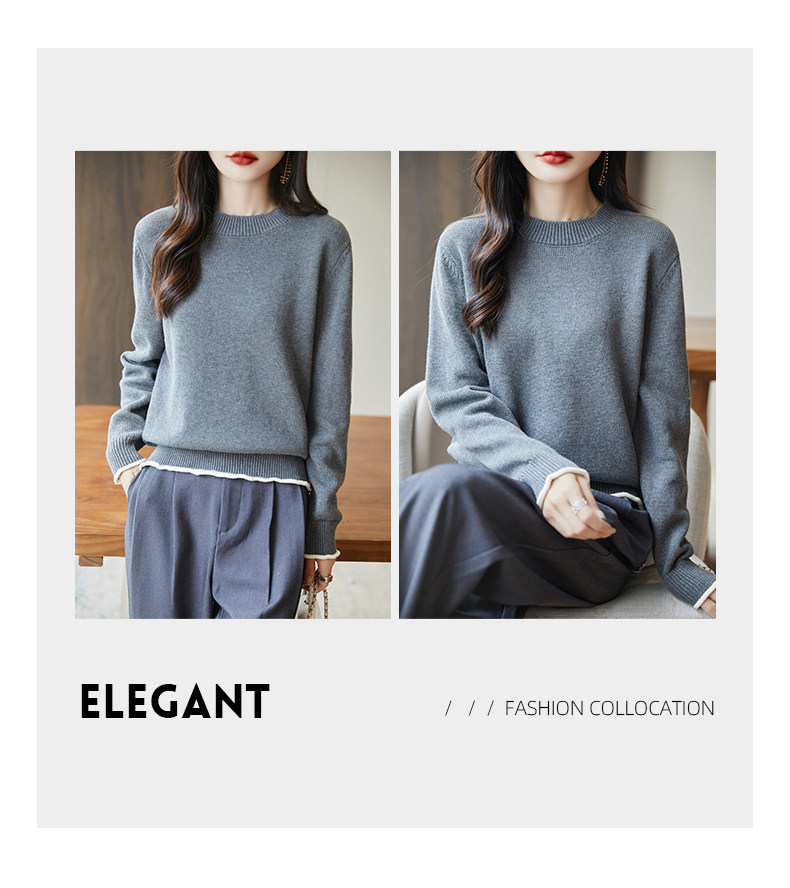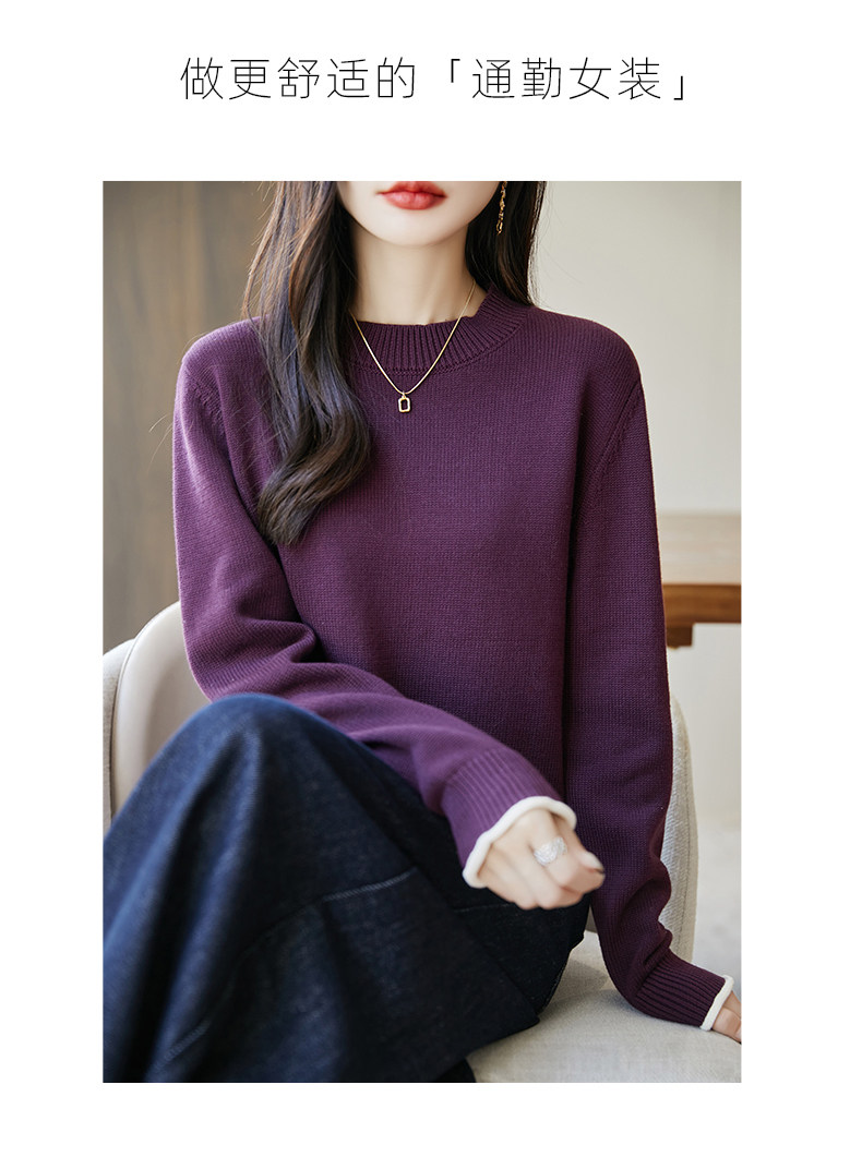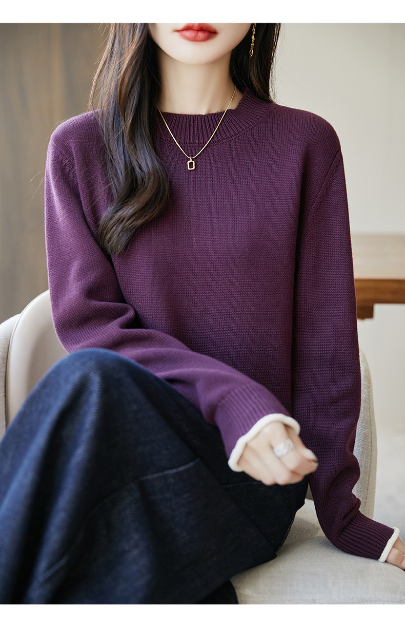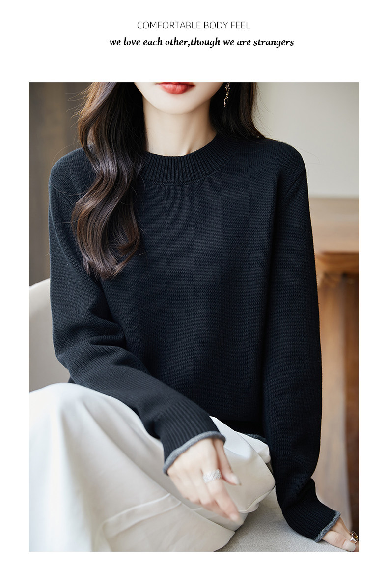 100% pure cotton thread contrast color miu sweater women's round neck sweater 2026 new thickened warm base top