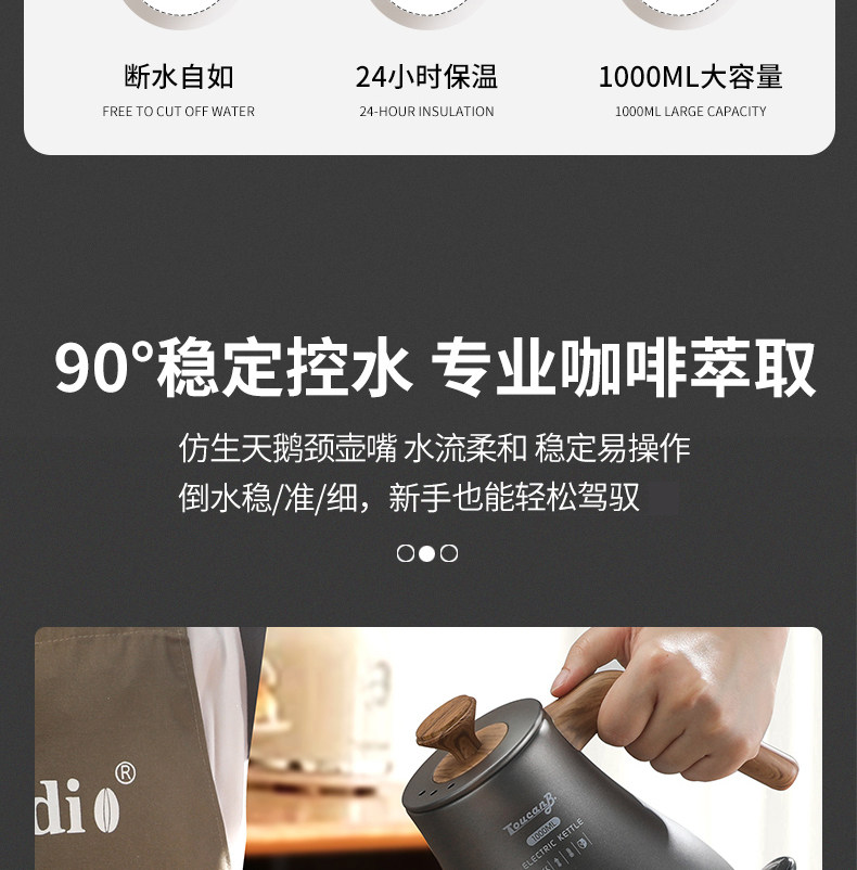 Mongdio electric hand brewing kettle hand brewing coffee electric kettle slender mouth coffee pot high-looking water boiling thermos kettle