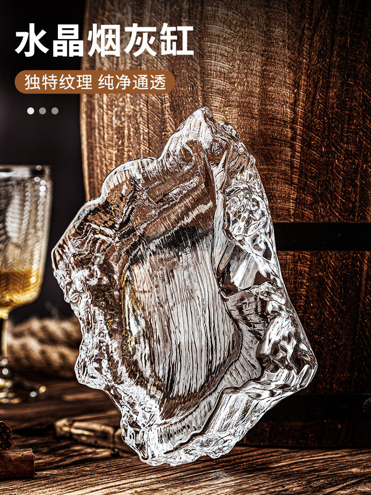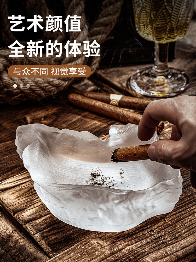 Large Ashtray with a High-End Feel, Special for Cigars, Creative Home Use in the Living Room, Thickened Crystal Glass Ashtray for Tea Table