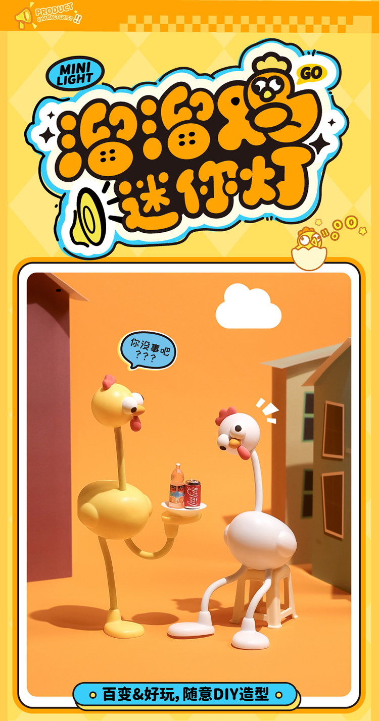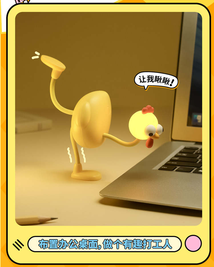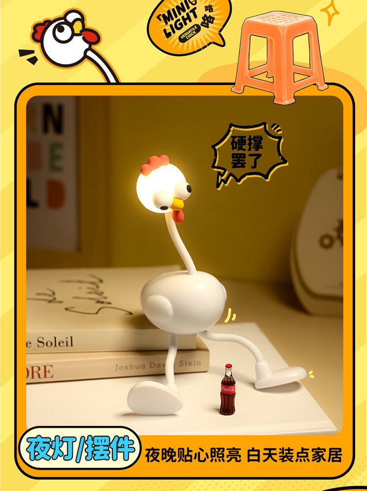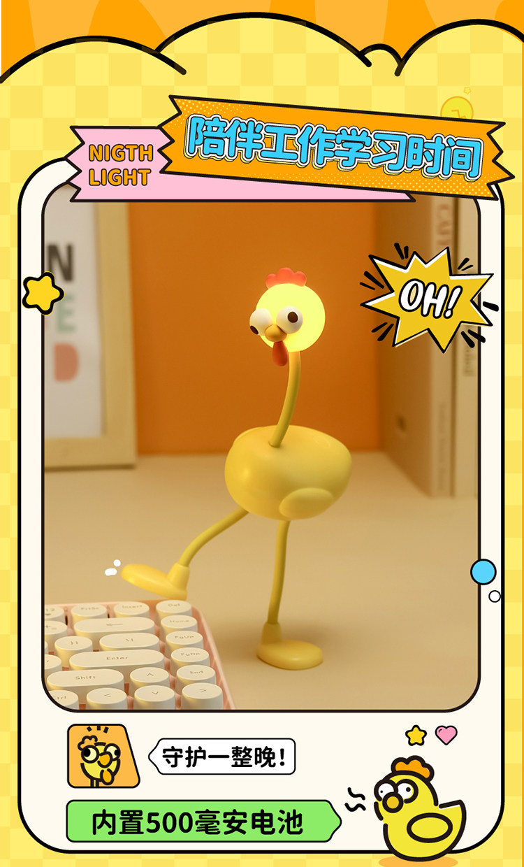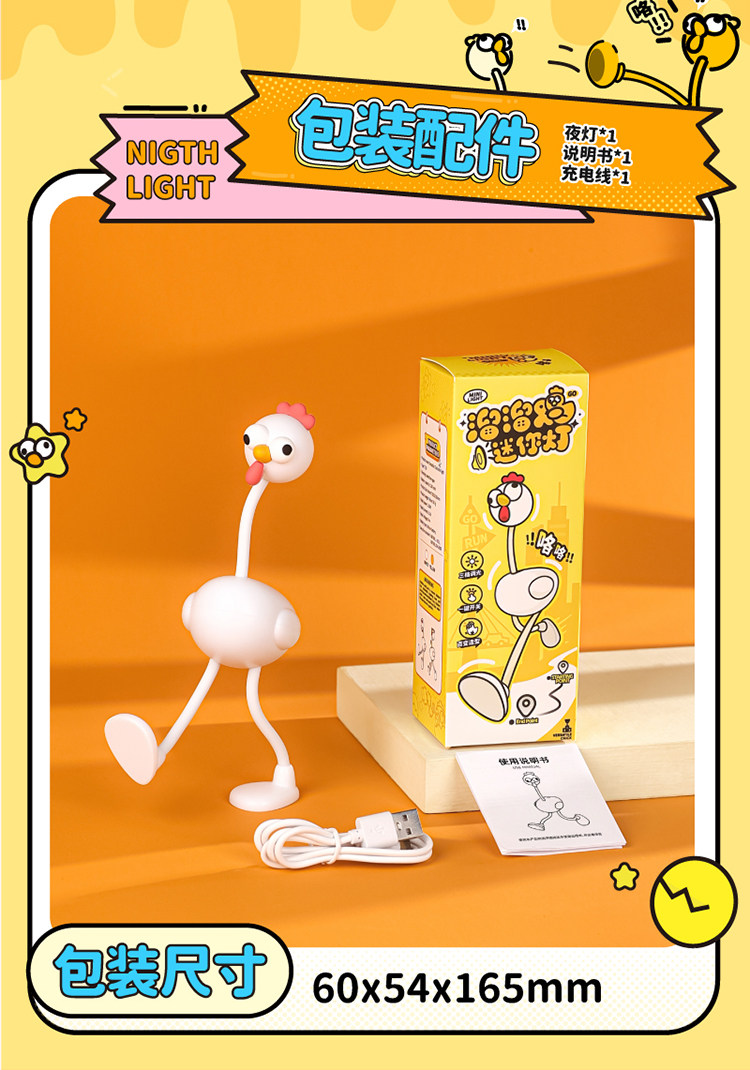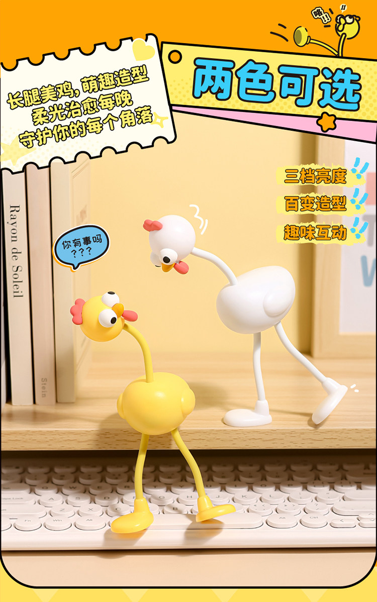Creative and Funny Night Light Desktop Decoration Bedside Lamp Cute Cartoon Long-Legged Chick Birthday Gift for Girls