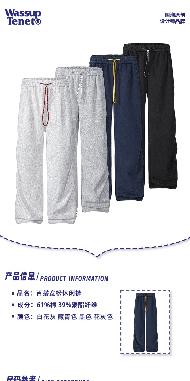 Wassup Tenet American-Style Pleated Heavyweight Sweatpants for Men, Spring and Autumn Trendy Brand Loose Casual Versatile Long Pants