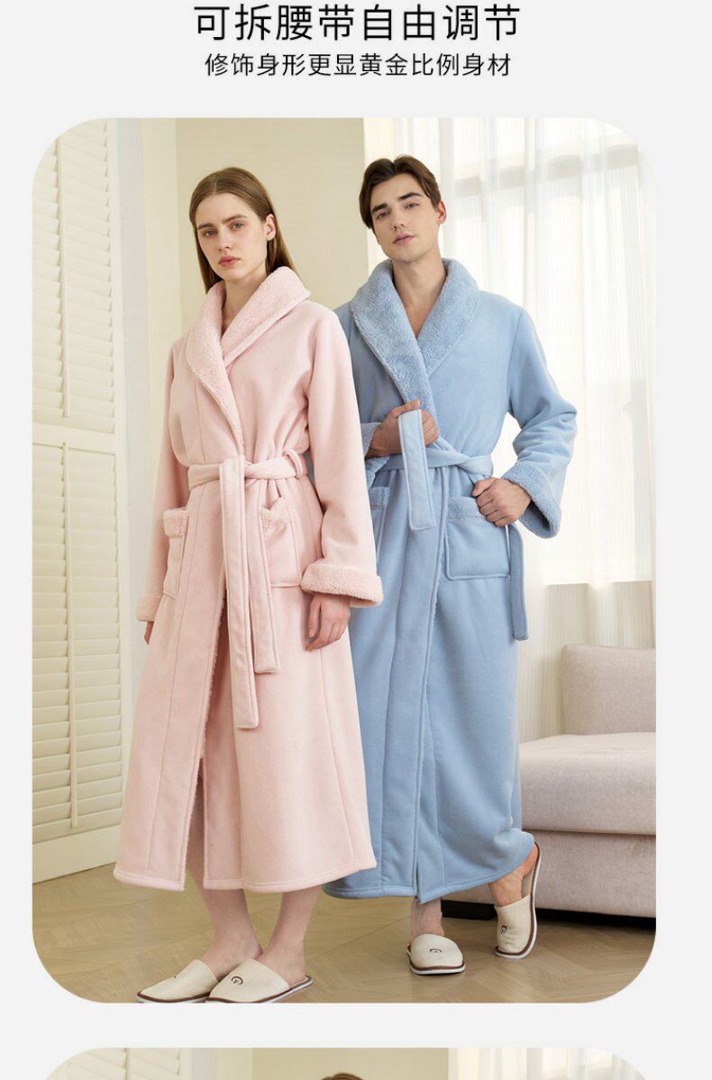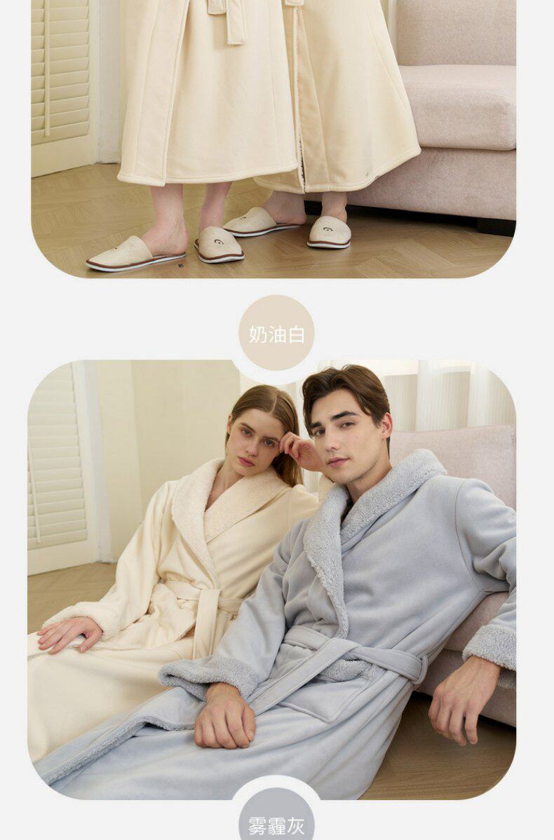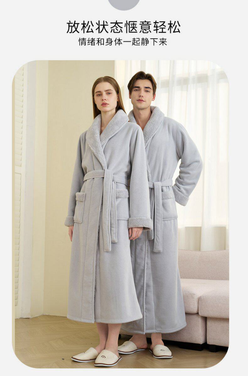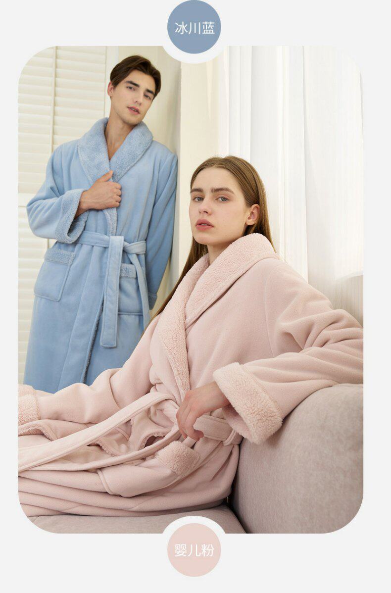 Coral Velvet Bathrobe for Autumn and Winter, Couple's Bathrobe, Men's Winter Bath Towel Style, Double-Layer Thickened Long Style, Women's Austrian Velvet Pajamas