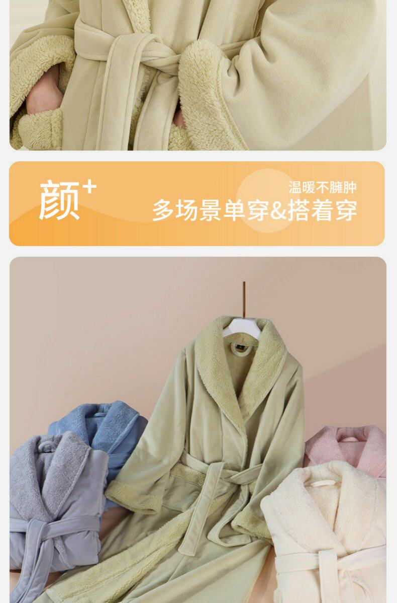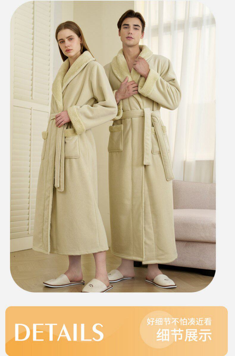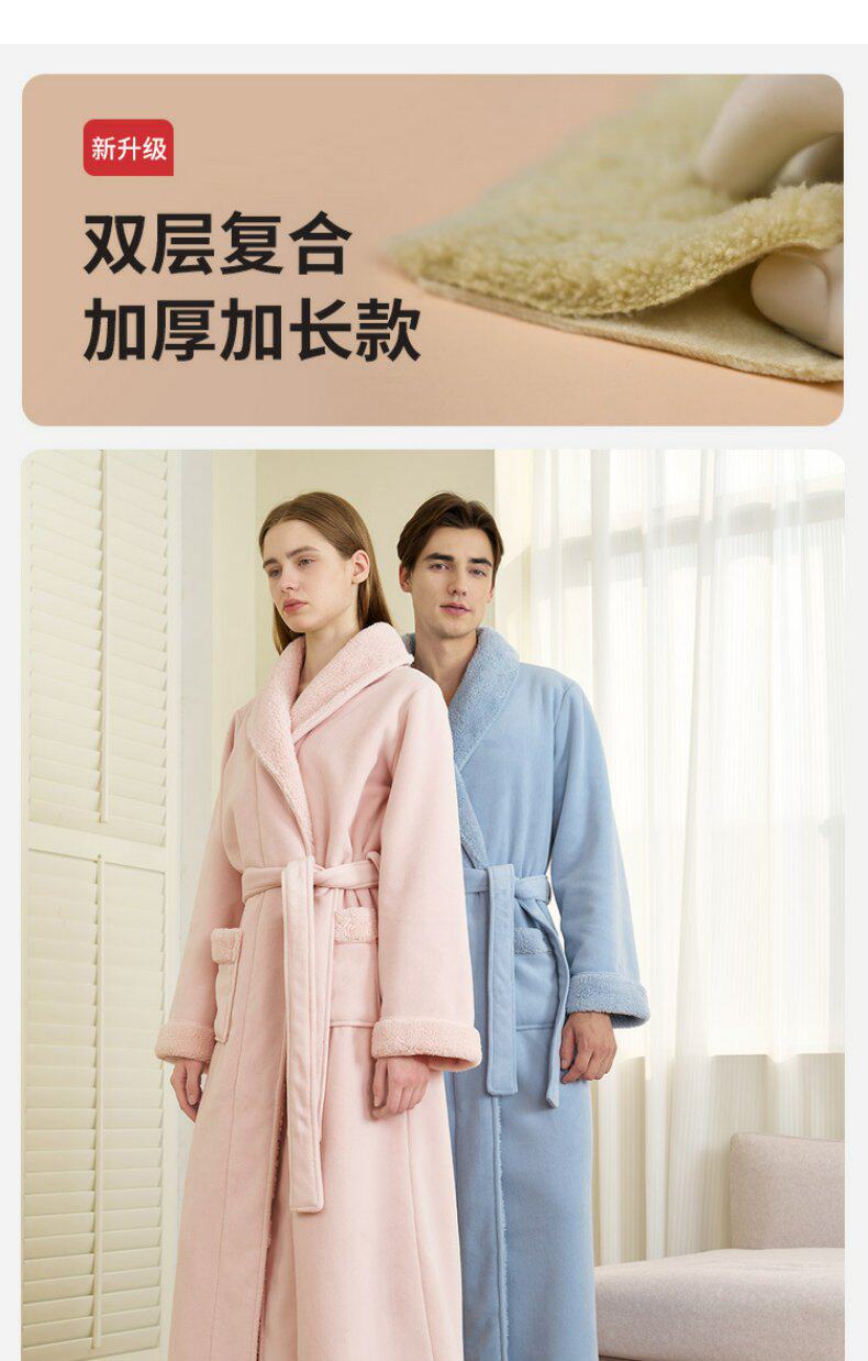 Coral Velvet Bathrobe for Autumn and Winter, Couple's Bathrobe, Men's Winter Bath Towel Style, Double-Layer Thickened Long Style, Women's Austrian Velvet Pajamas