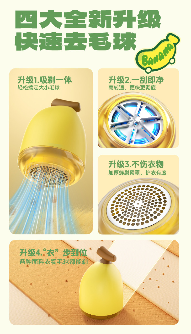 Cute Banana Lint Remover Shaver Mini Portable Home Clothes Rechargeable Depilator Fuzz Remover Tool
