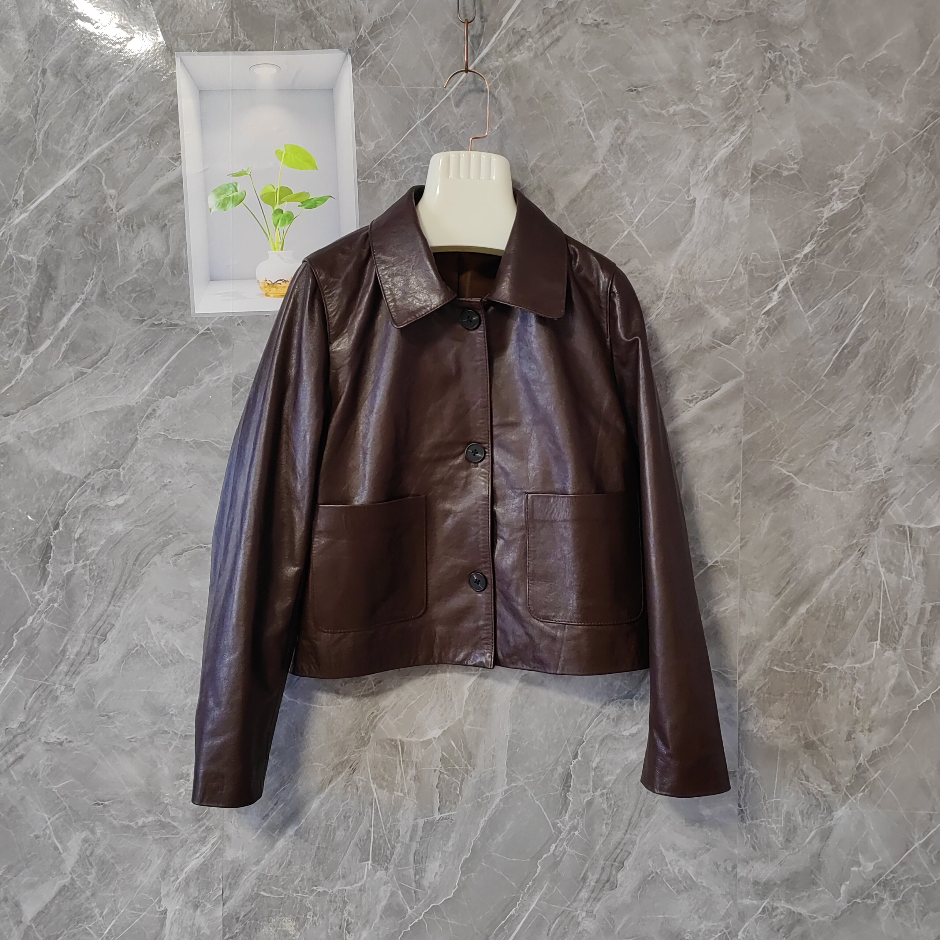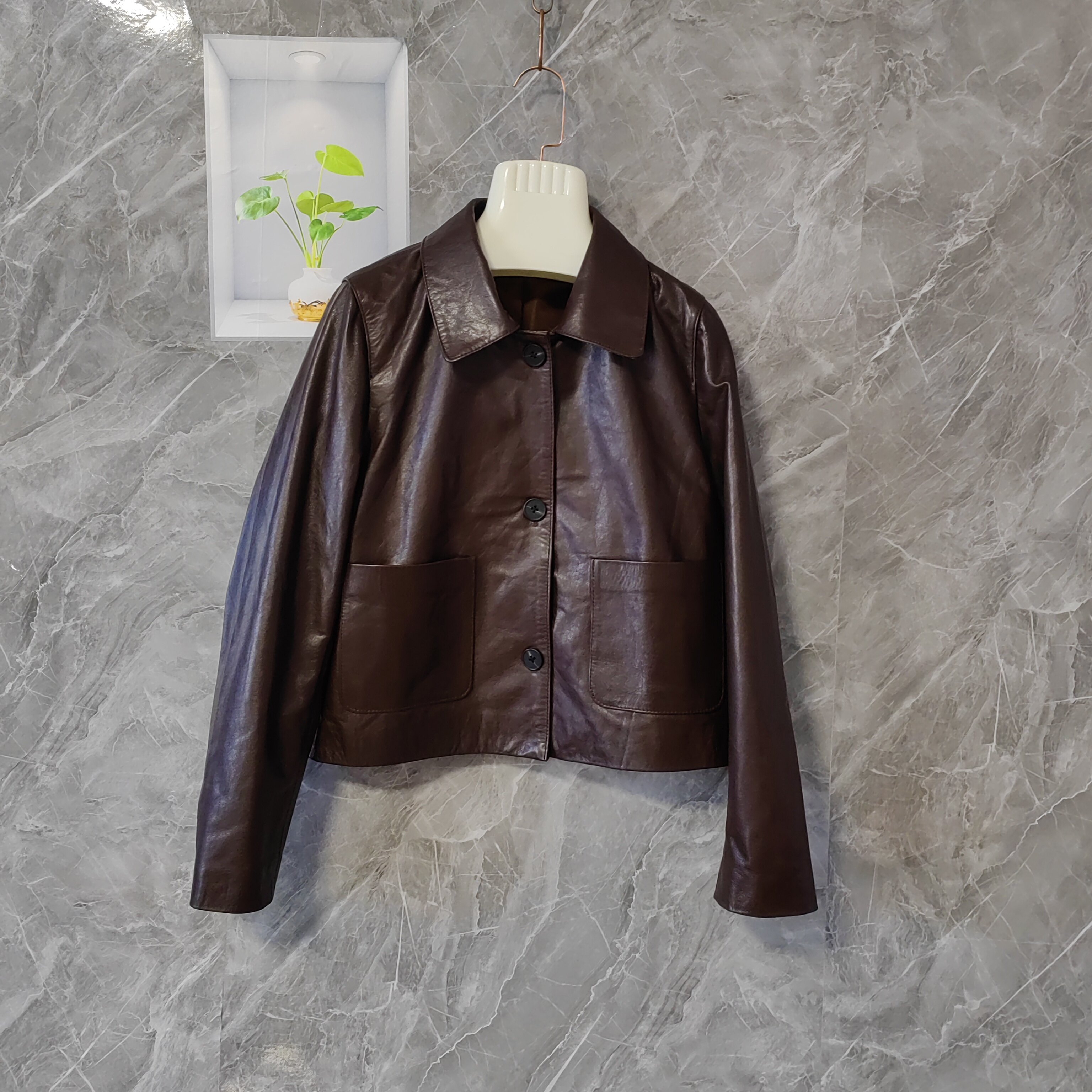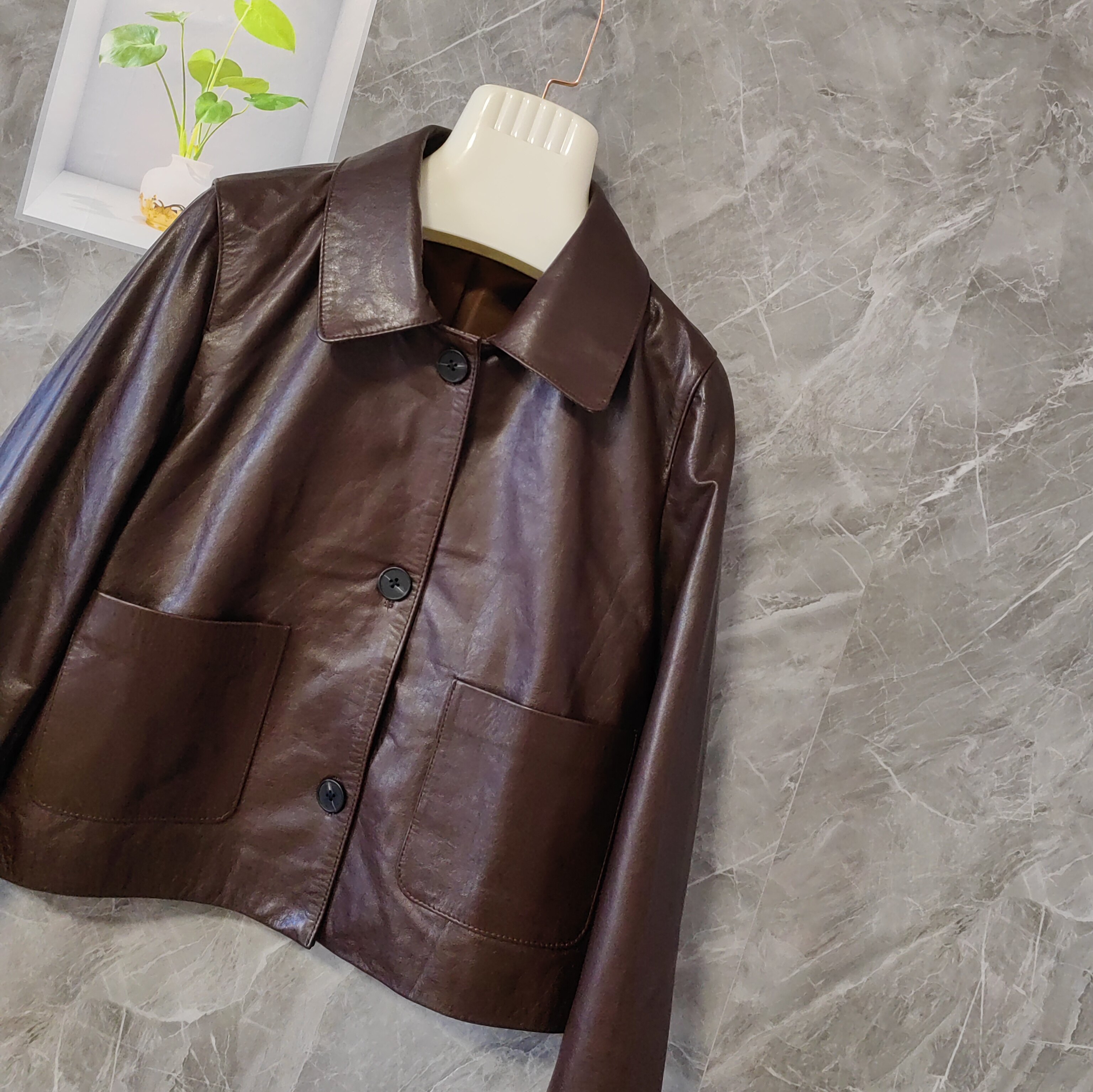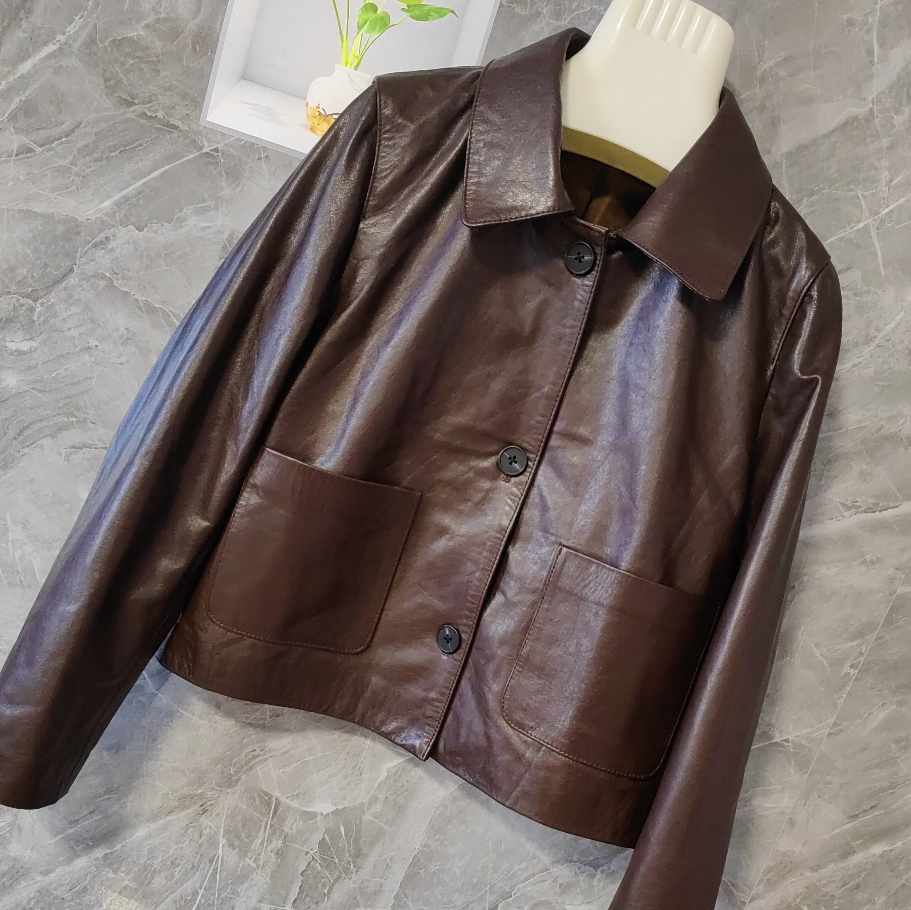 Datongtong same style genuine leather jacket for women 2025 autumn new sheepskin short coat fashionable motorcycle jacket