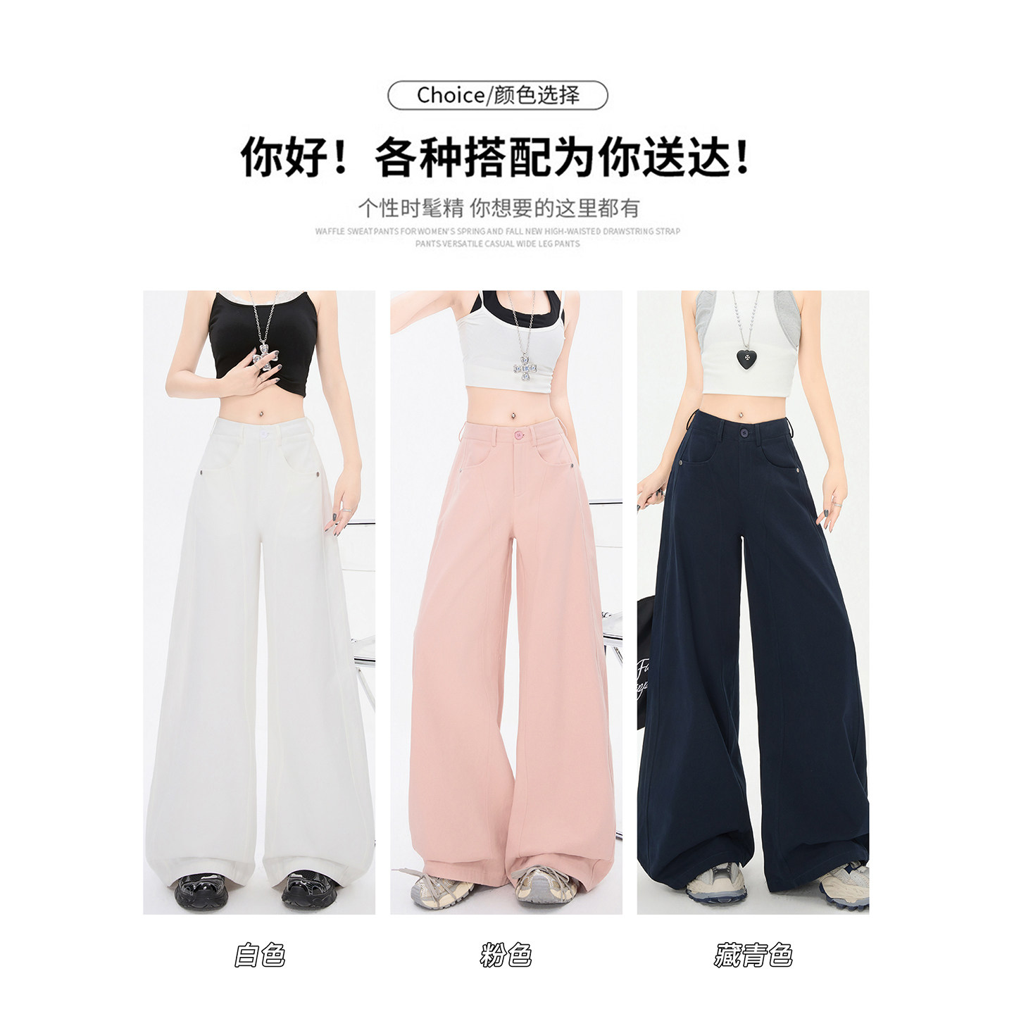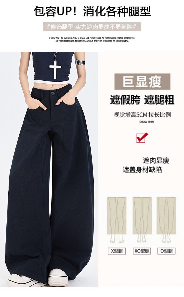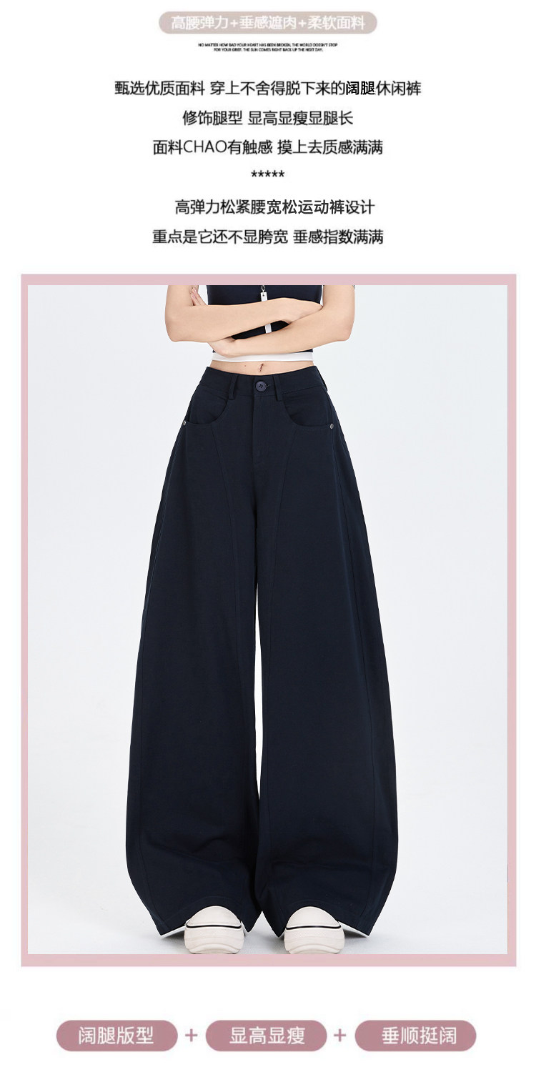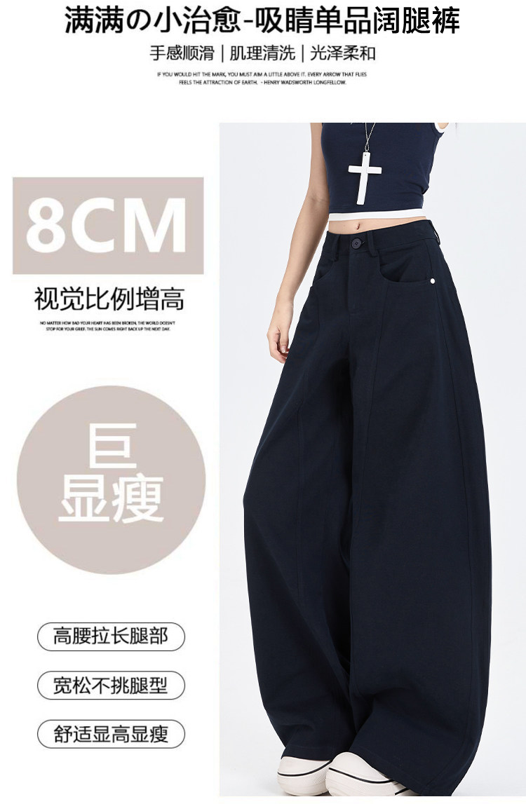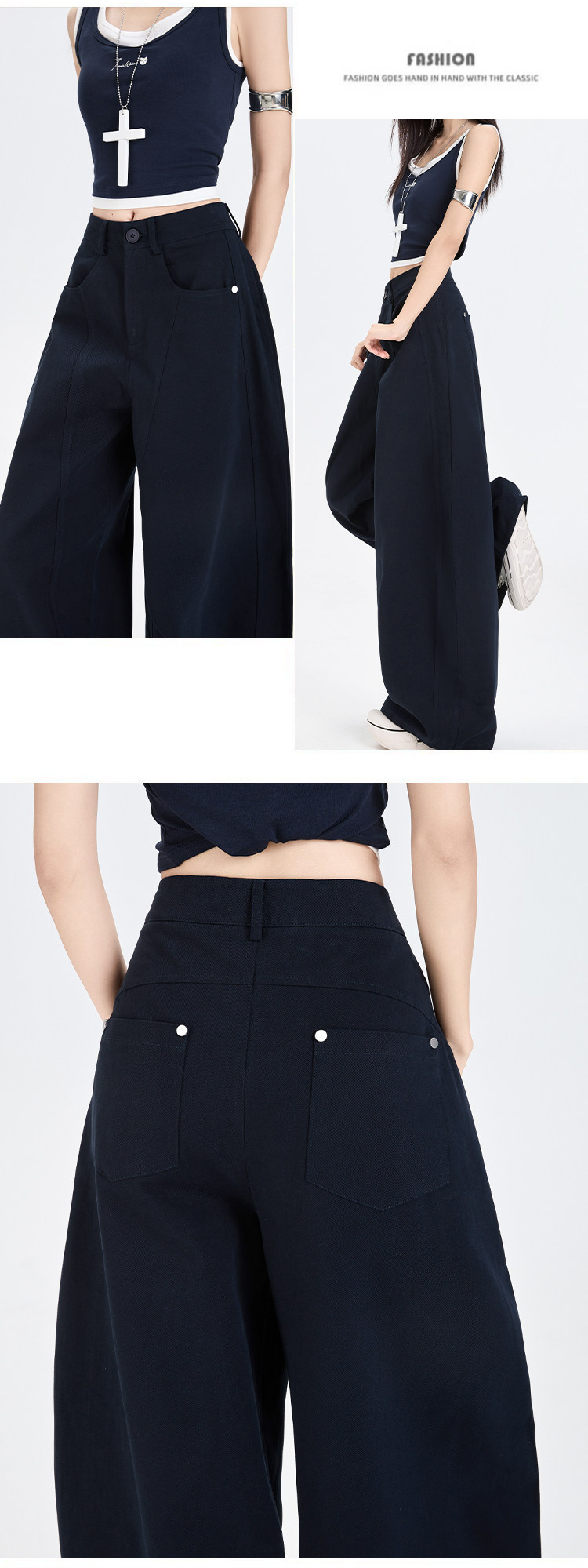 Navy Ramie Scimitar Jeans Women's Summer 2025 New Spring and Autumn High Waist Drape Quick-Drying Sports Wide Leg Pants