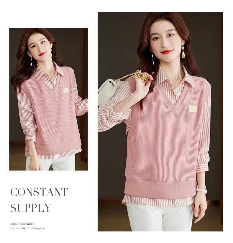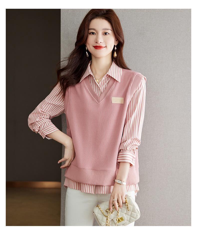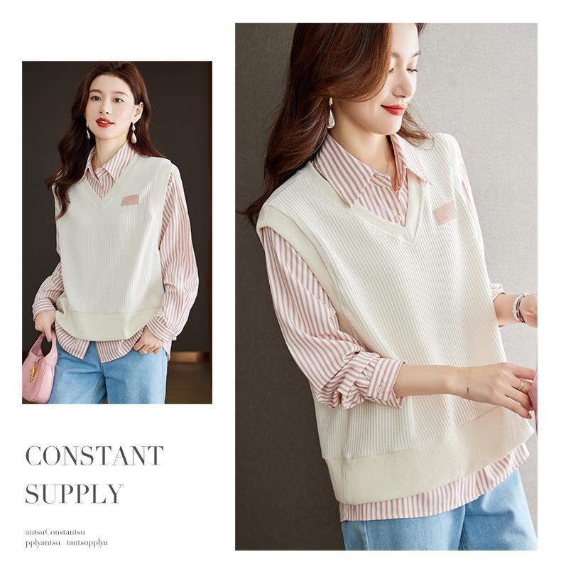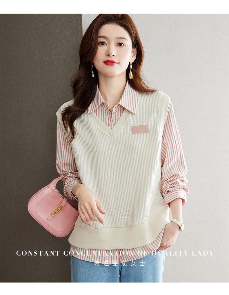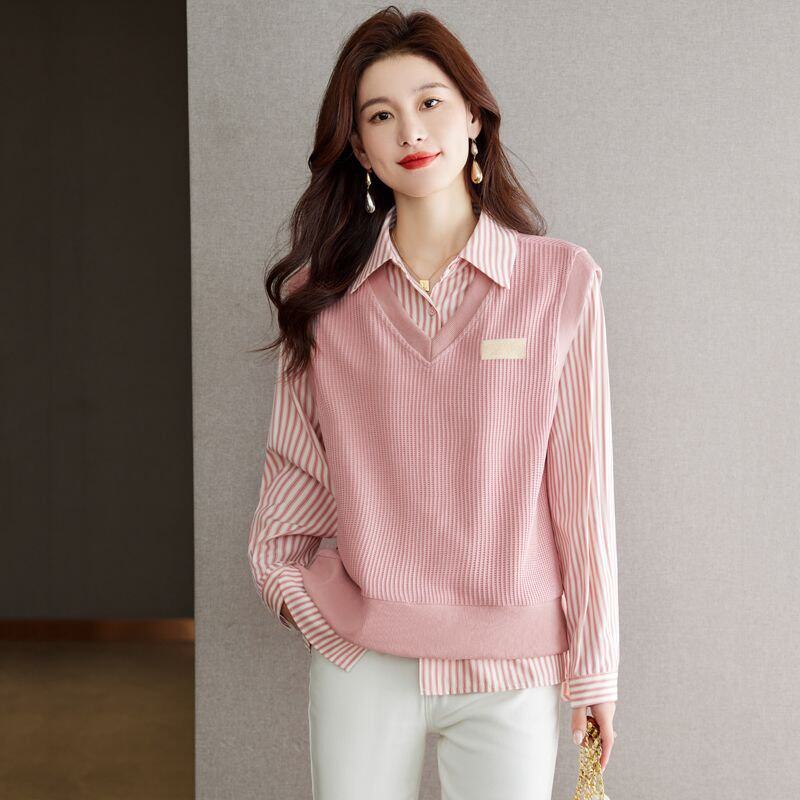 Autumn and Winter Women's Clothing 2025 New Style Shirt Sweatshirt Fake Two-Piece Korean Style Long-Sleeved Trendy Age-Reducing Top
