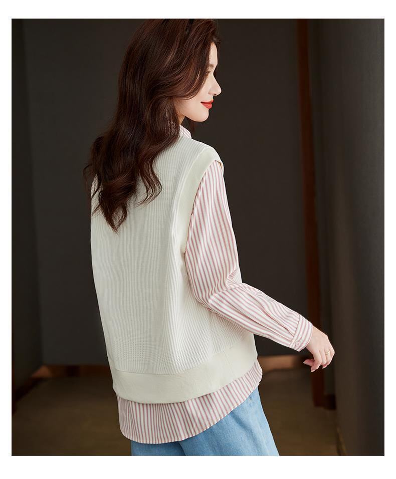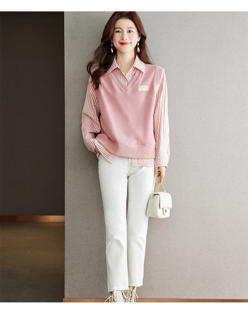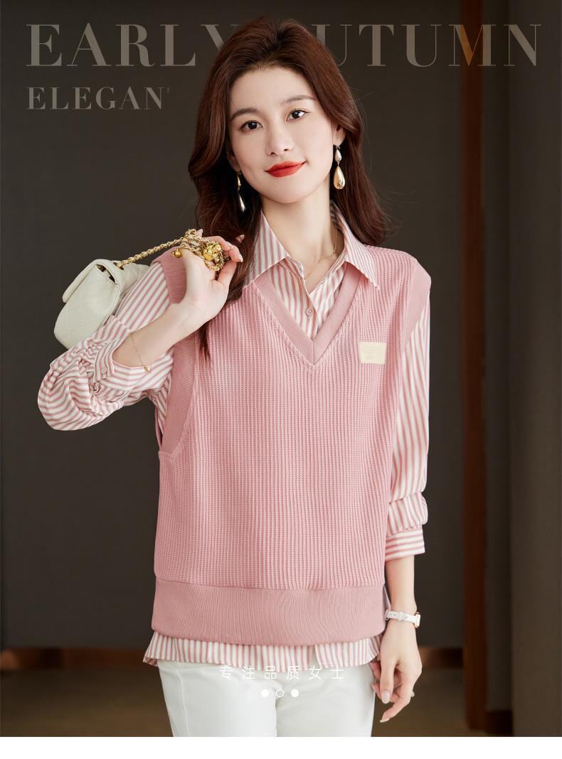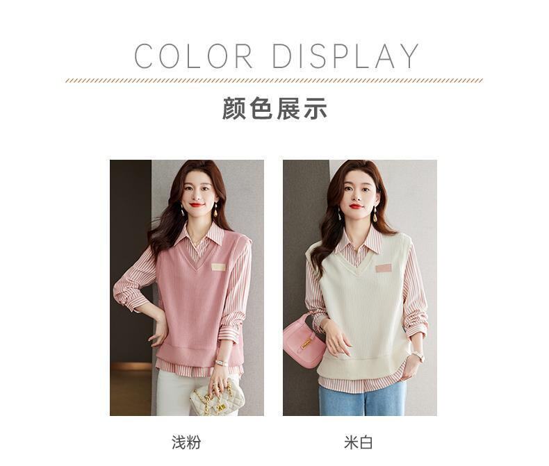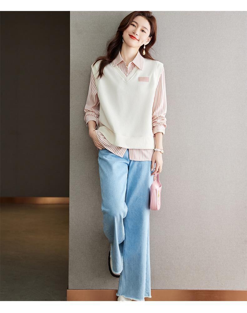 Autumn and Winter Women's Clothing 2025 New Style Shirt Sweatshirt Fake Two-Piece Korean Style Long-Sleeved Trendy Age-Reducing Top