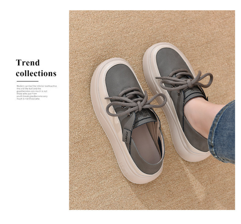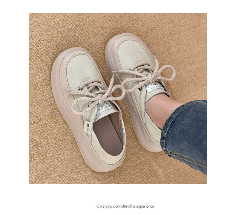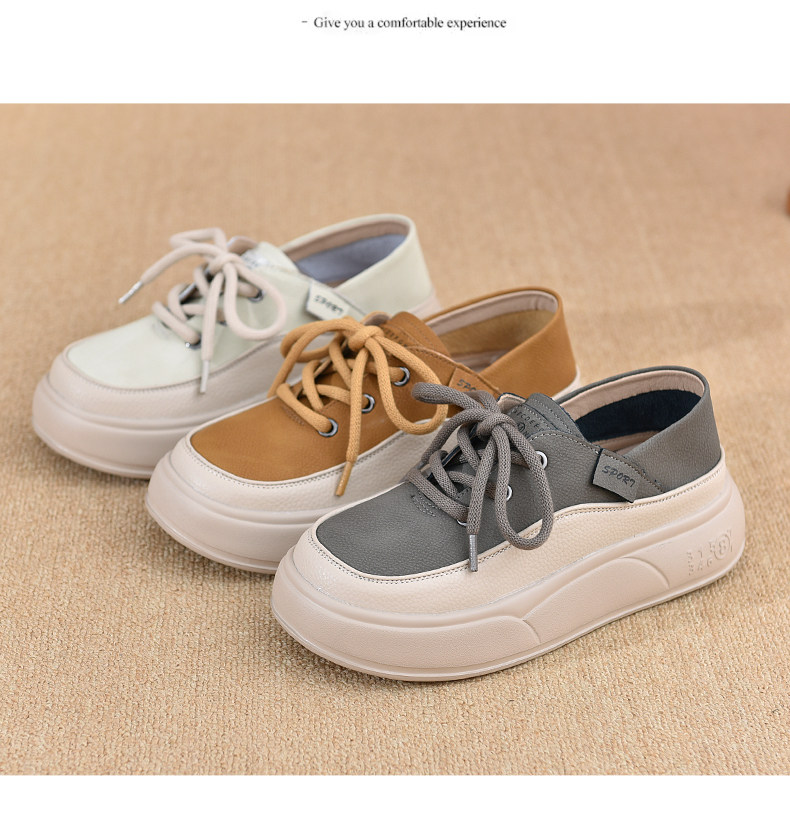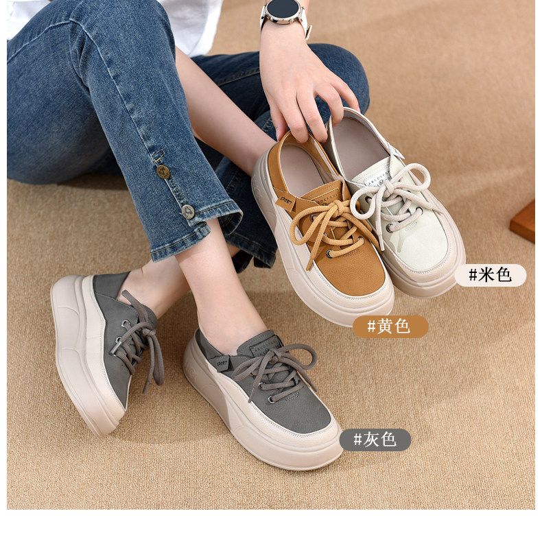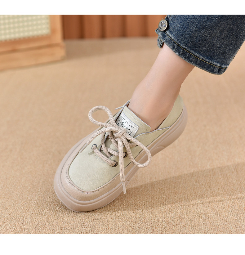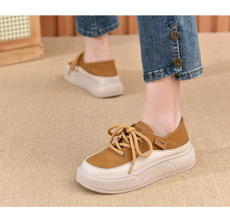 Genuine Leather Women's Shoes with Thick Soles, 2026 New Spring and Autumn British Style Round-Toe Soft-Soled Loafers, Lace-Up Small Leather Shoes