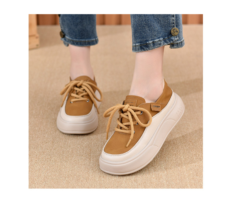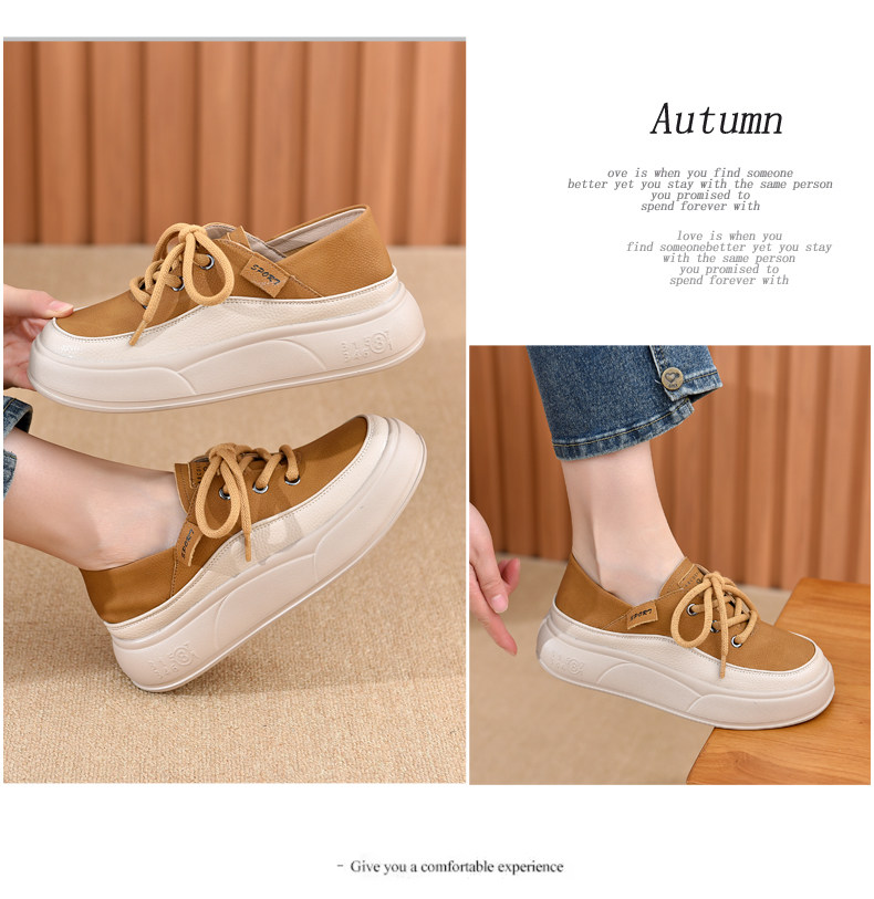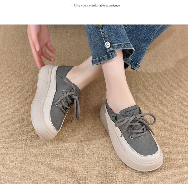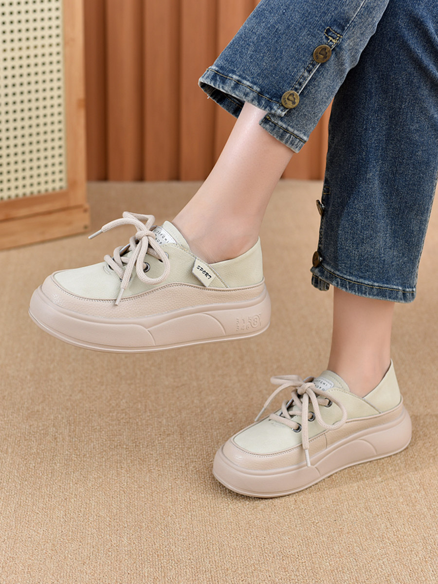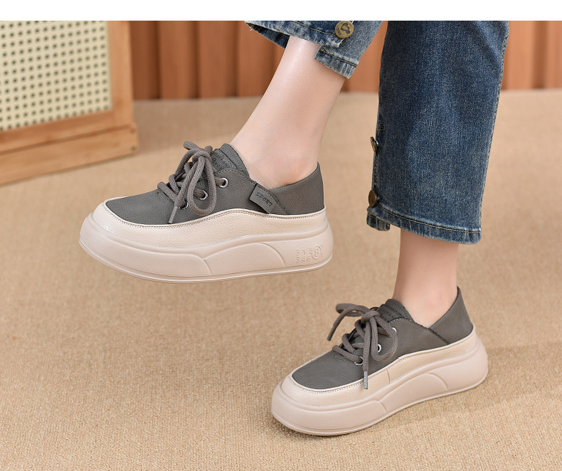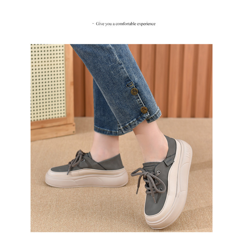 Genuine Leather Women's Shoes with Thick Soles, 2026 New Spring and Autumn British Style Round-Toe Soft-Soled Loafers, Lace-Up Small Leather Shoes