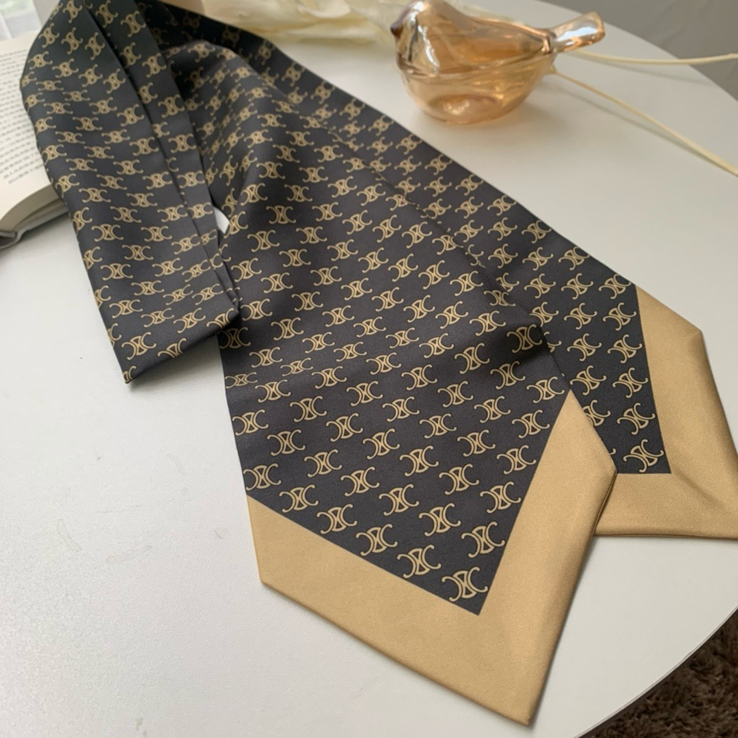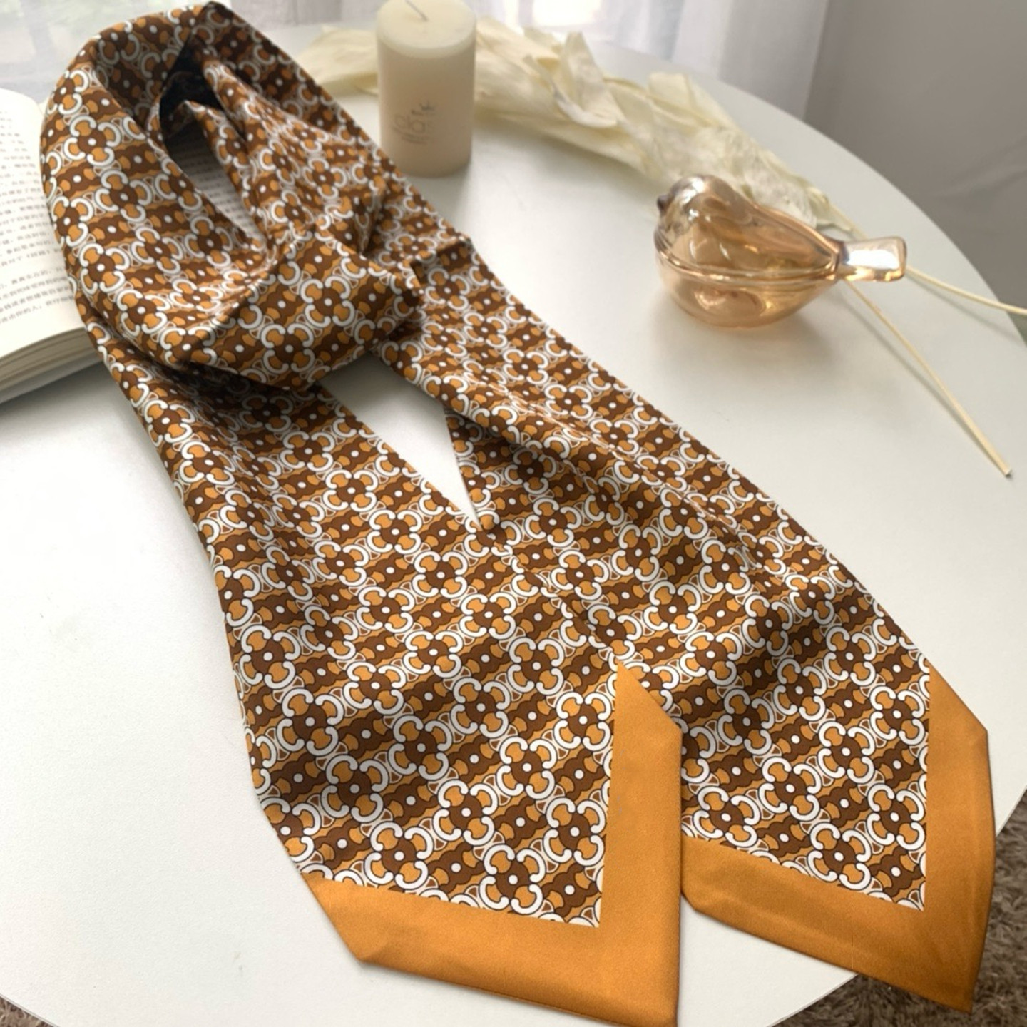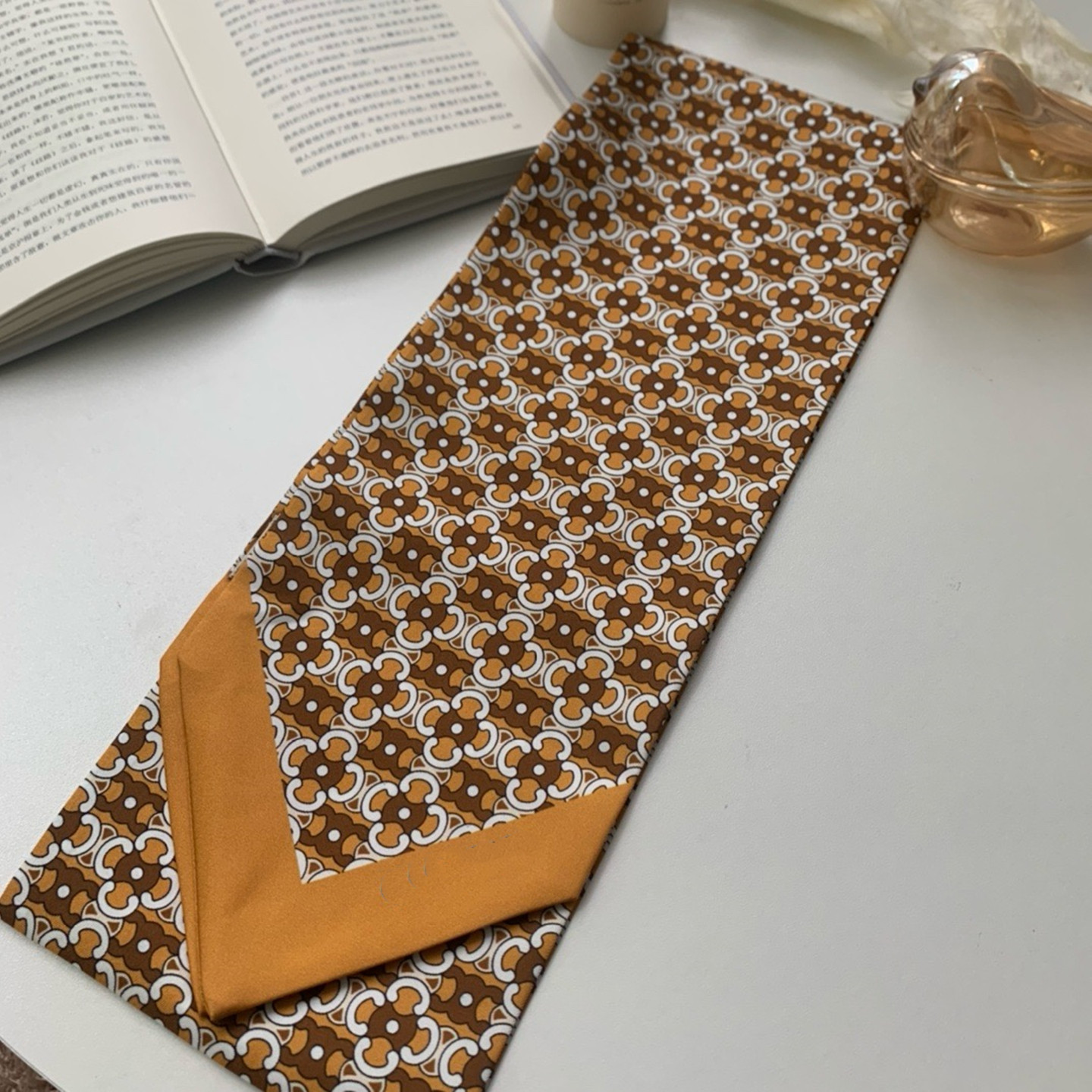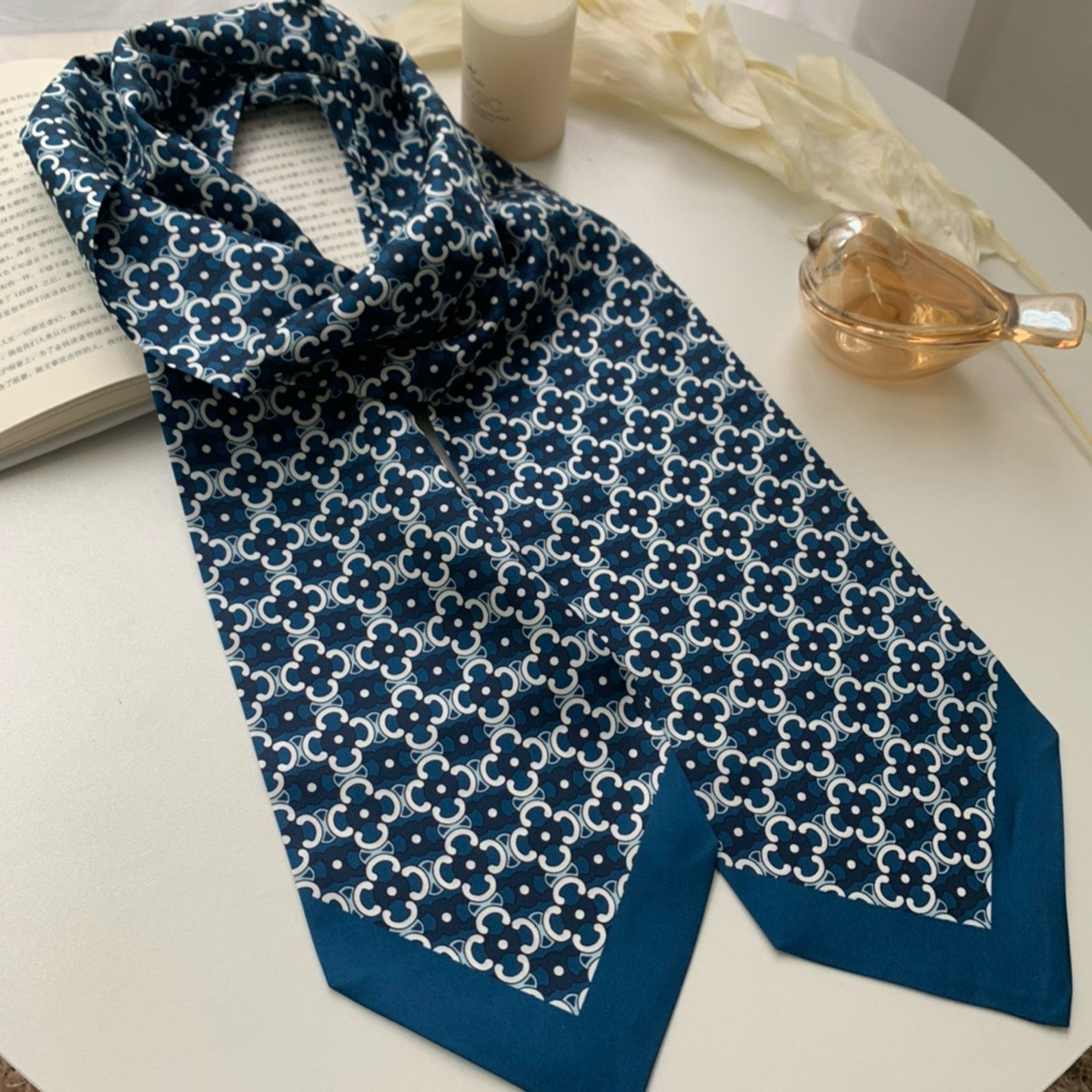 Arc De Triomphe Silk Twill Double-Layer Large Ribbon Monogram Clover Silk Scarf Mulberry Silk Neck Scarf Long Versatile Scarf