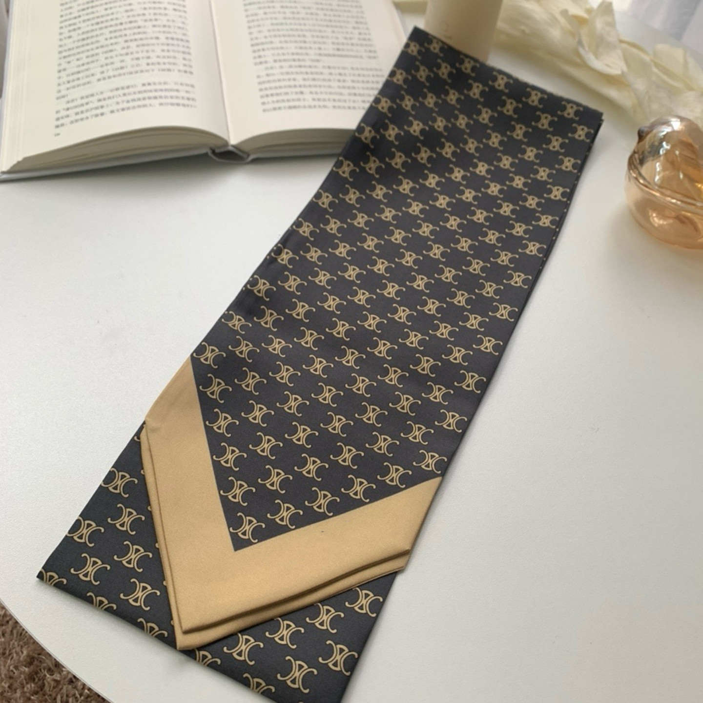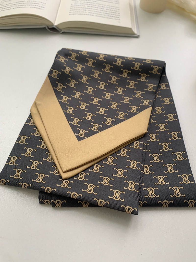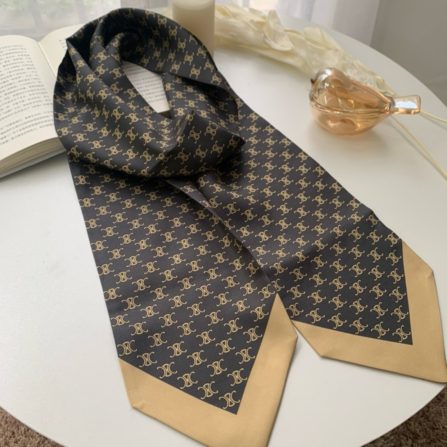 Arc De Triomphe Silk Twill Double-Layer Large Ribbon Monogram Clover Silk Scarf Mulberry Silk Neck Scarf Long Versatile Scarf