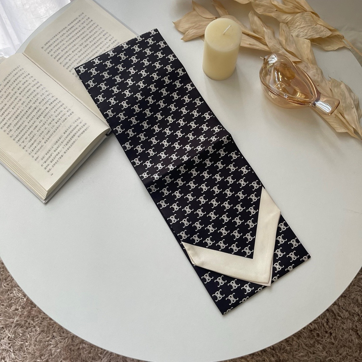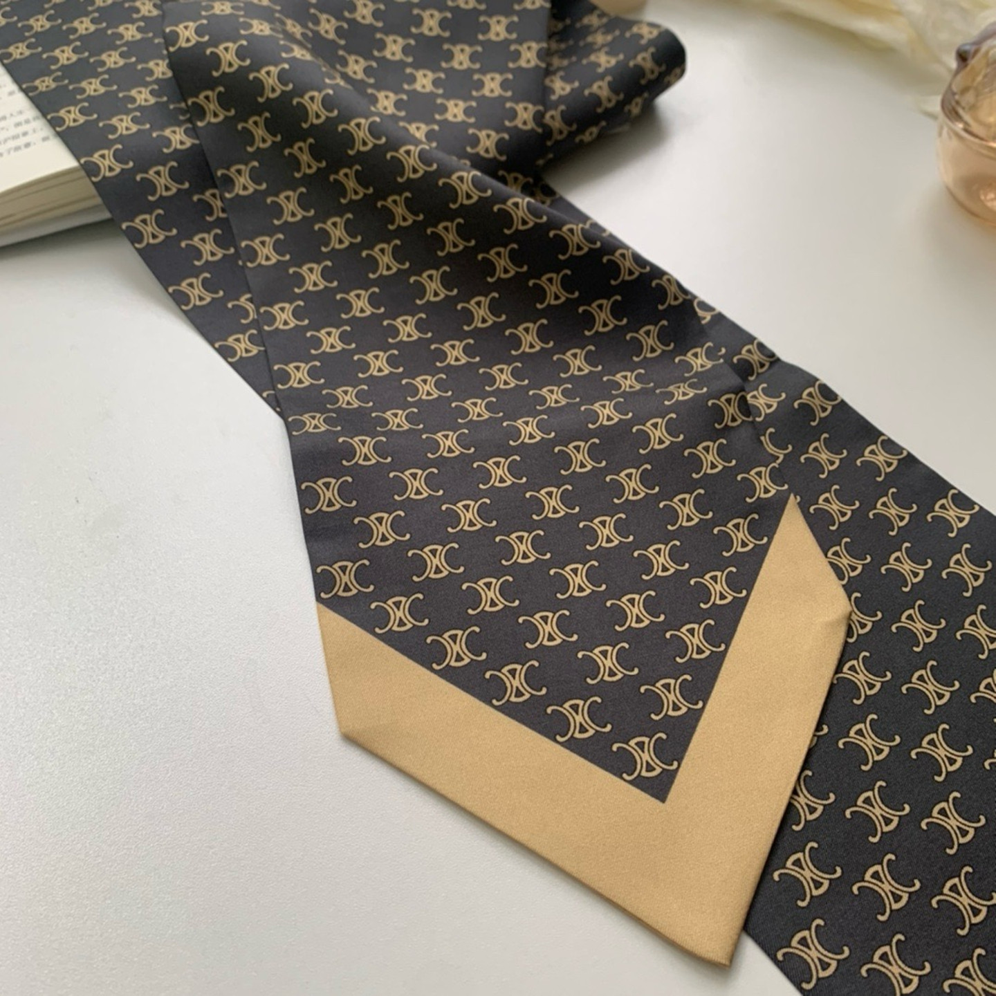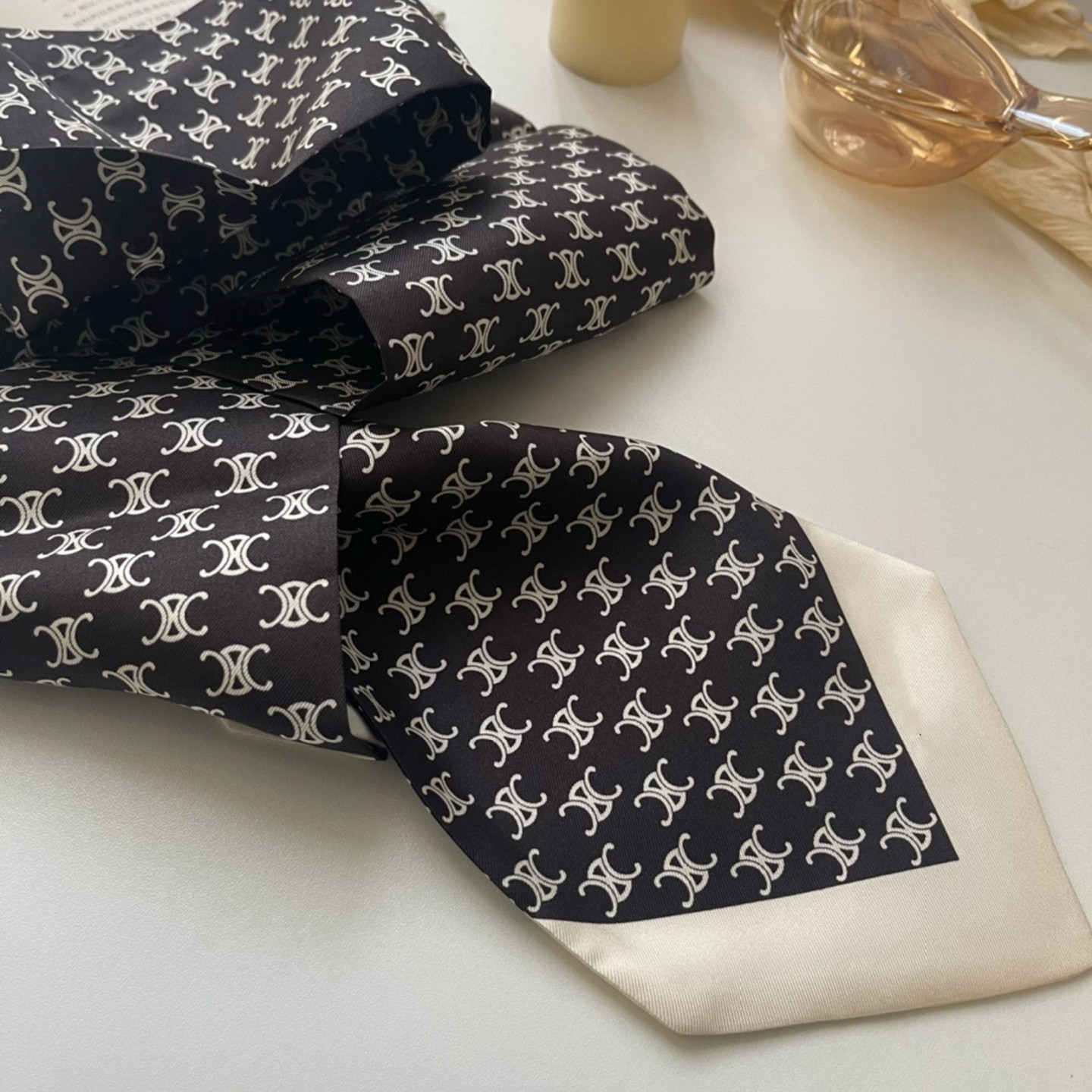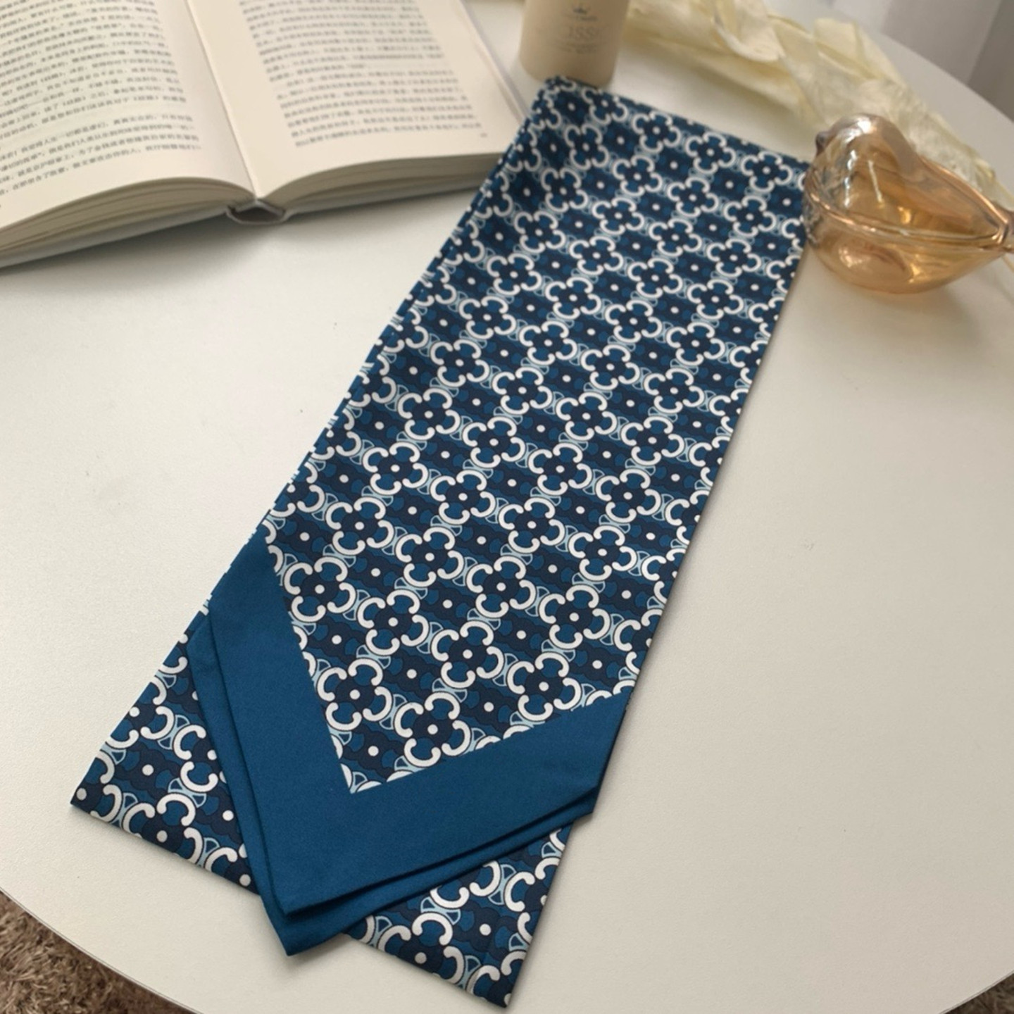 Arc De Triomphe Silk Twill Double-Layer Large Ribbon Monogram Clover Silk Scarf Mulberry Silk Neck Scarf Long Versatile Scarf