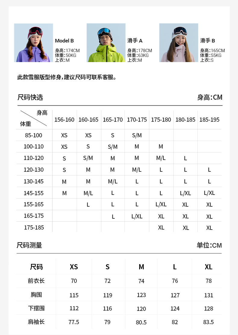 China (cm) 160-165/84-86 165-170 / 88-90 167-172 / 92-96 168-173 / 98-102 170-176 / 106-110