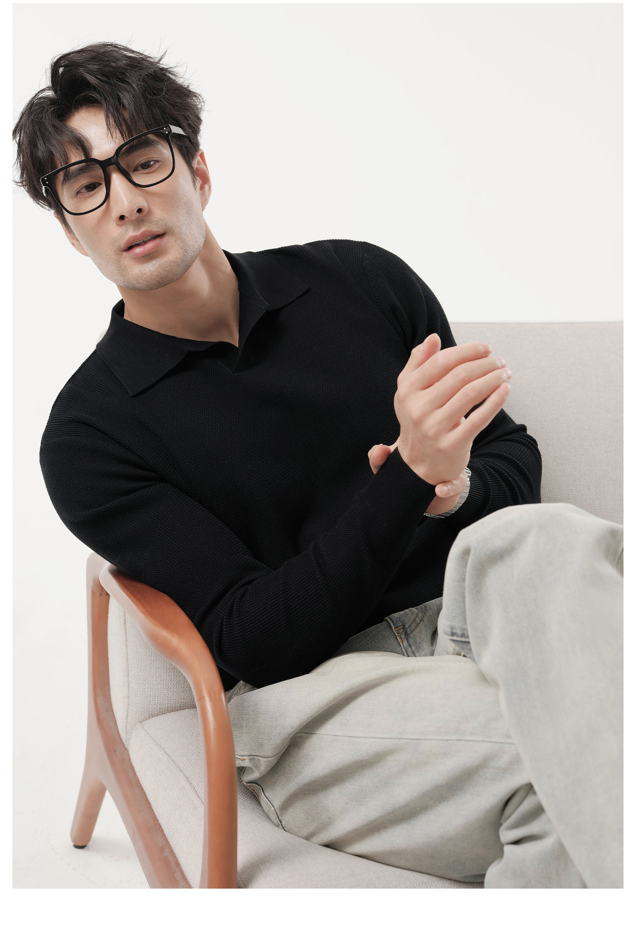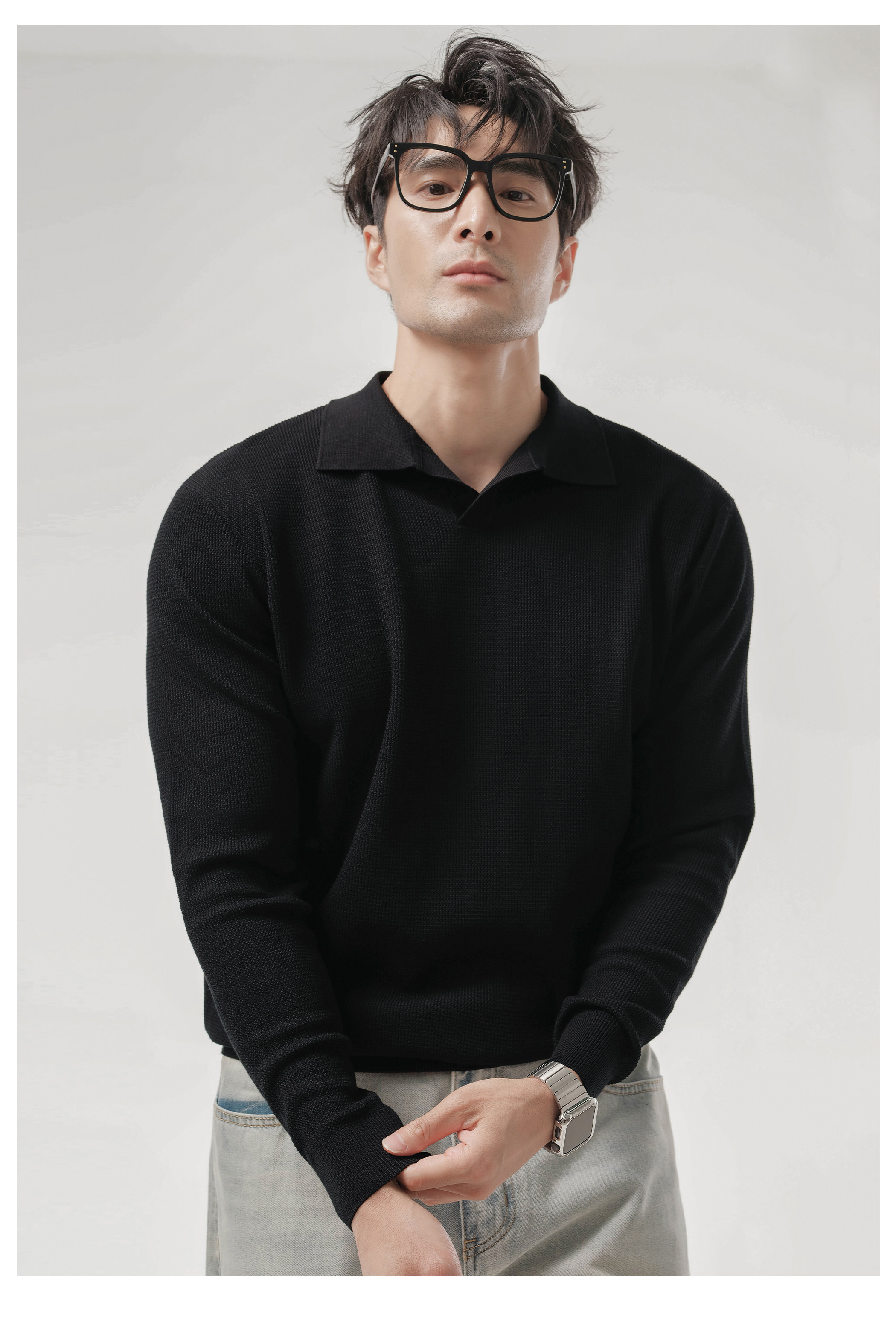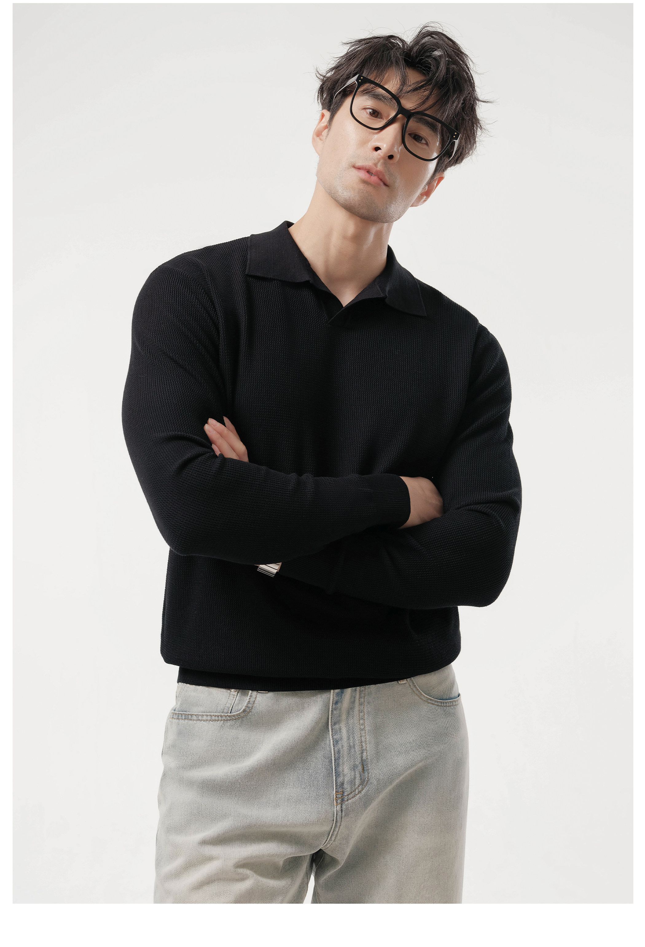 Continued natural luxury anti-pilling sweater long-sleeved top seagull collar waffle sweater autumn for men