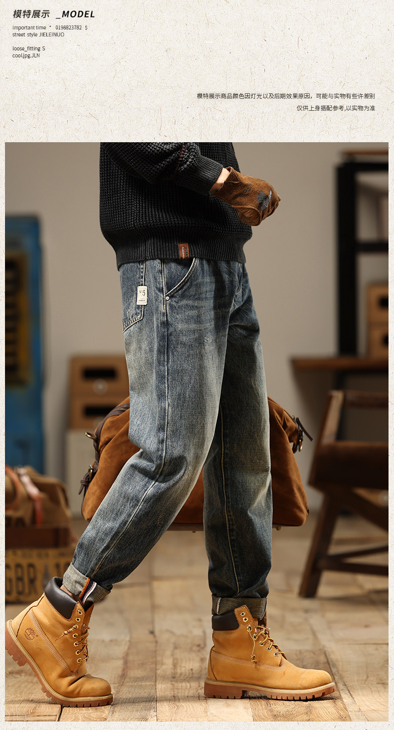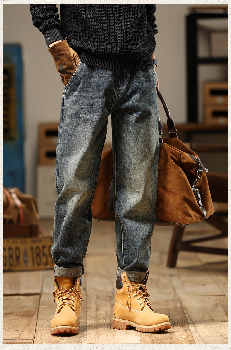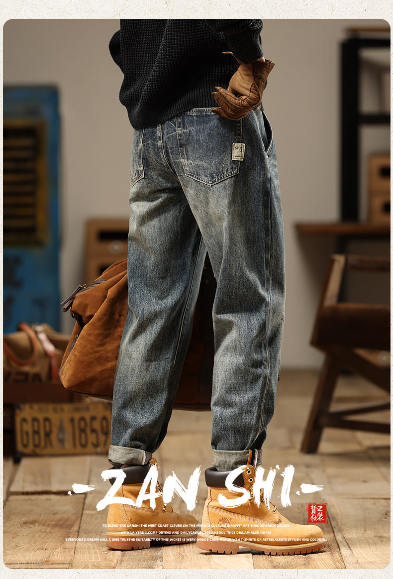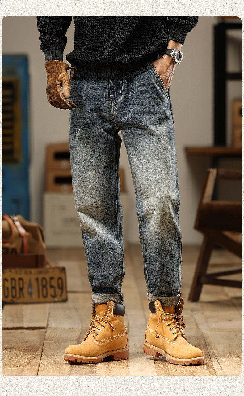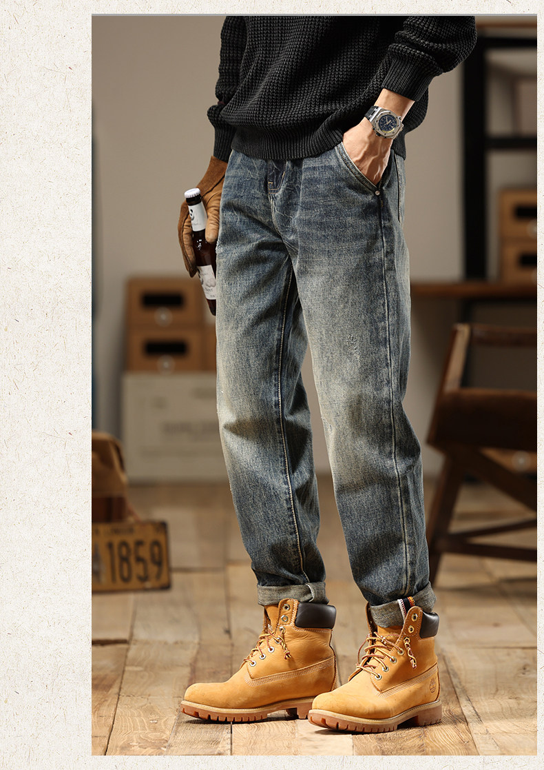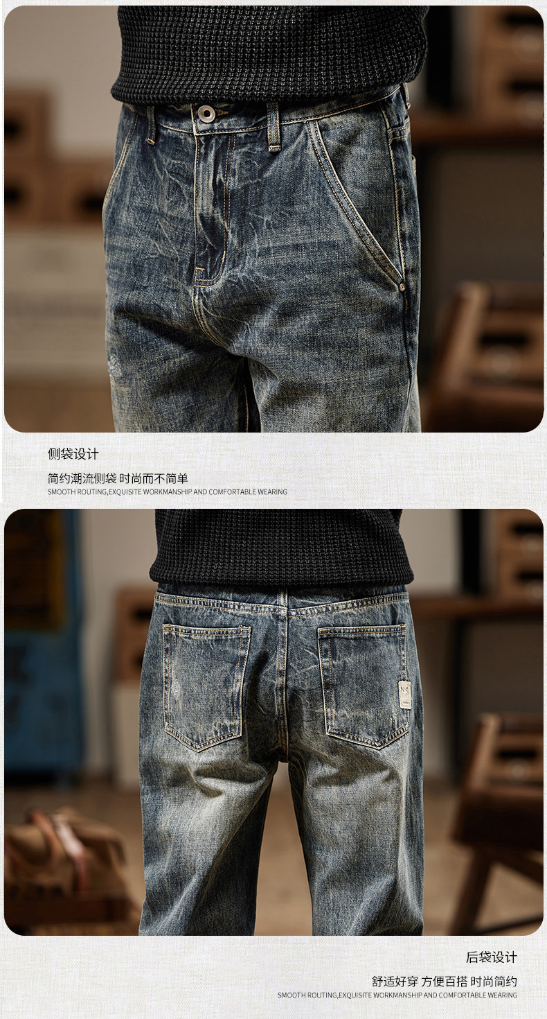 American Retro Jeans 2025 New Men's Autumn Washed Distressed Straight Leg Loose Trendy Brand Youth Casual Pants