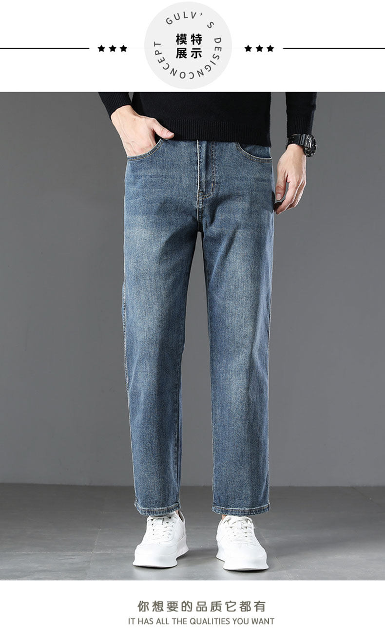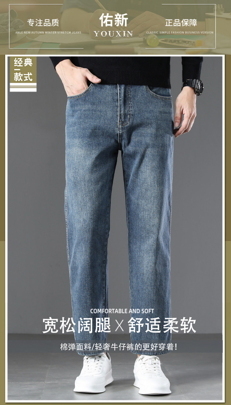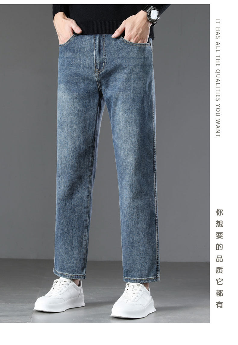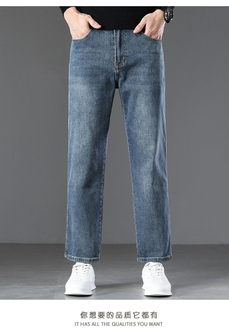2026 New Spring Men's Jeans, Spring and Autumn Style, Loose Straight Nine-Point Pants, Stretchy Xin Tang Casual Pants for Men