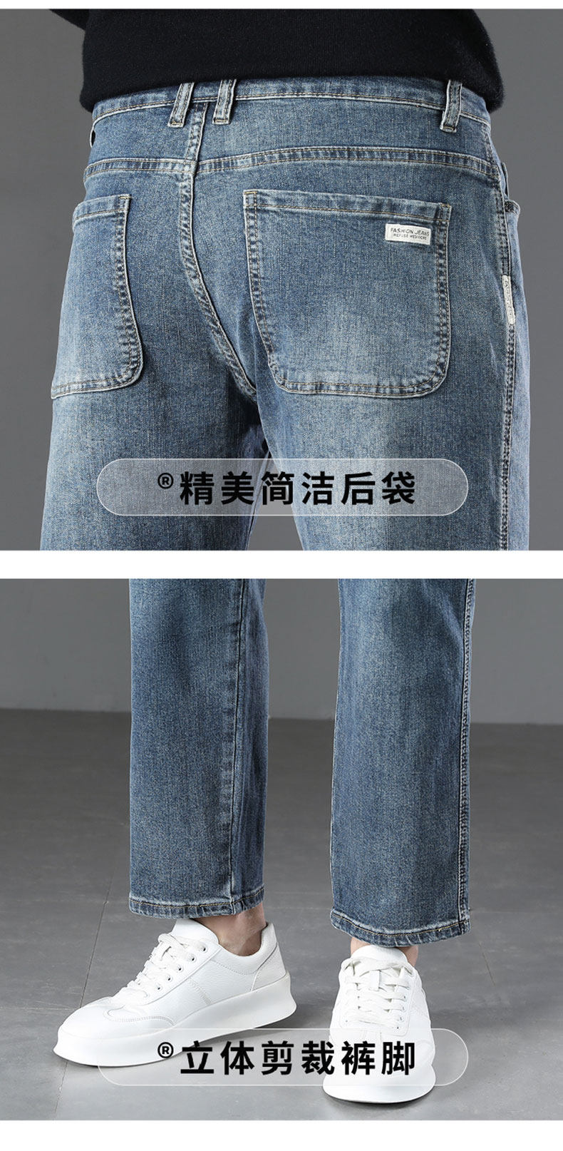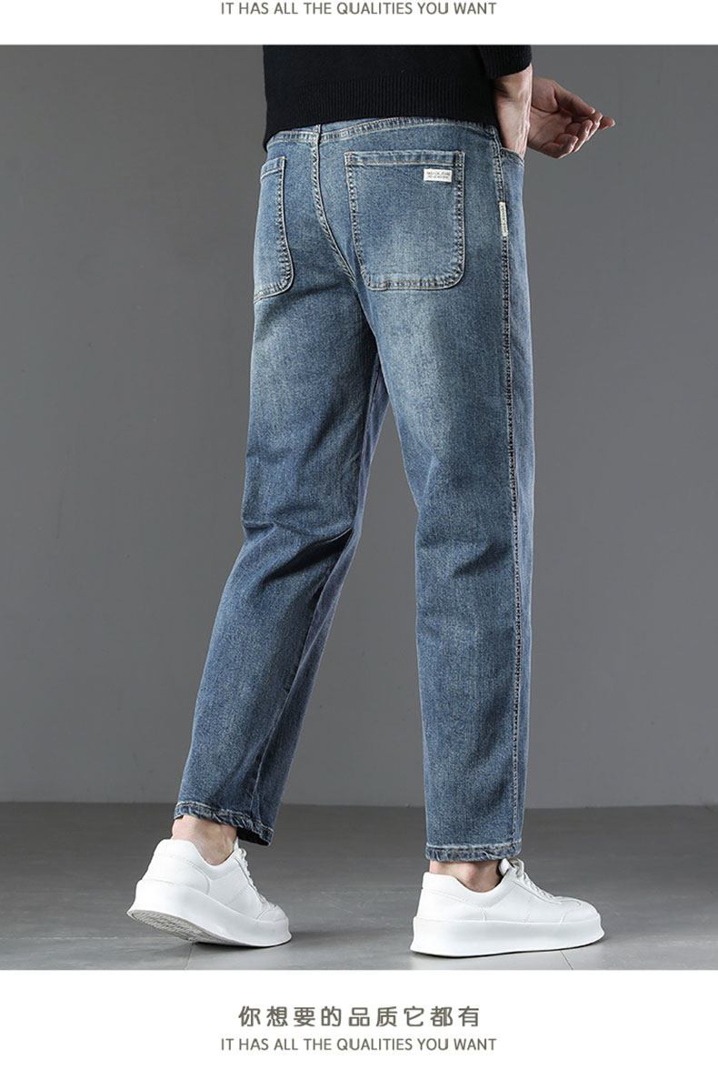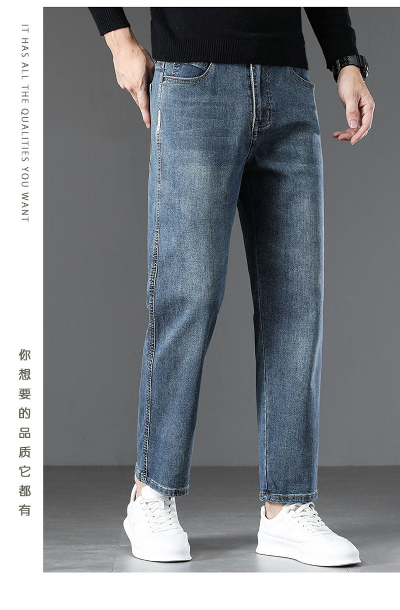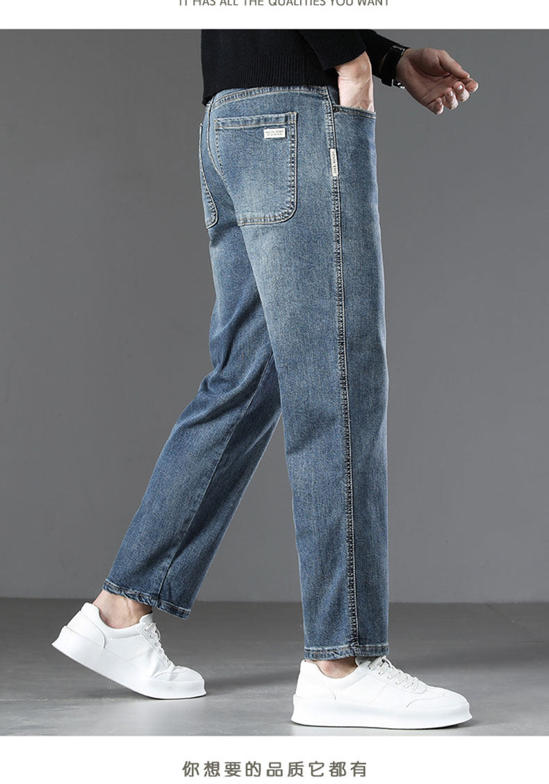 2026 New Spring Men's Jeans, Spring and Autumn Style, Loose Straight Nine-Point Pants, Stretchy Xin Tang Casual Pants for Men