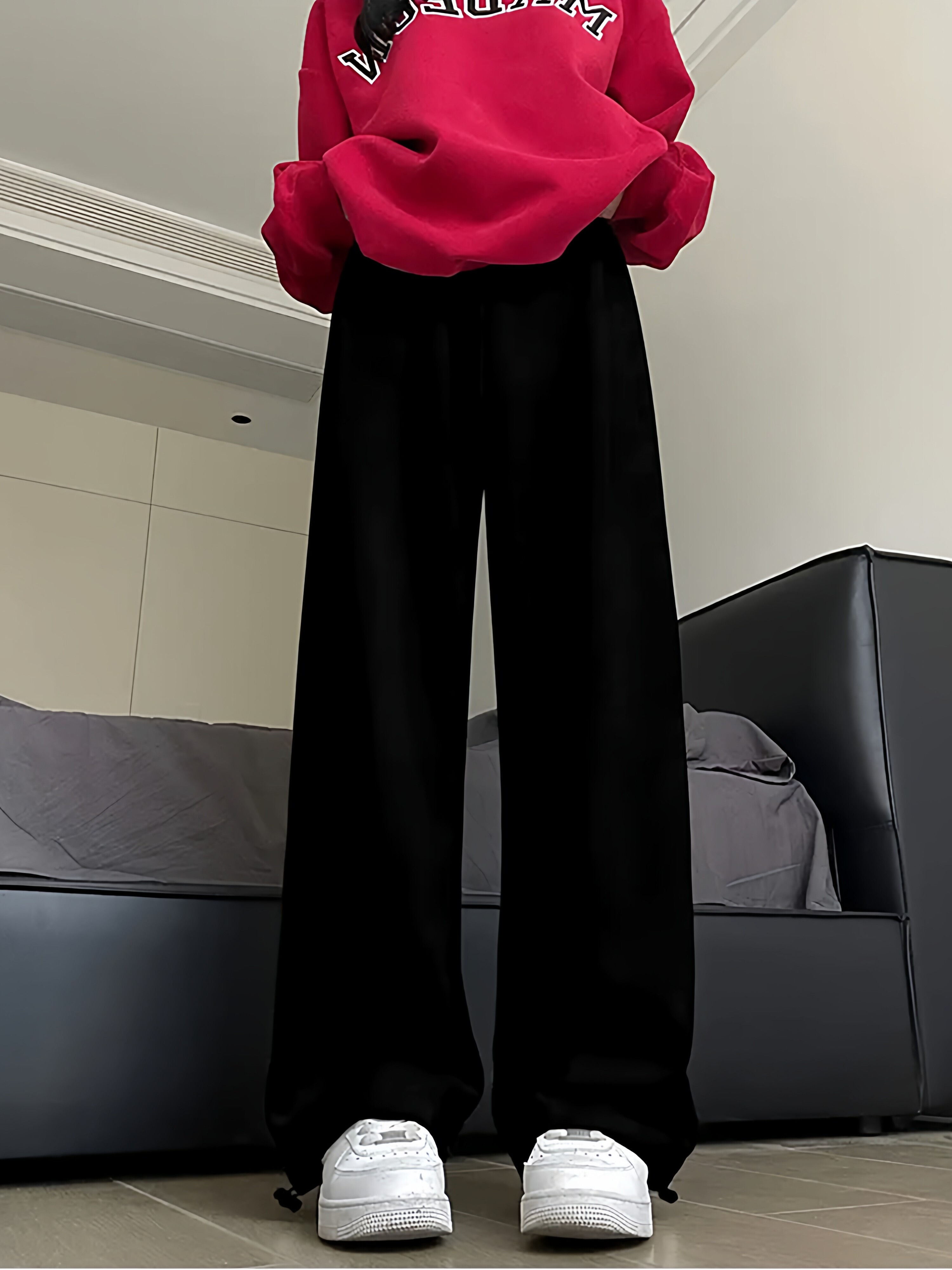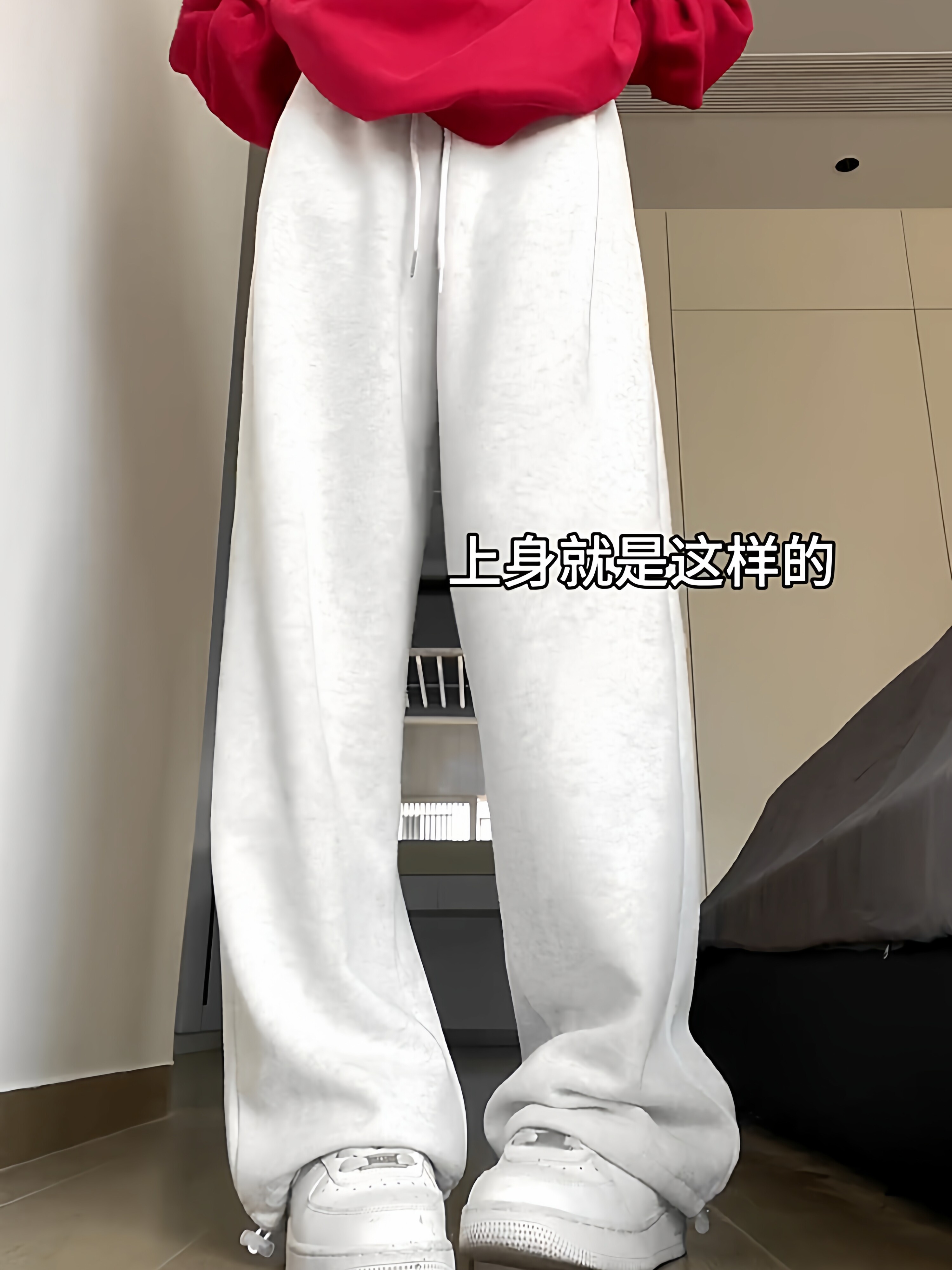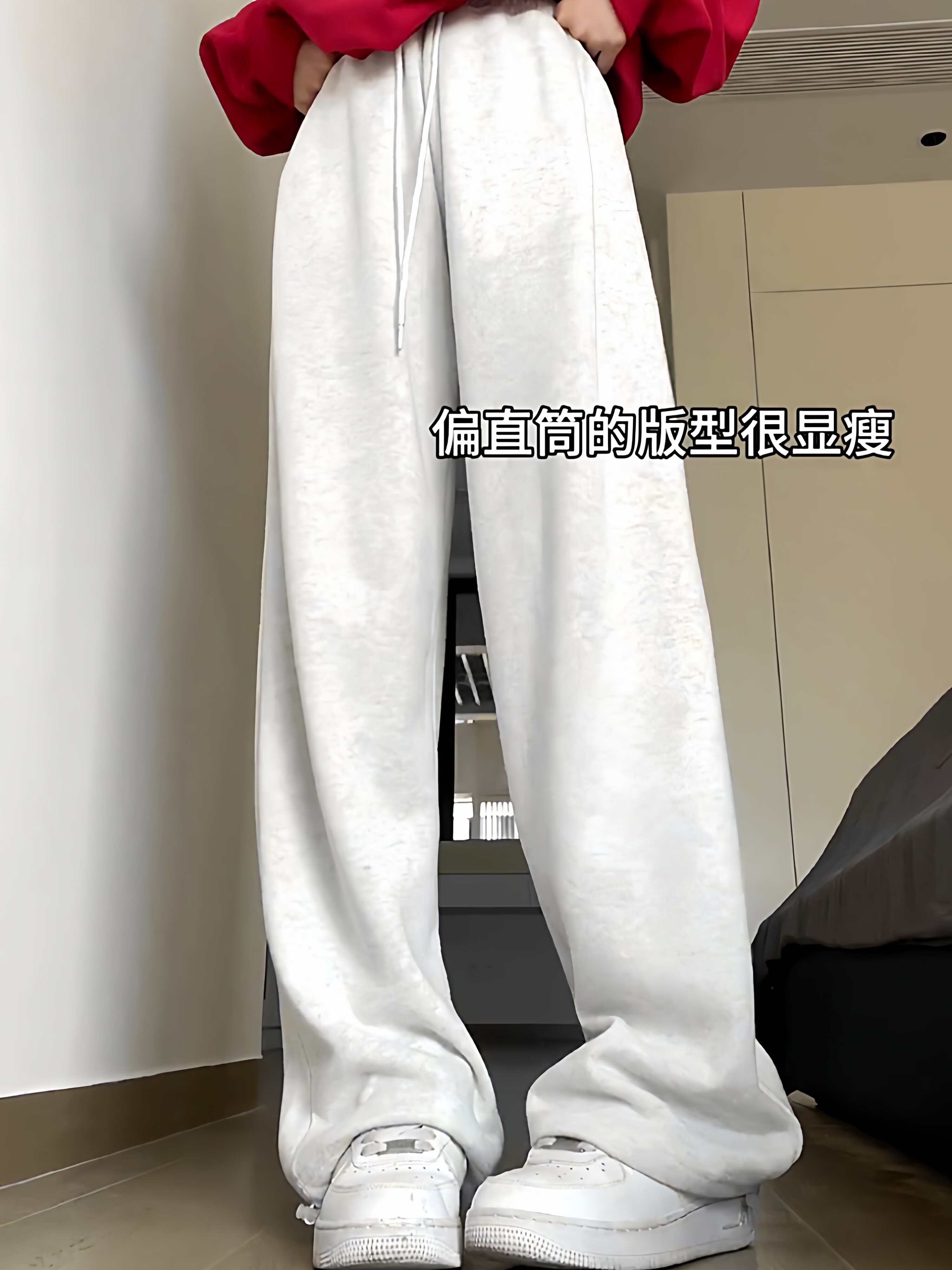 2025 New Spring and Autumn High-Waisted Petite Jogger Pants Casual Cuffed Sweatpants Straight-Leg Pants Loose Slimming Wide-Leg Pants