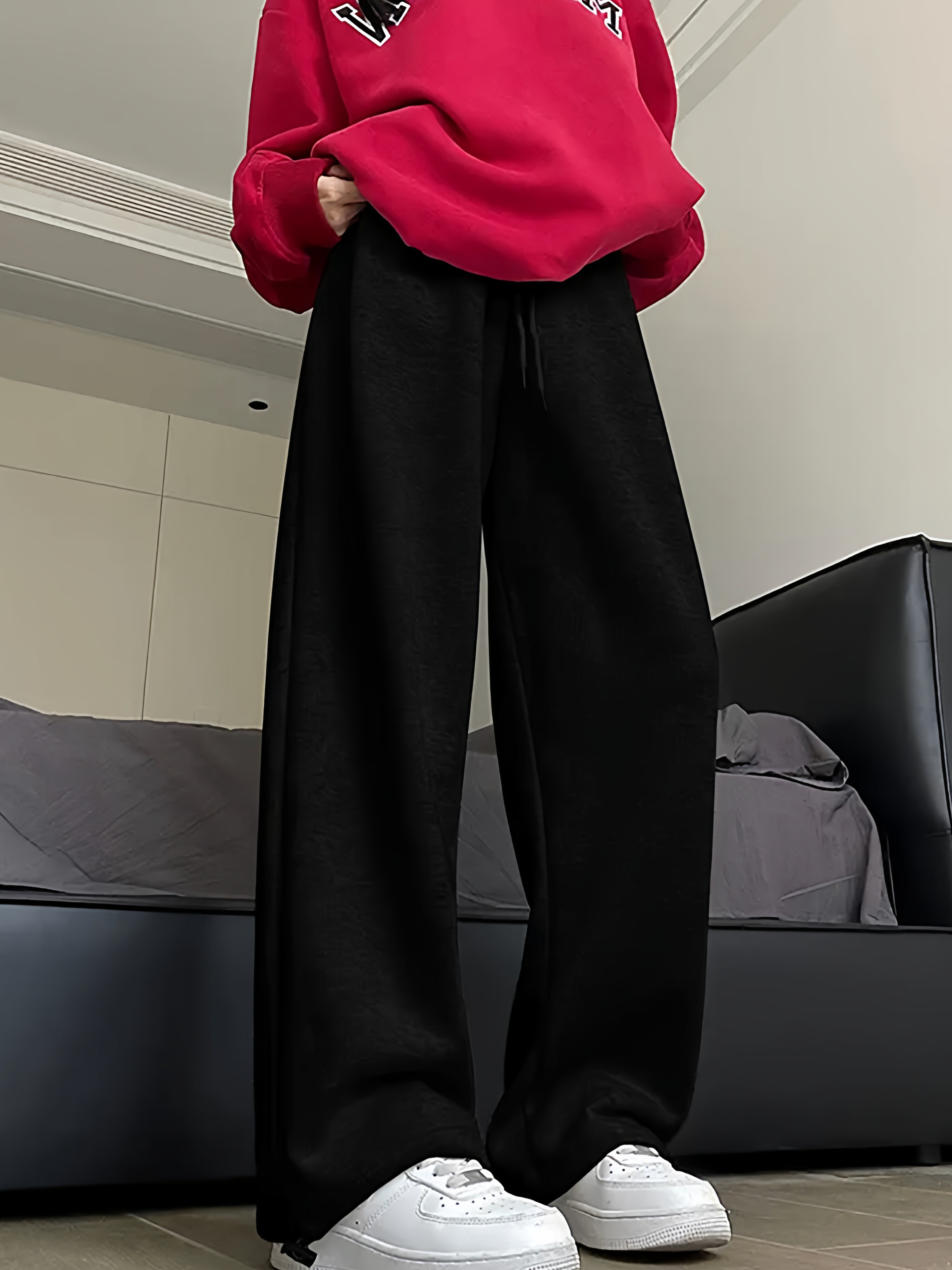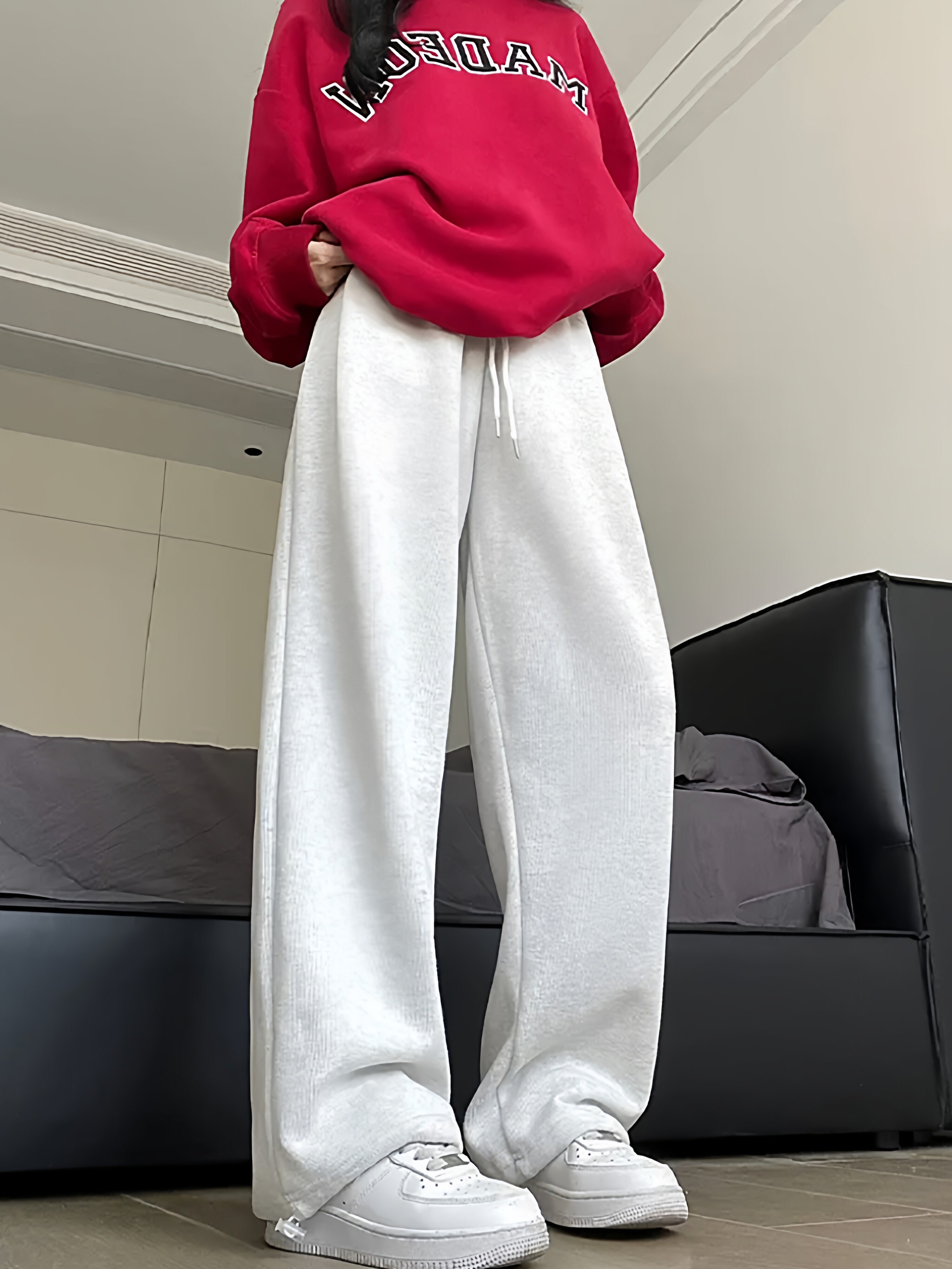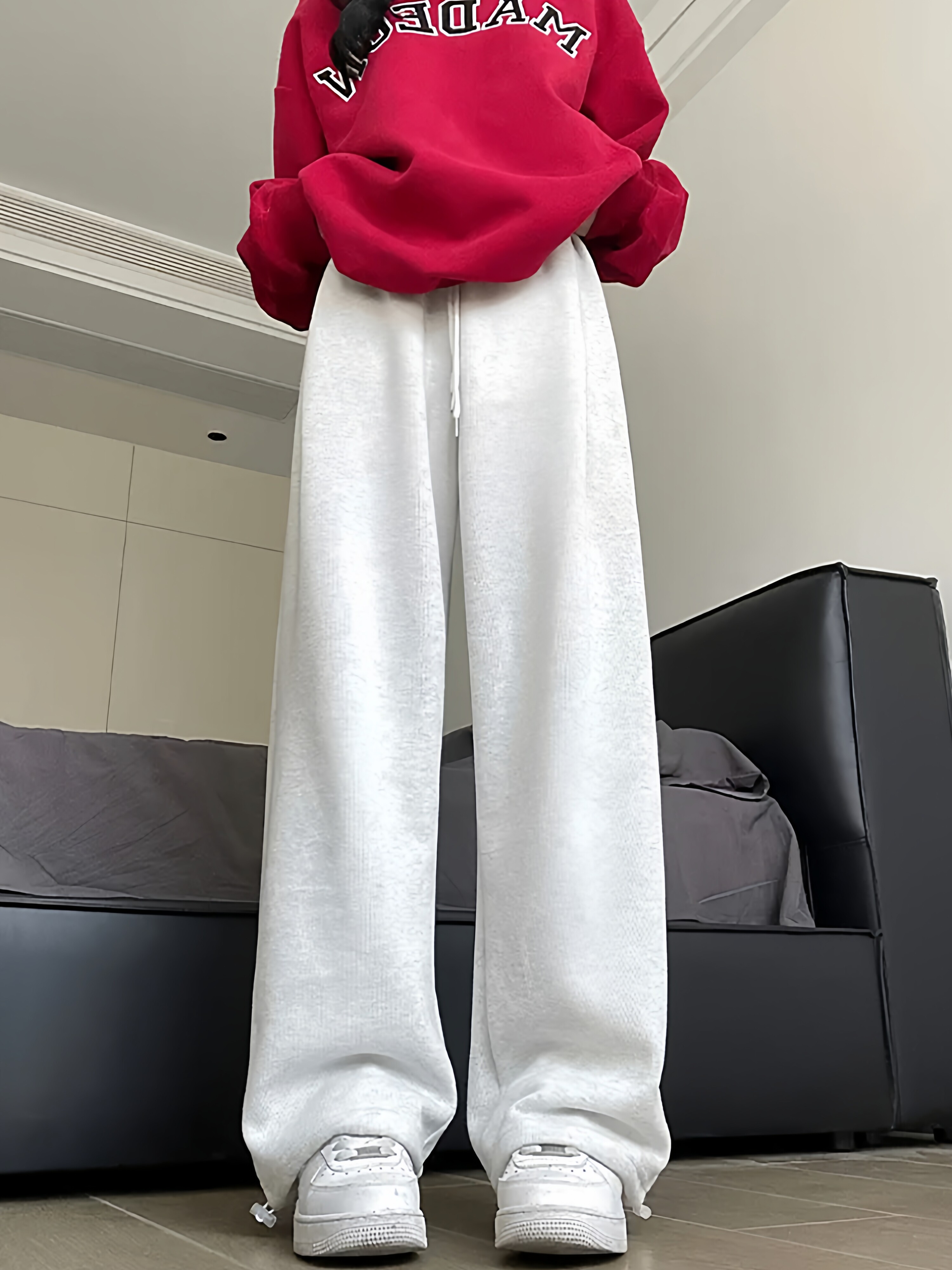 2025 New Spring and Autumn High-Waisted Petite Jogger Pants Casual Cuffed Sweatpants Straight-Leg Pants Loose Slimming Wide-Leg Pants