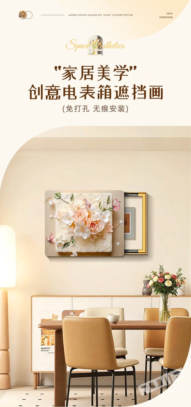 Caja de medidor minimalista moderna pintura decorativa 2025 nueva caja de distribución de interruptor de bloqueo de flores pintura colgante mural sin perforaciones