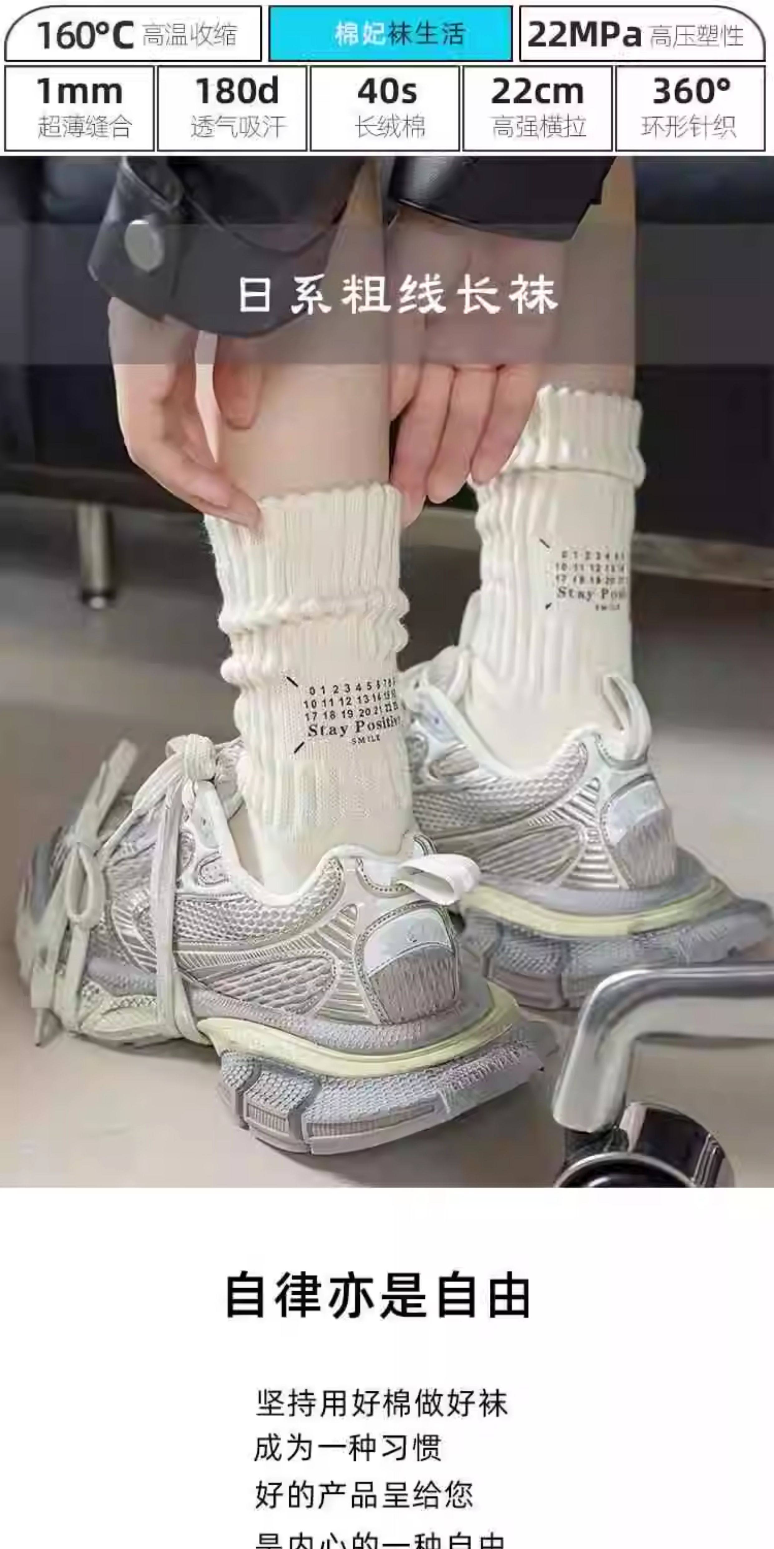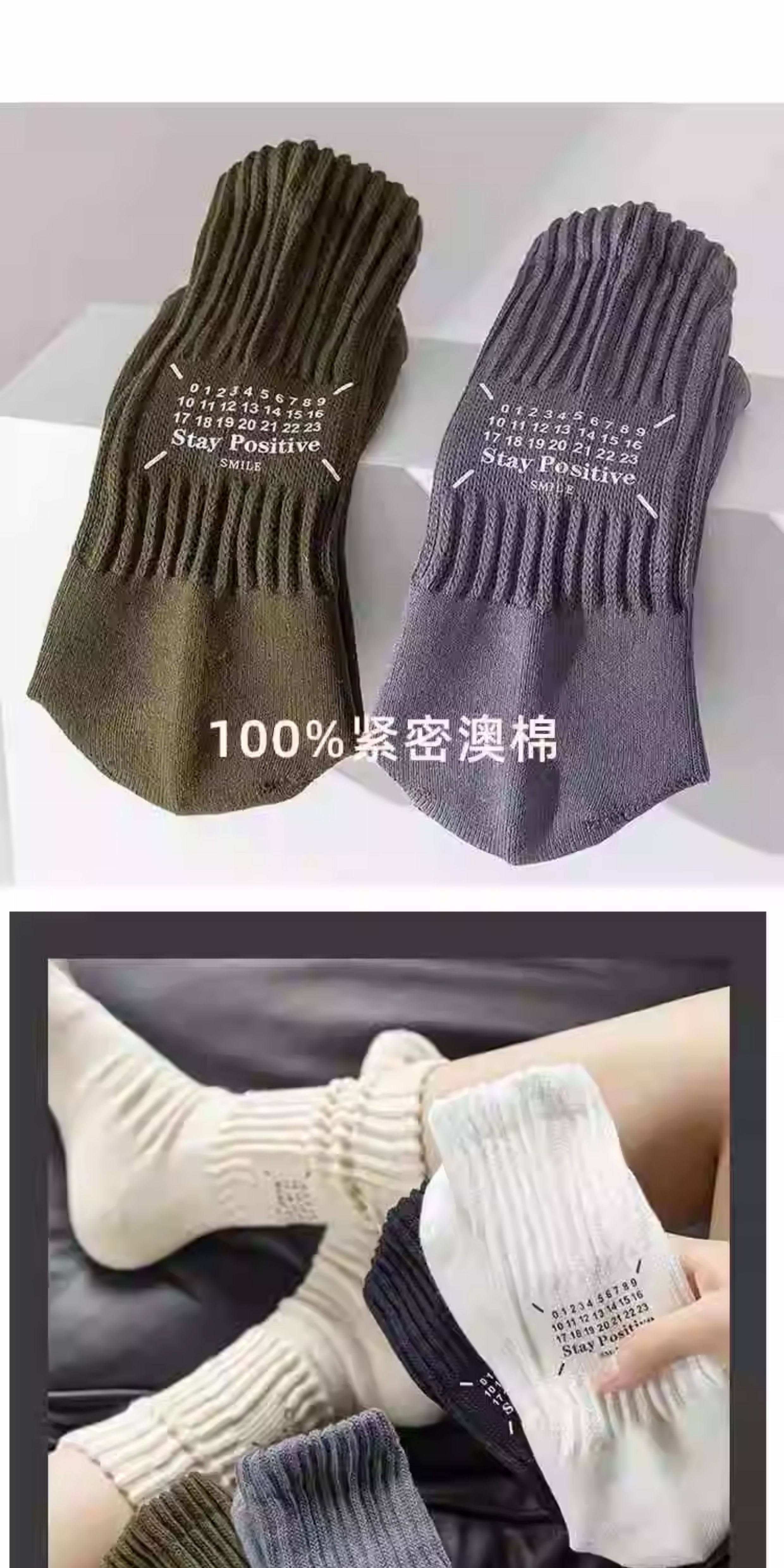 Japanese thick line socks for men and women in mid-length retro workwear pure cotton autumn and winter letter ins trendy couple pile socks