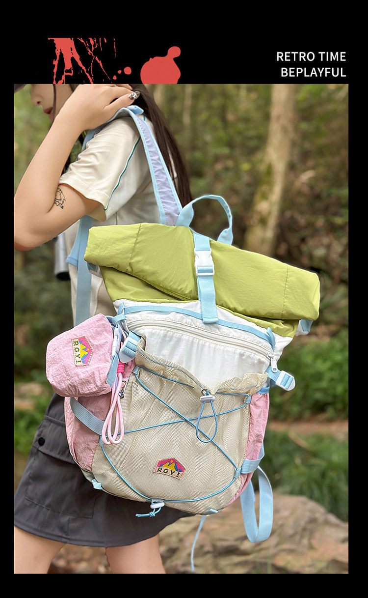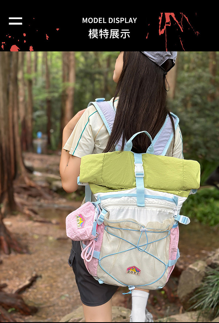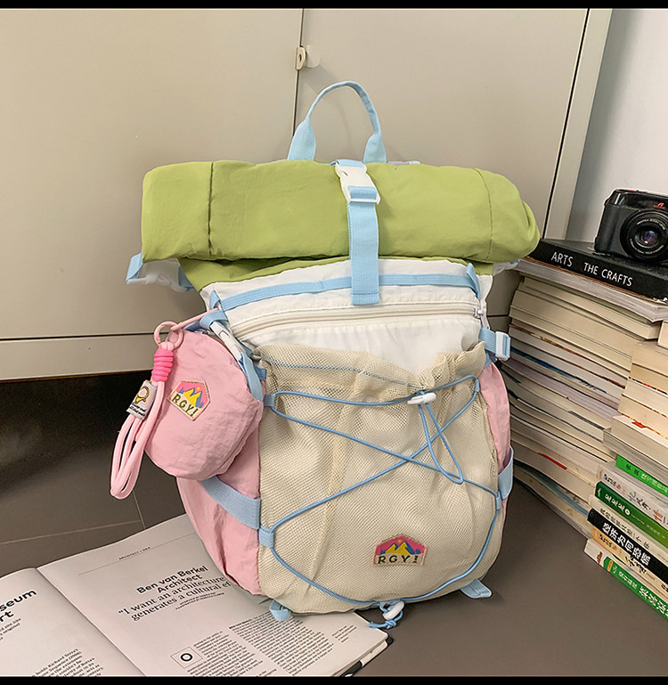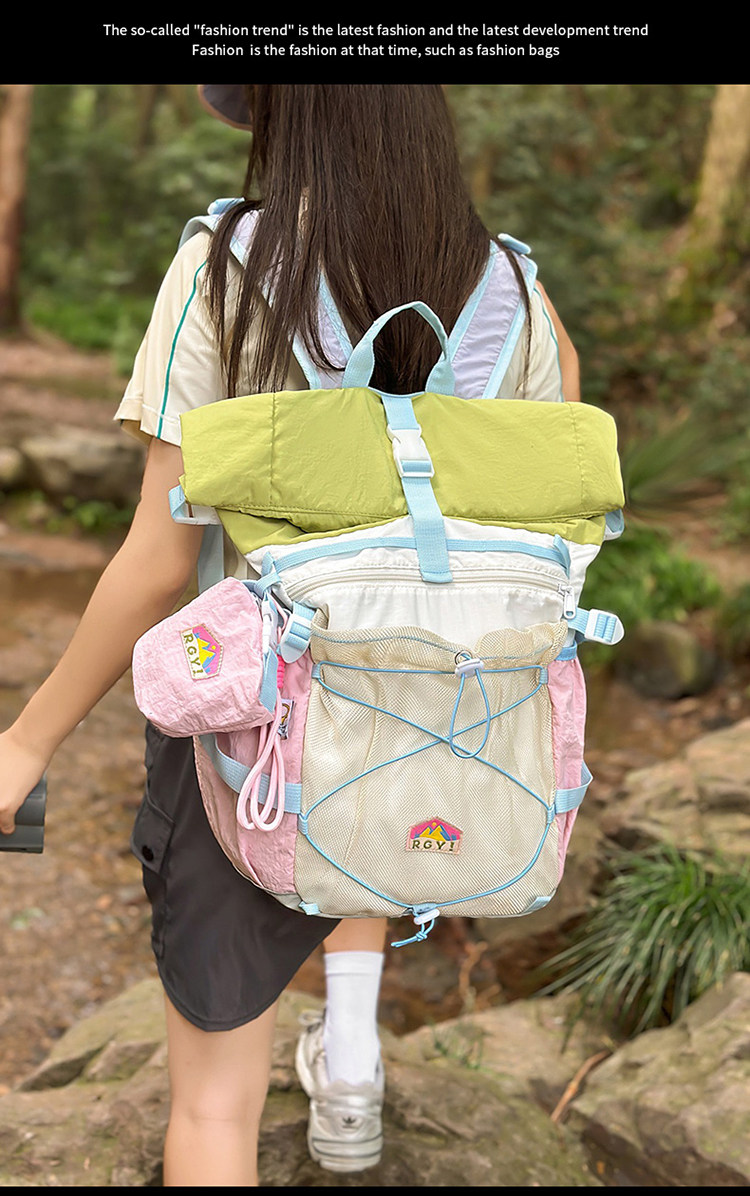 School bag for women, large-capacity dopamine color backpack, lightweight water-repellent sports mountaineering bag, commuter computer bag for men