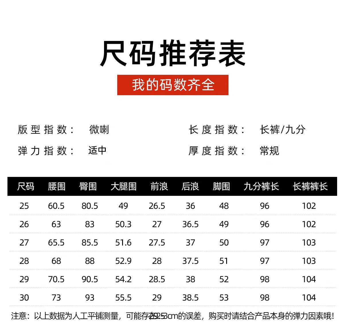 Outseam (cm) 99 cm 101.5 cm 104 cm 106.5 cm 109 cm