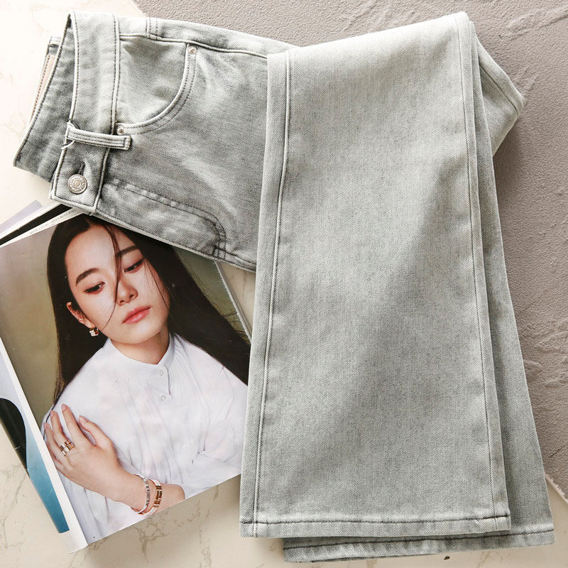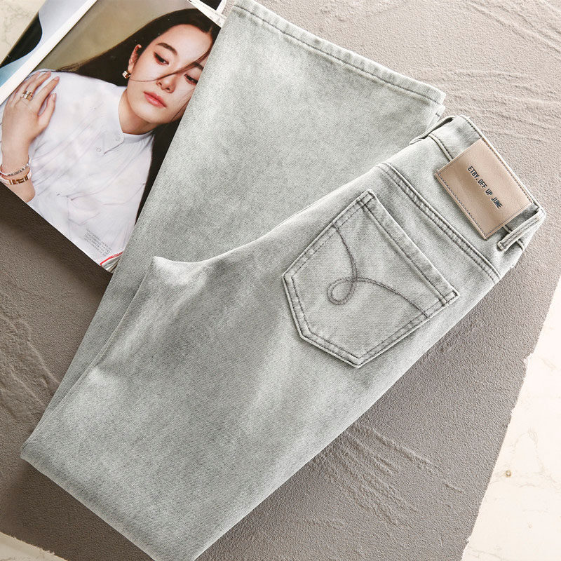 Flared Jeans for Women, Slim Fit, Stretchy, High-Waisted, European Style, Smoky Gray, High-End, Fashionable, Drapey, Petite Flared Pants