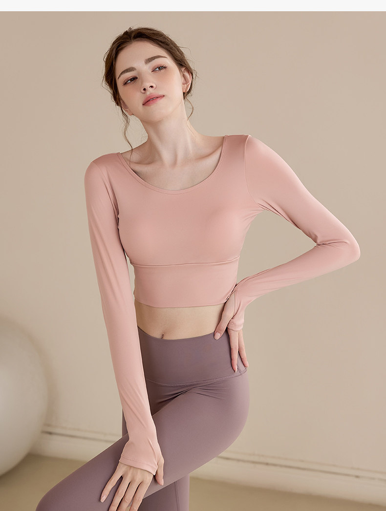 Daddect Yoga Clothes with Chest Pads and Beautiful Back Design for Women, Long-Sleeved Slimming Sports Tops, Pilates Training Fitness Clothes for Autumn