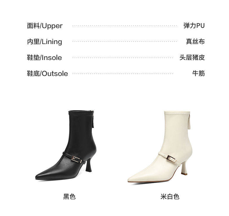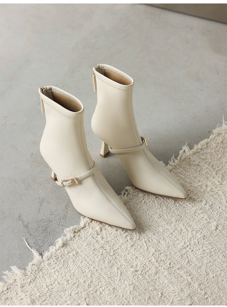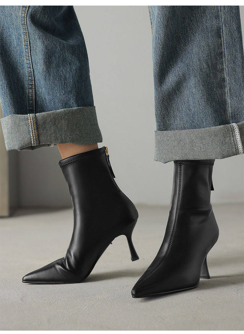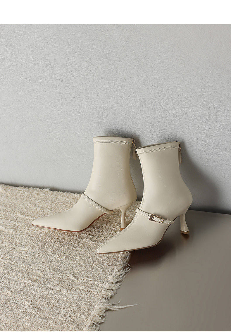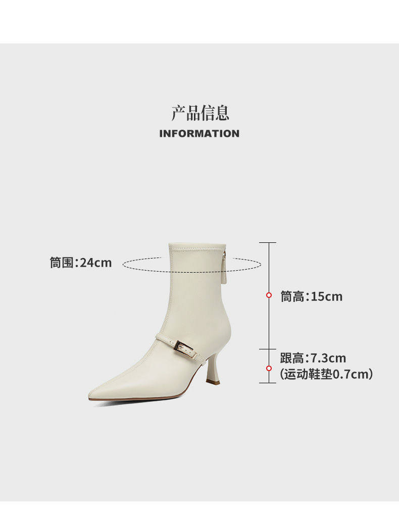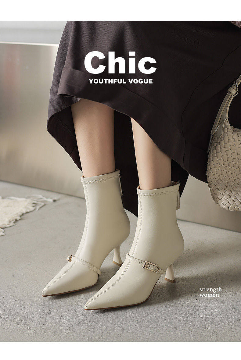 2025 autumn and winter new style pointed toe stiletto white short boots fashionable and versatile high heels elastic slim boots socks boots women's boots