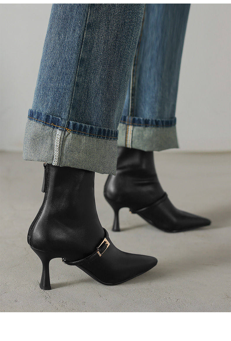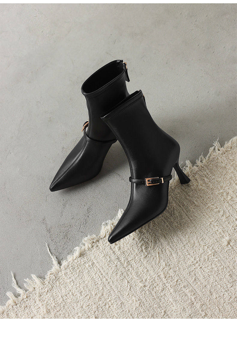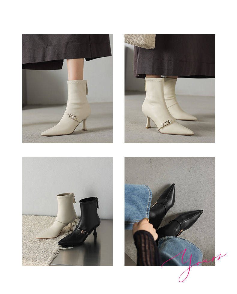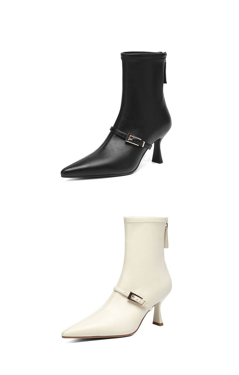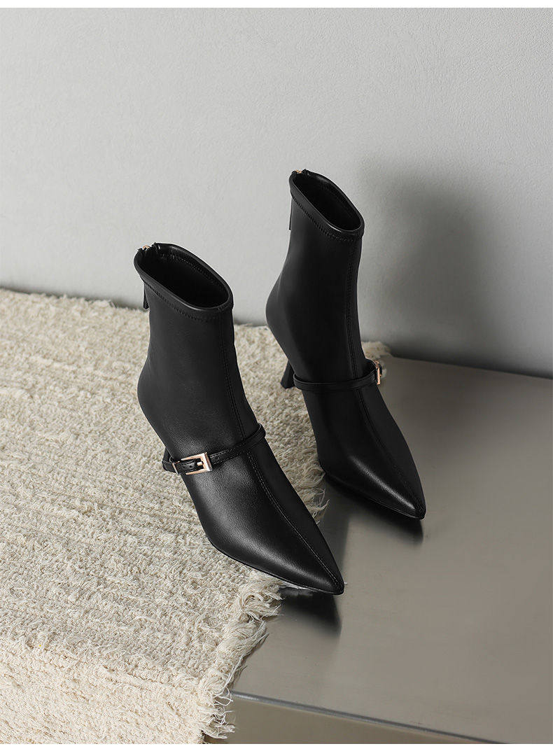 2025 autumn and winter new style pointed toe stiletto white short boots fashionable and versatile high heels elastic slim boots socks boots women's boots