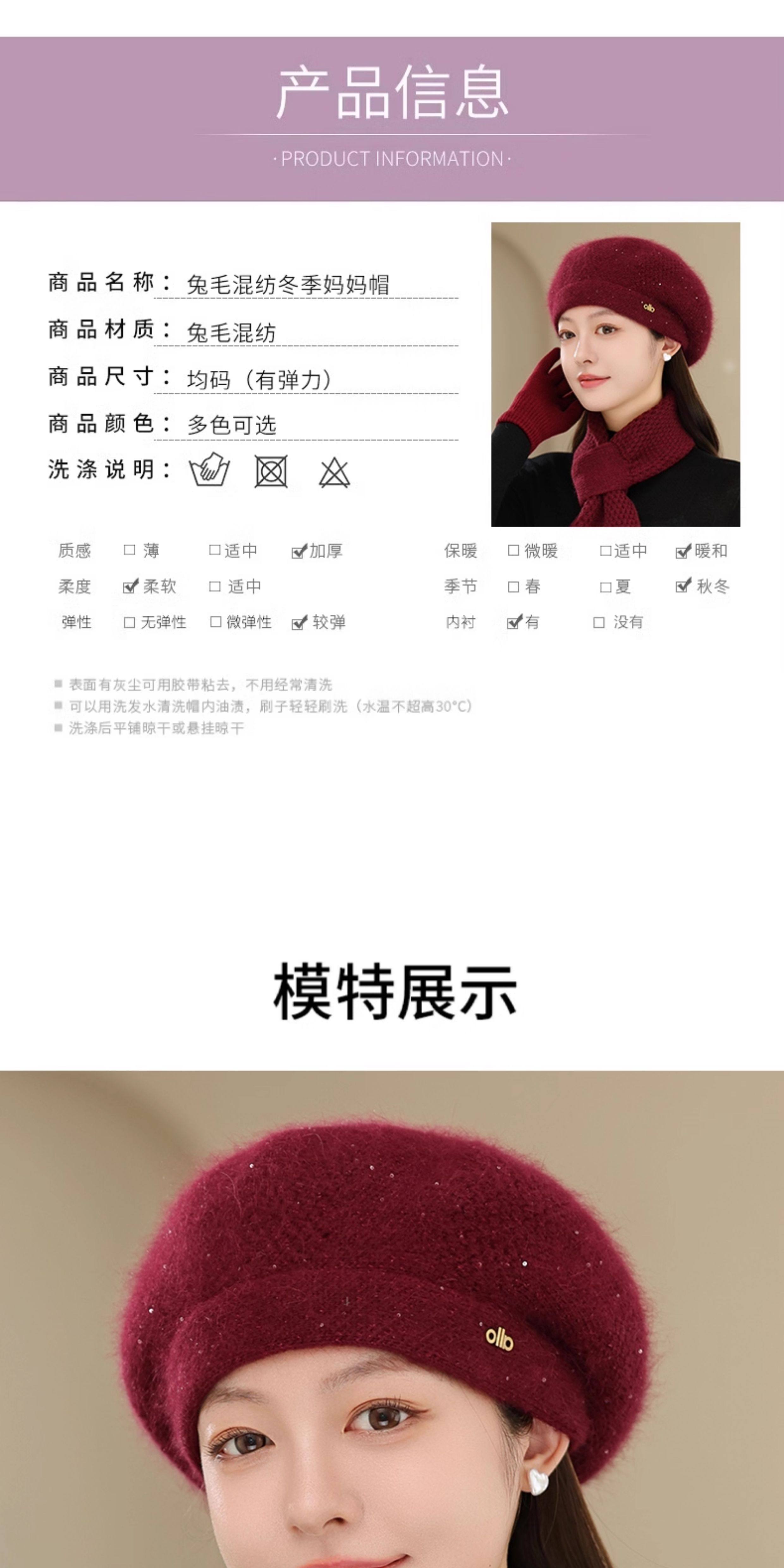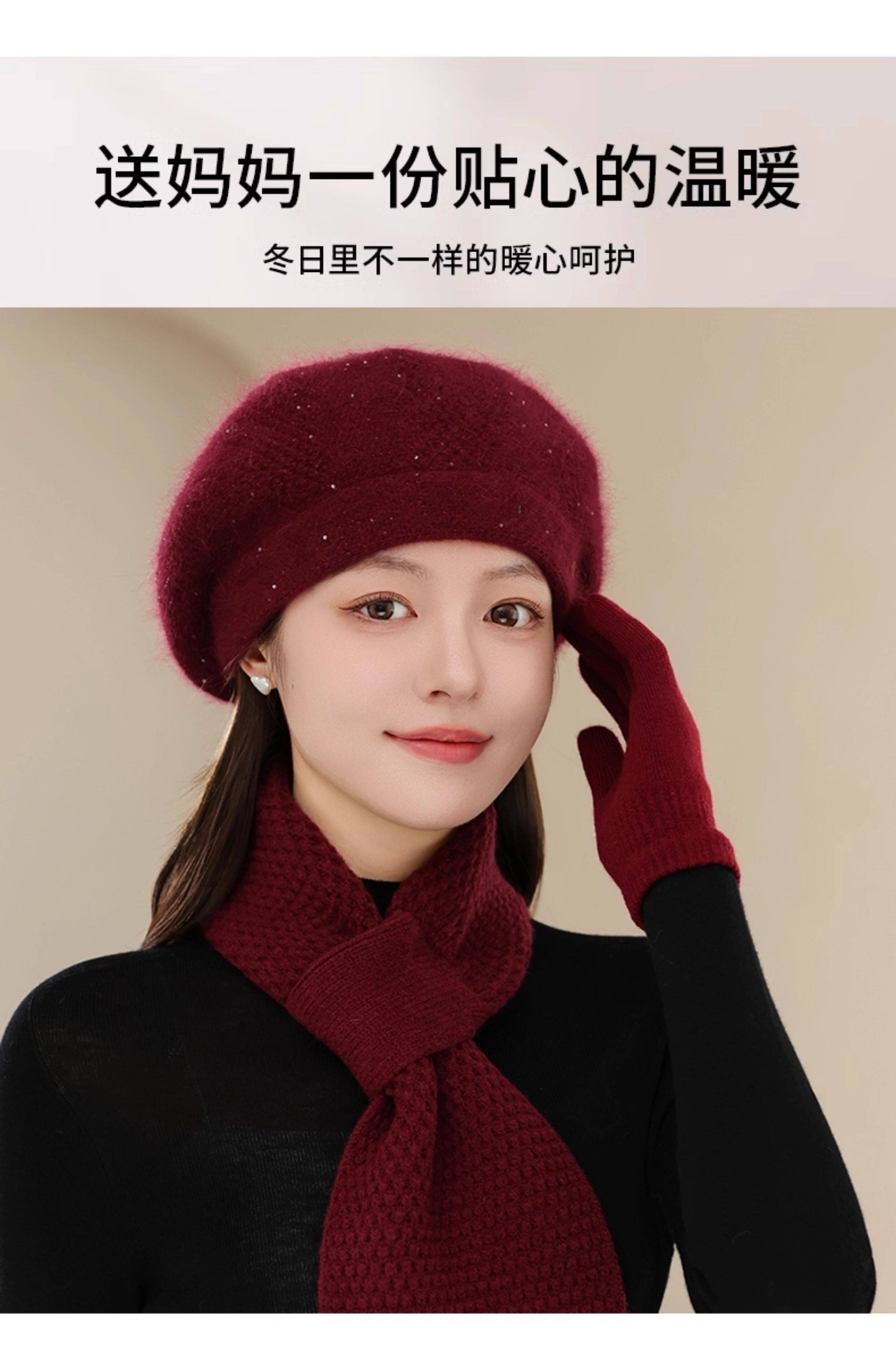 Fashionable knitted hat for middle-aged and elderly women, winter outdoor cycling, warm and windproof woolen hat, versatile for mothers and grandmothers