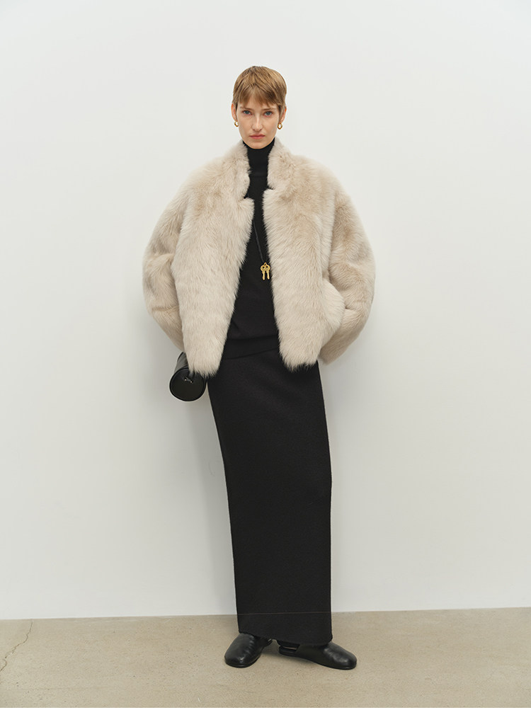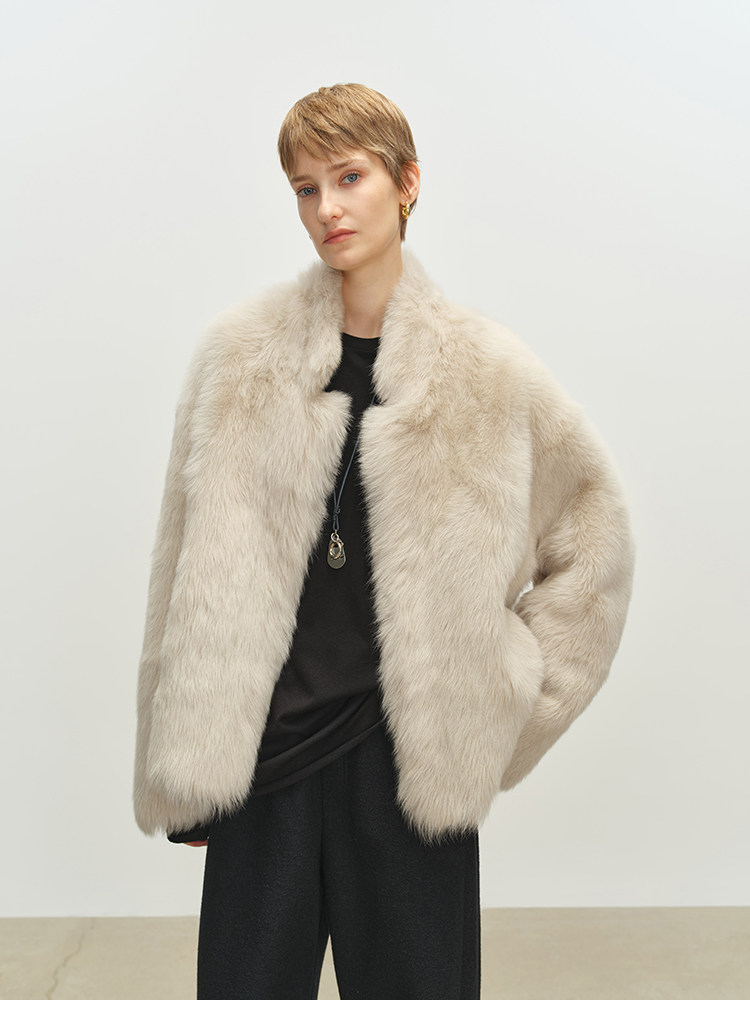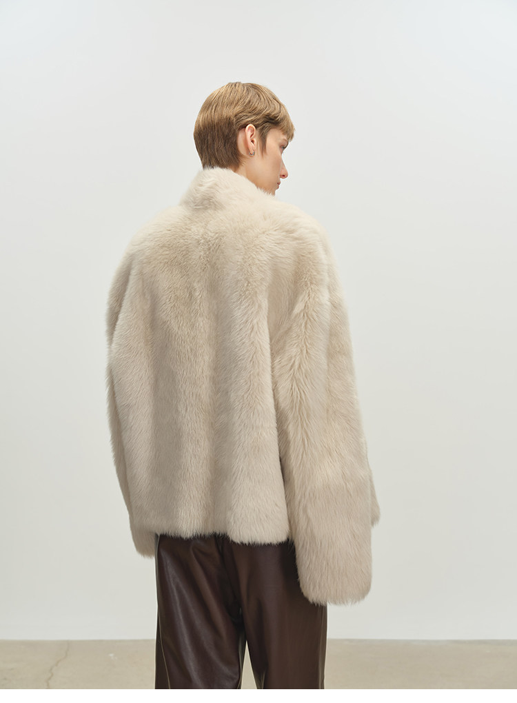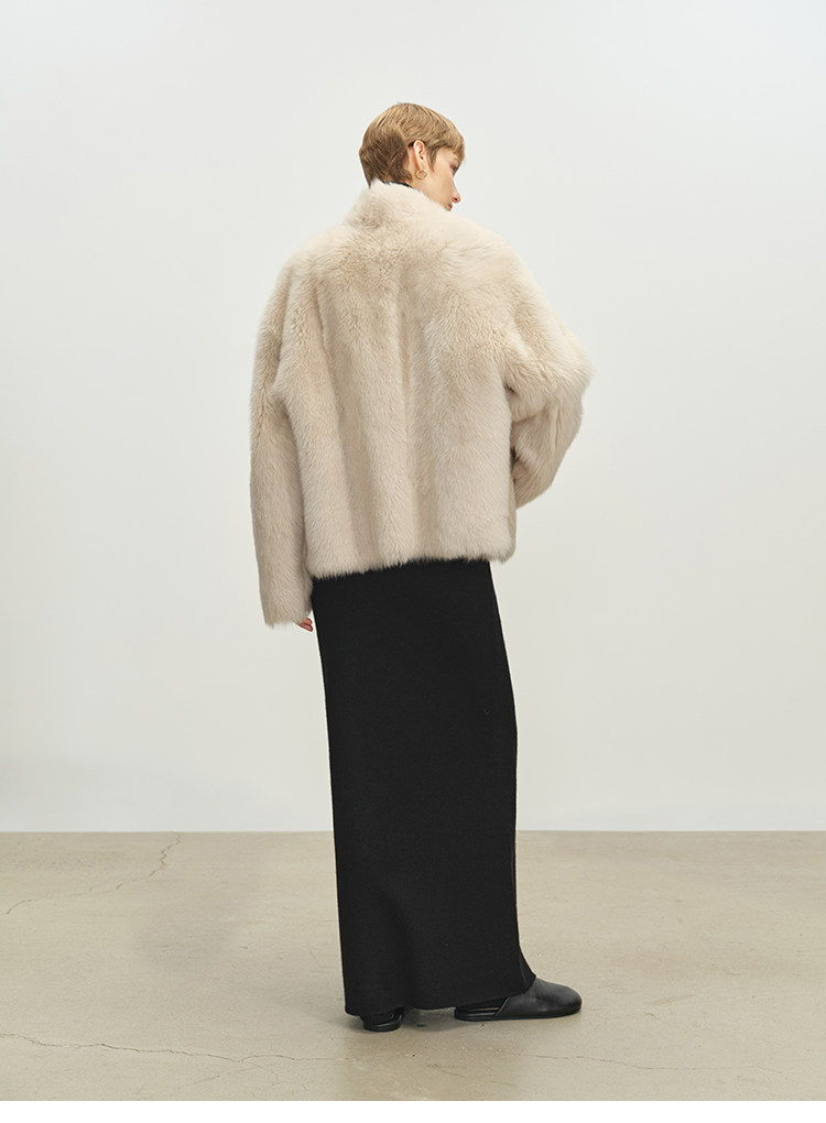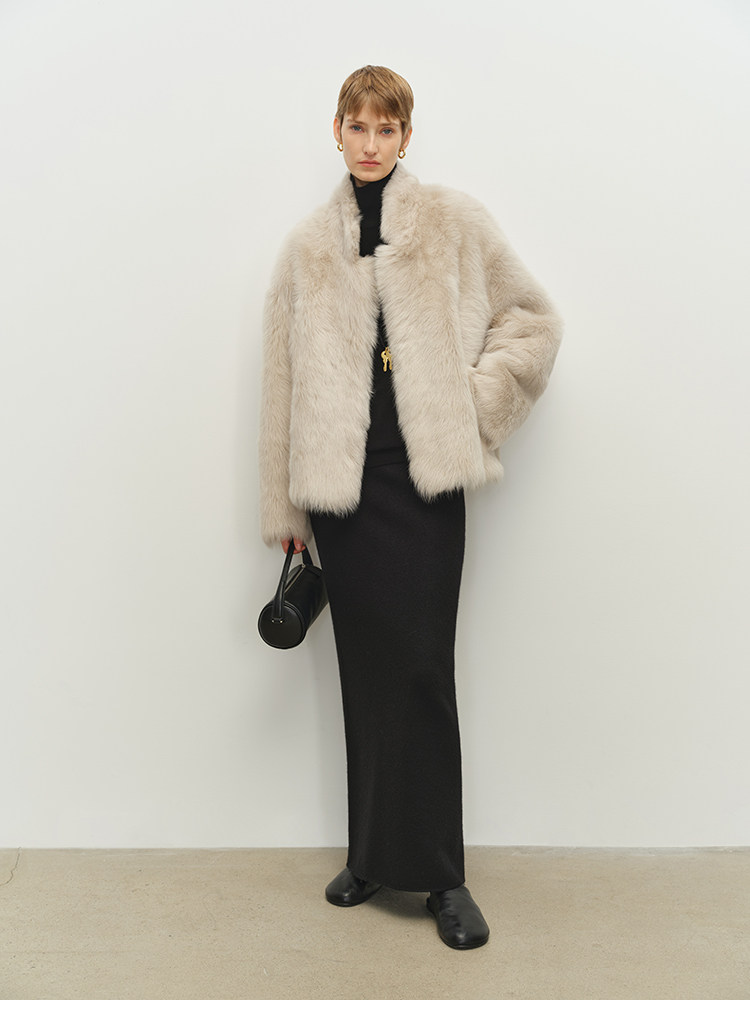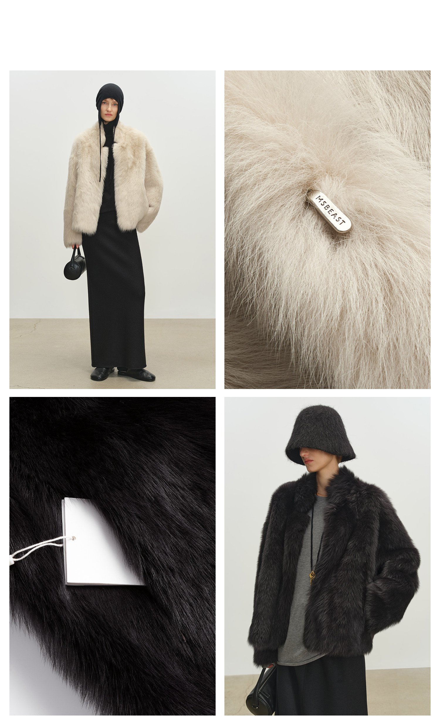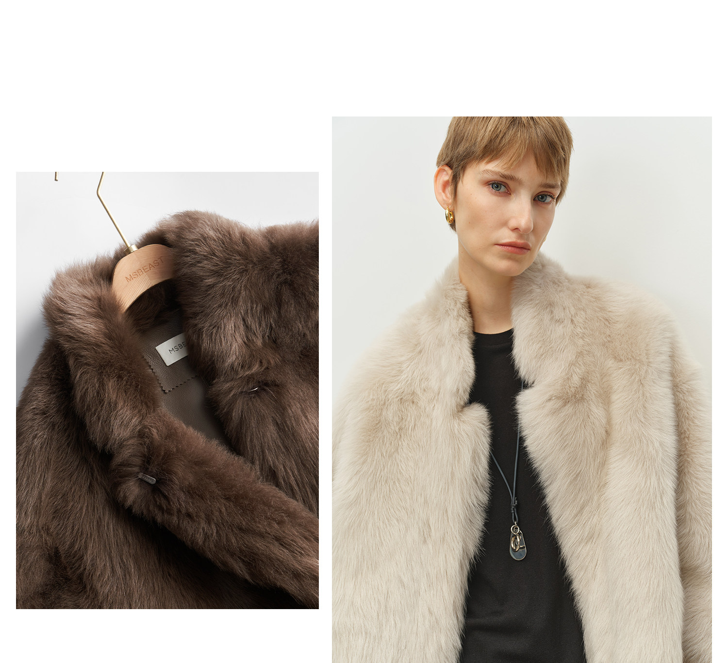 MSBEAST urban casual stand-up collar silhouette Tuscan straight fur one-piece jacket丨Rachel Xingge