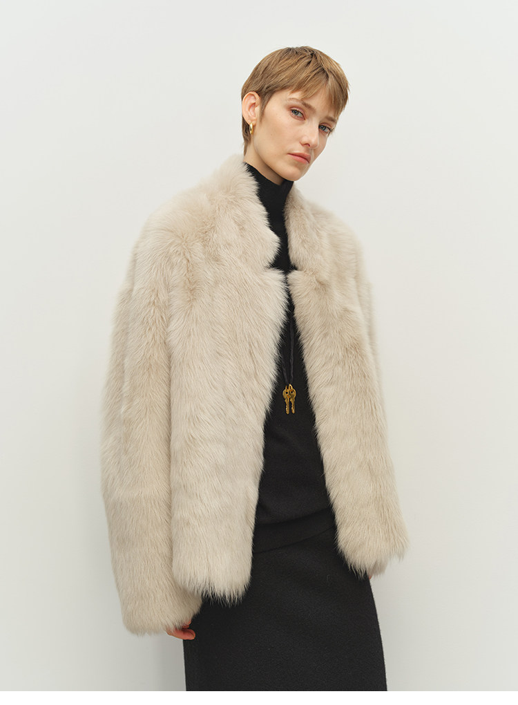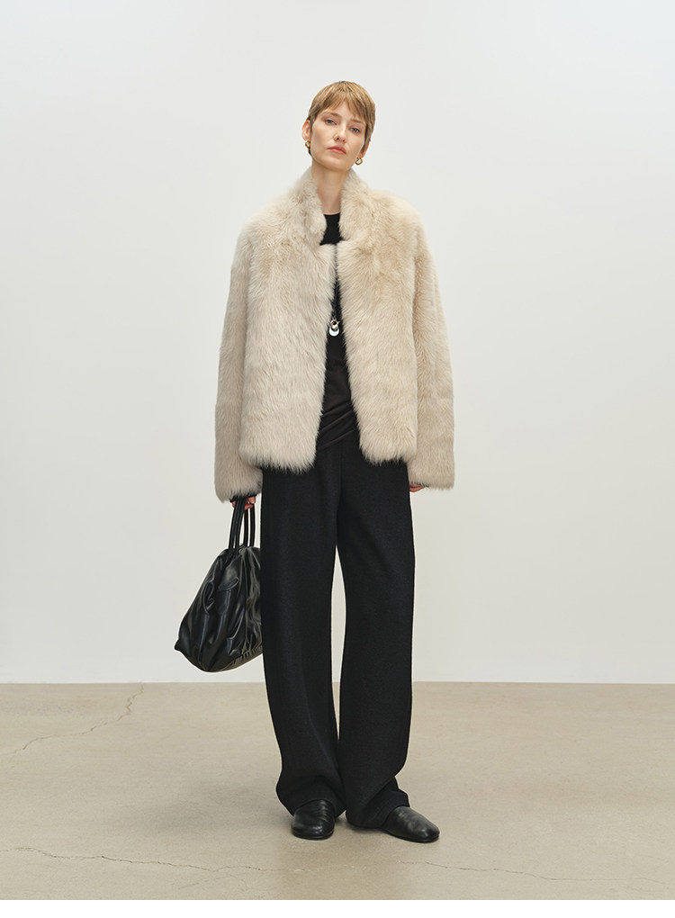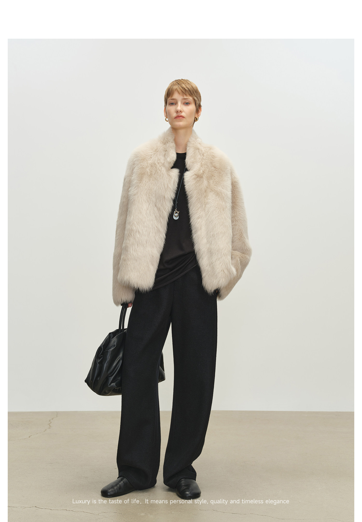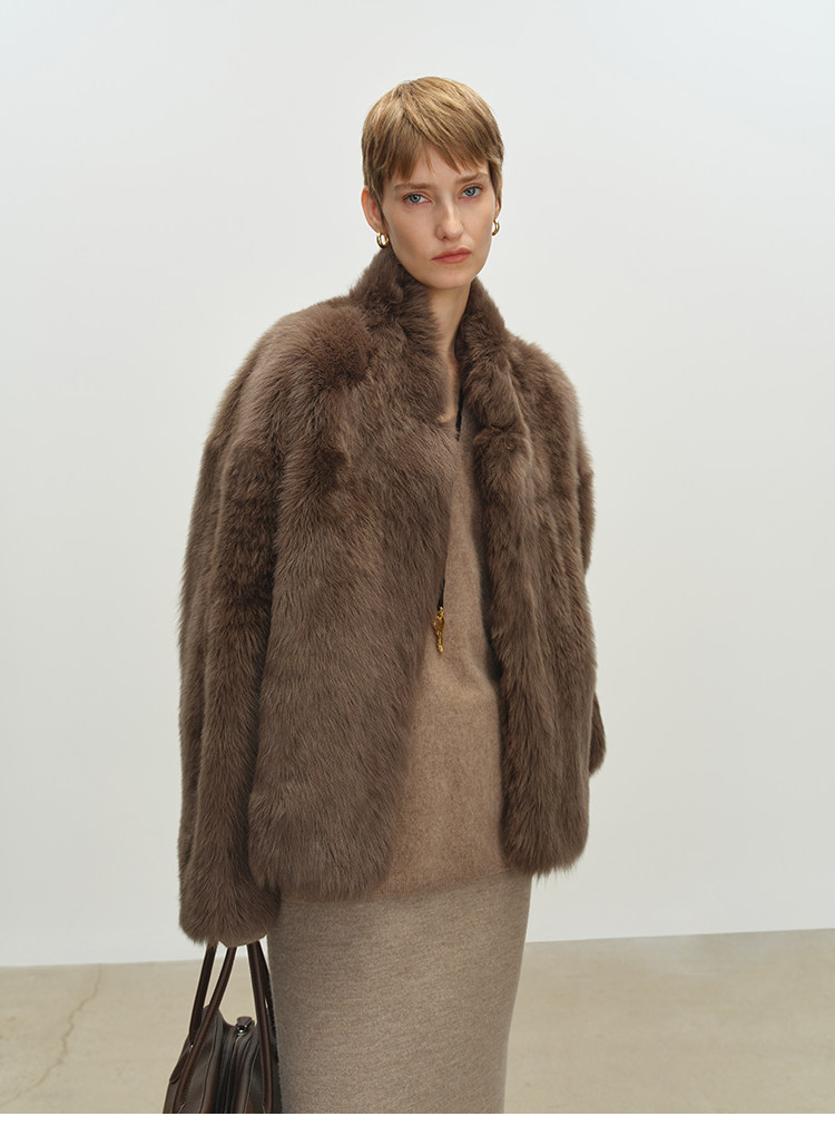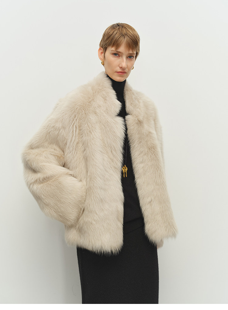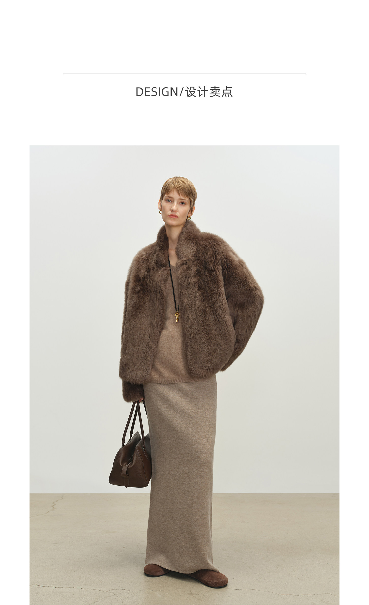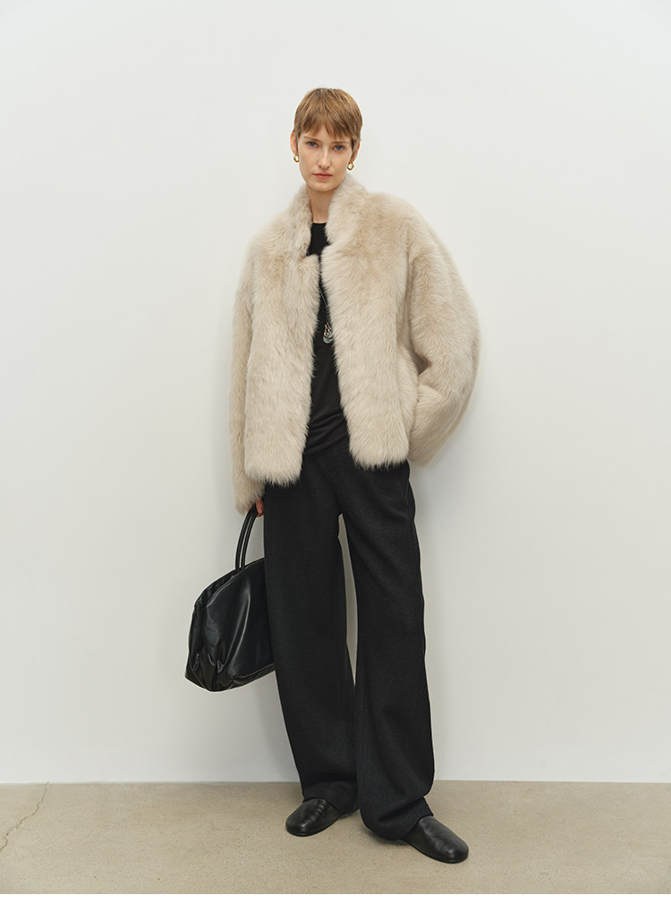 MSBEAST urban casual stand-up collar silhouette Tuscan straight fur one-piece jacket丨Rachel Xingge
