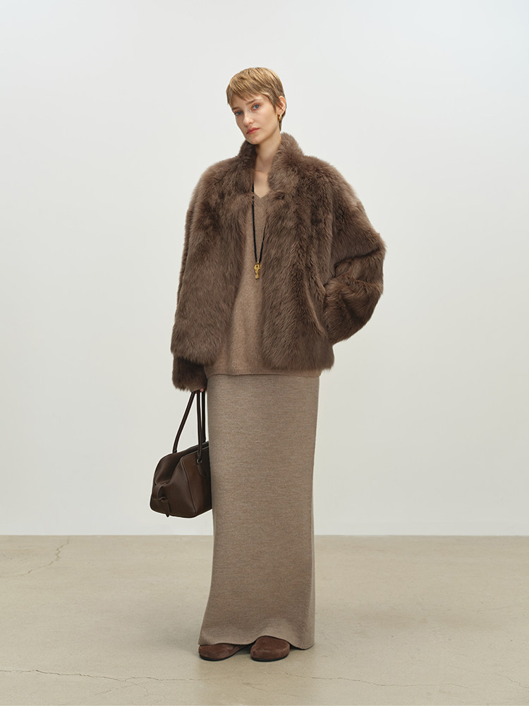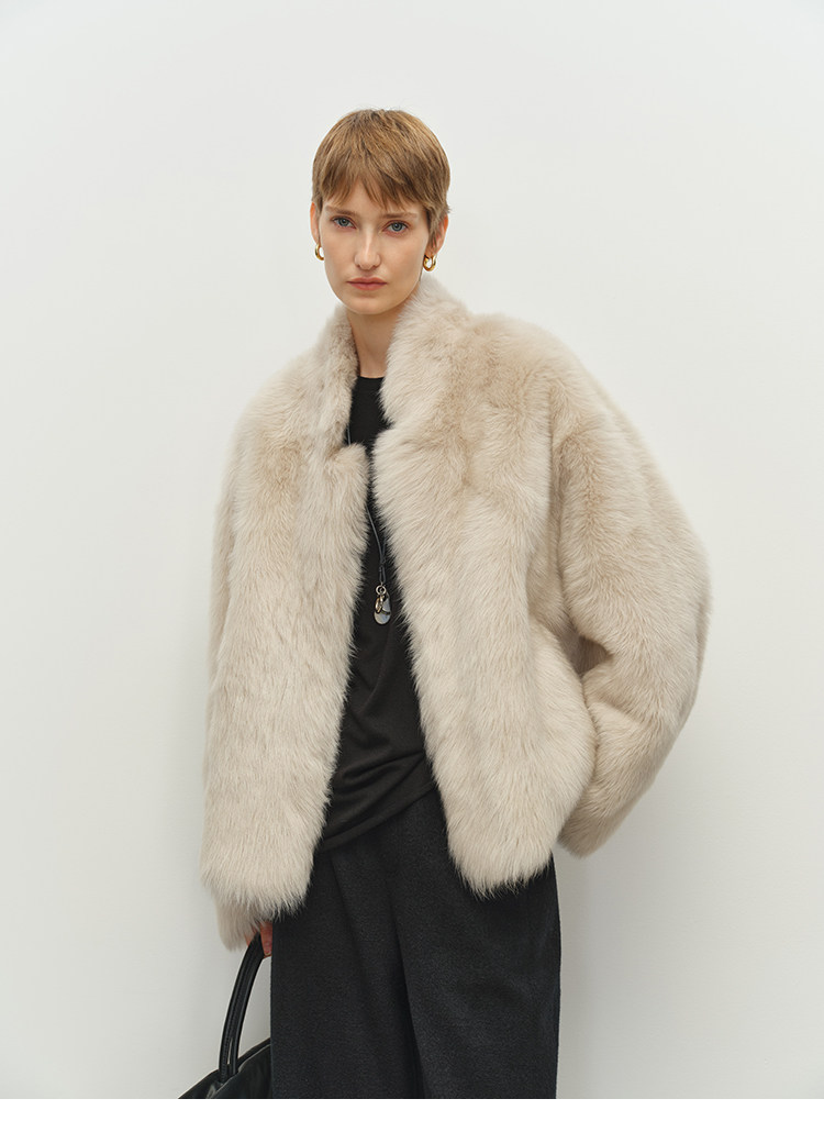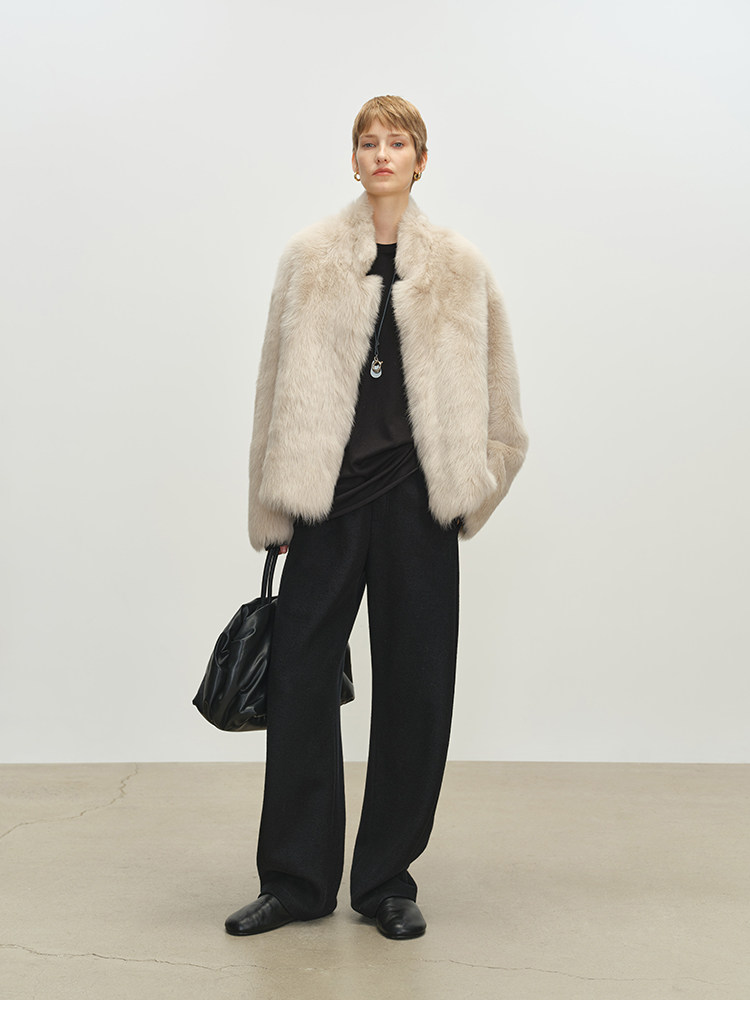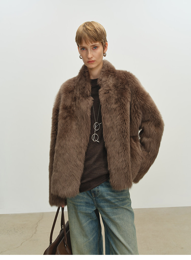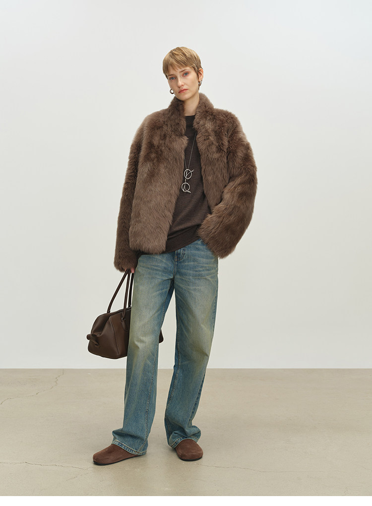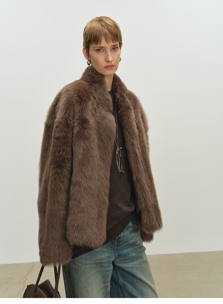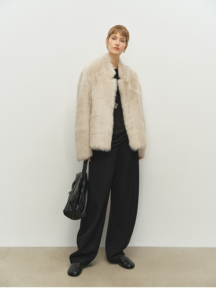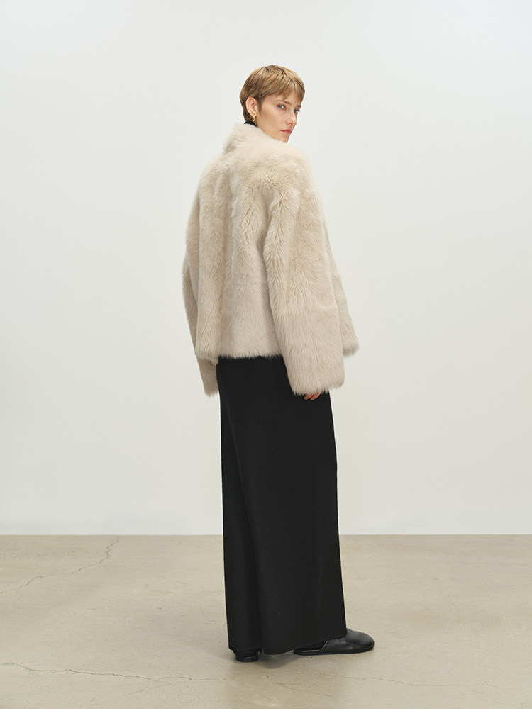 MSBEAST urban casual stand-up collar silhouette Tuscan straight fur one-piece jacket丨Rachel Xingge
