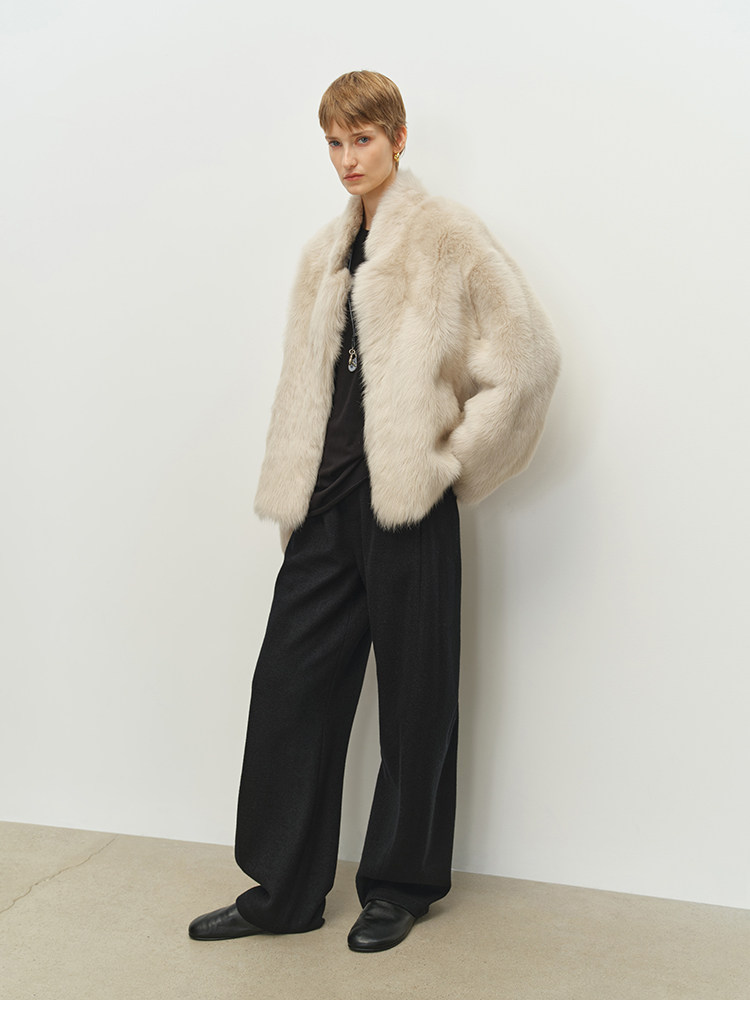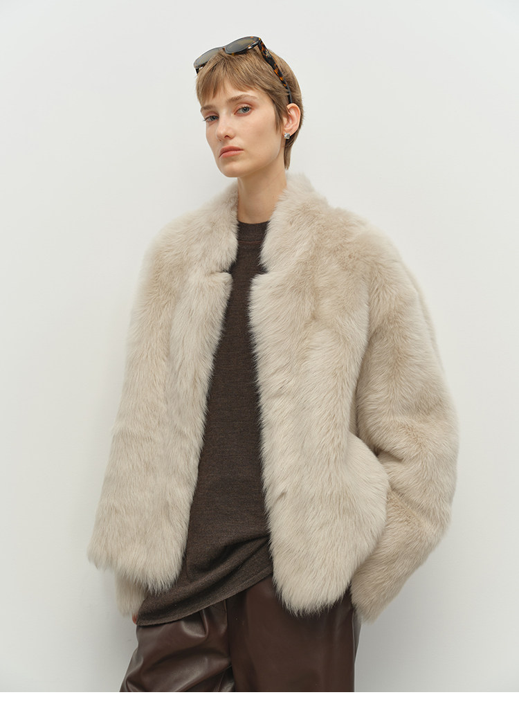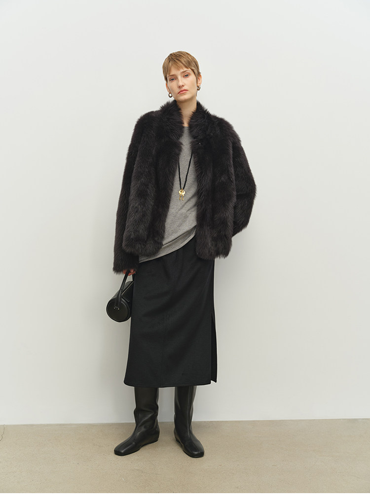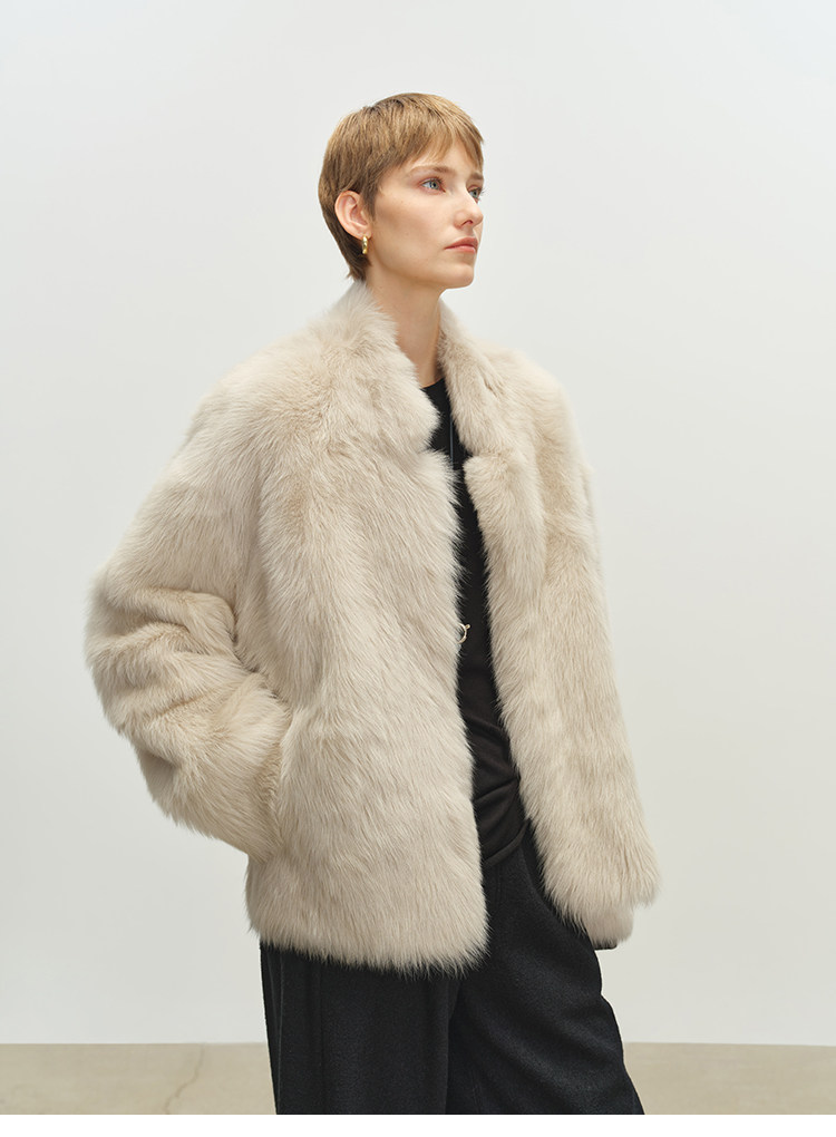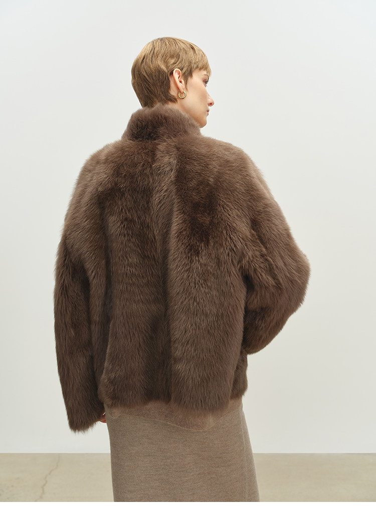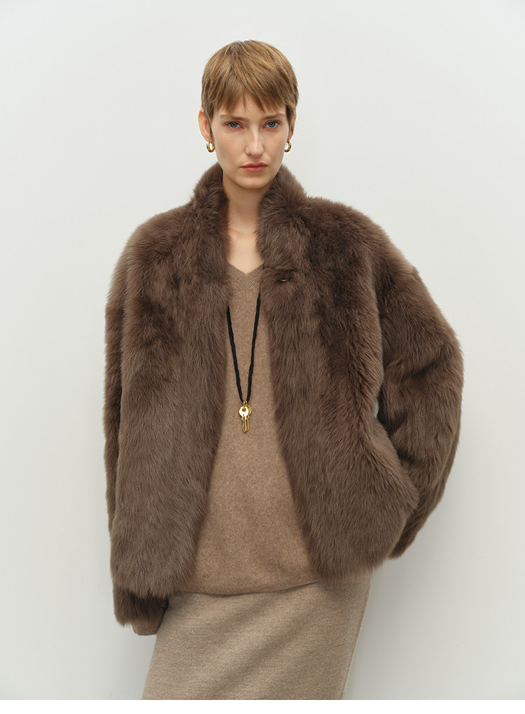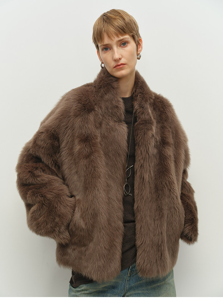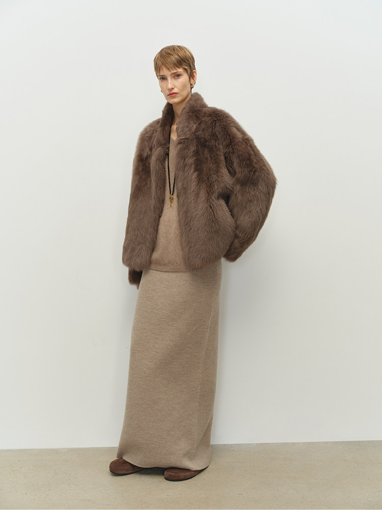 MSBEAST urban casual stand-up collar silhouette Tuscan straight fur one-piece jacket丨Rachel Xingge