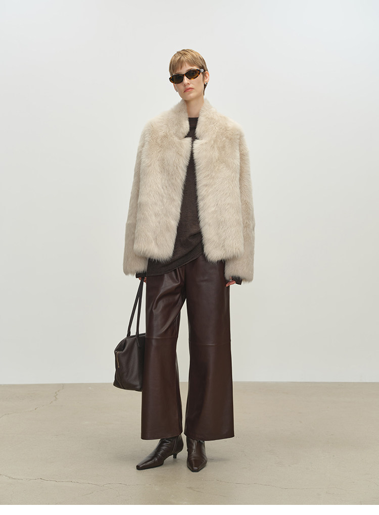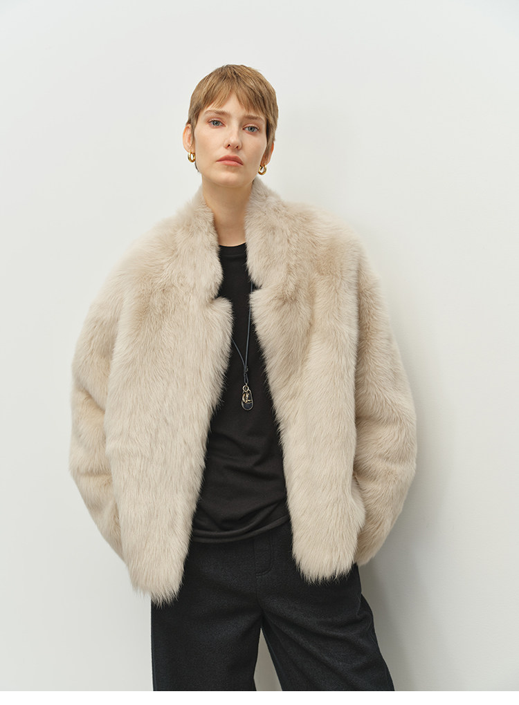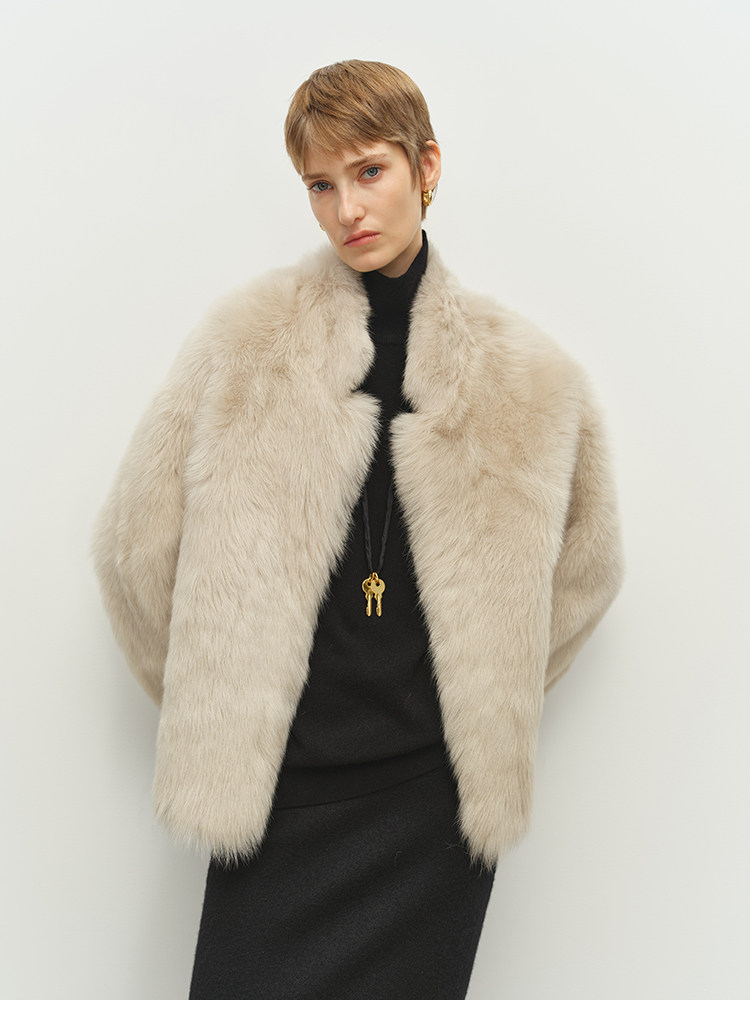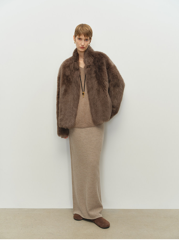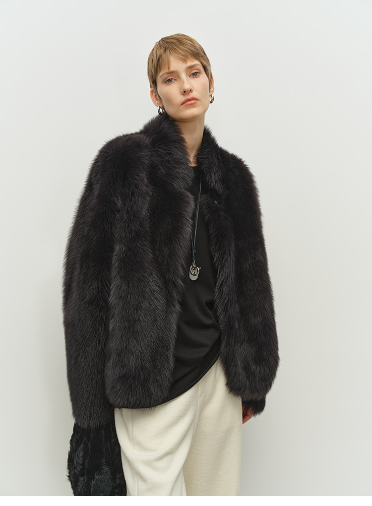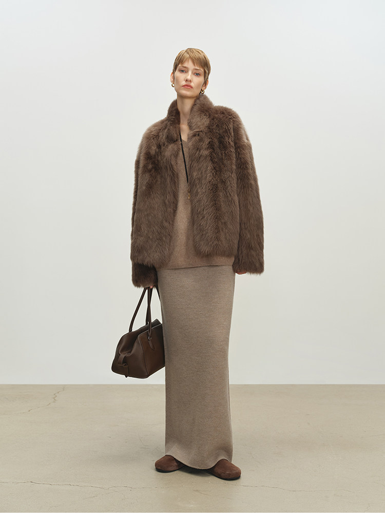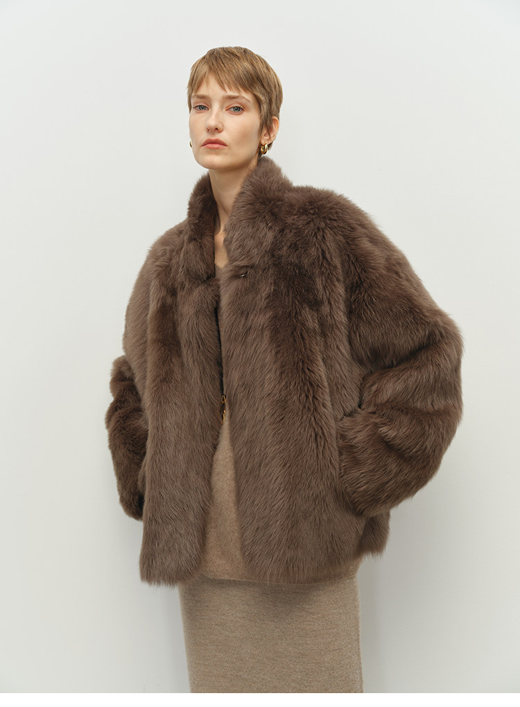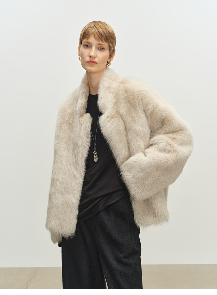 MSBEAST urban casual stand-up collar silhouette Tuscan straight fur one-piece jacket丨Rachel Xingge