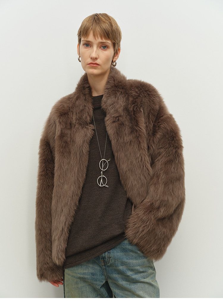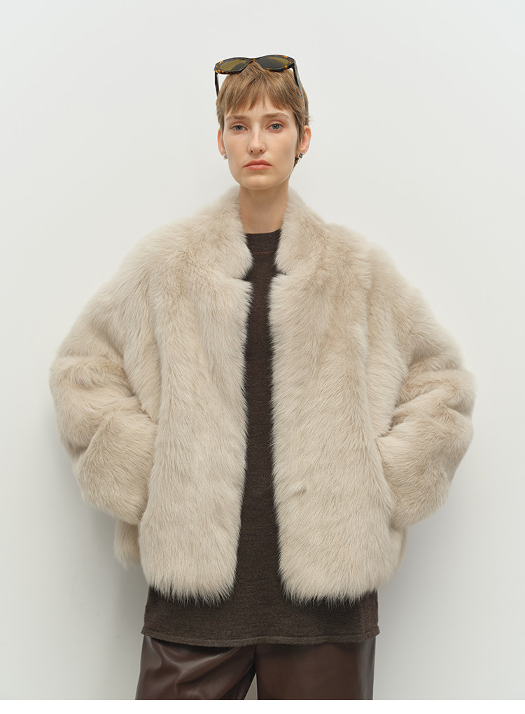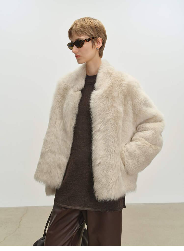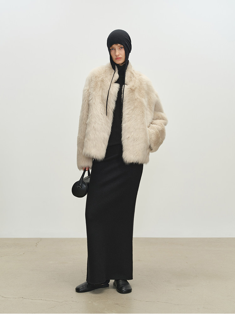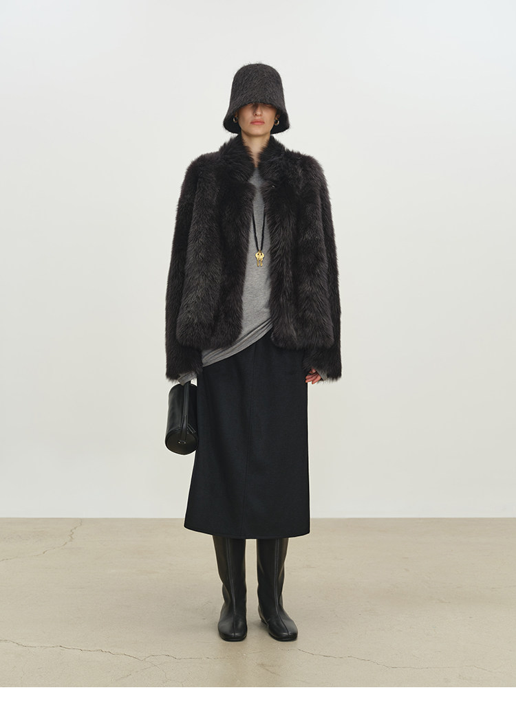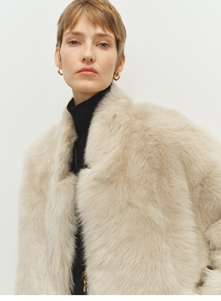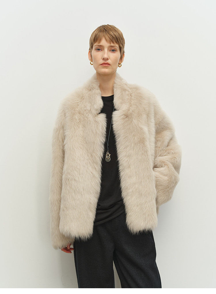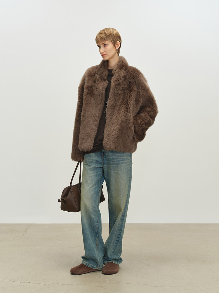 MSBEAST urban casual stand-up collar silhouette Tuscan straight fur one-piece jacket丨Rachel Xingge
