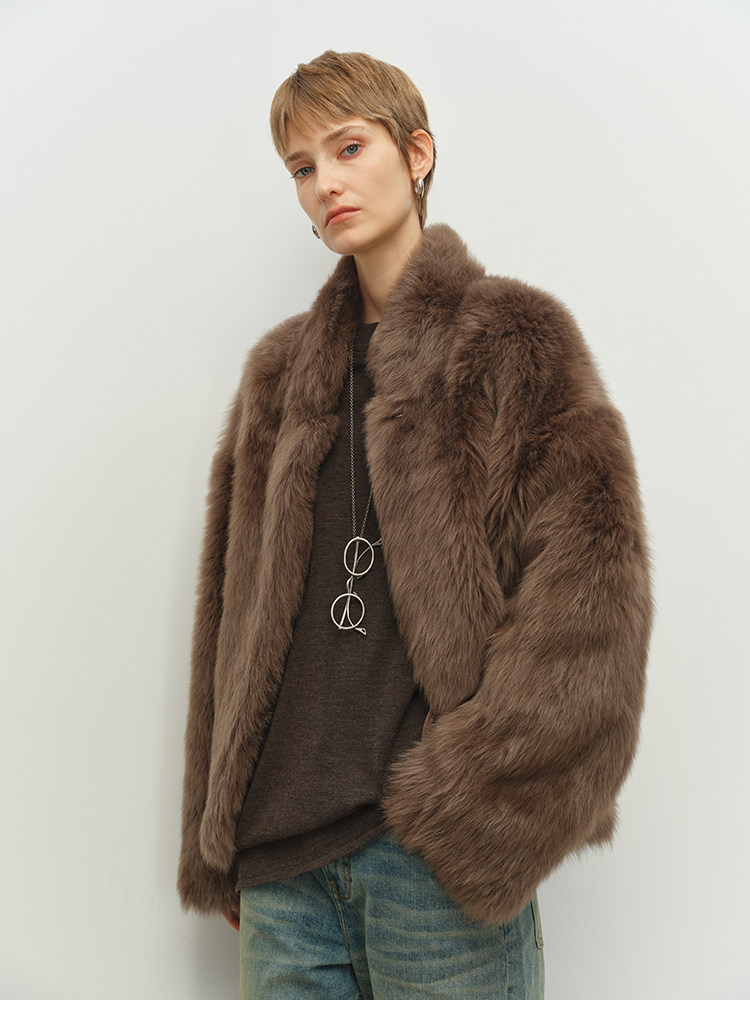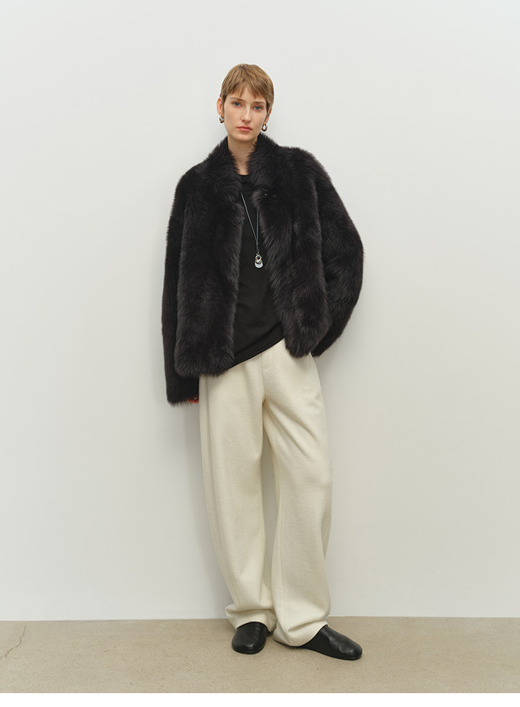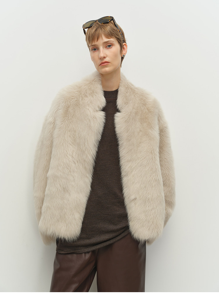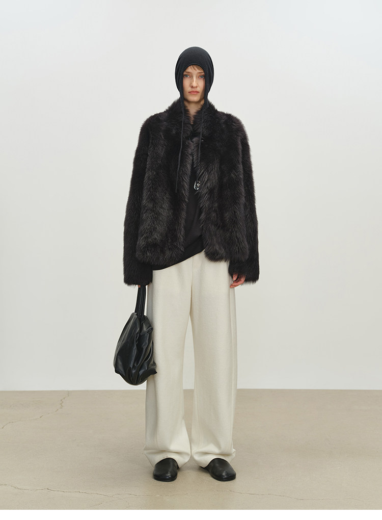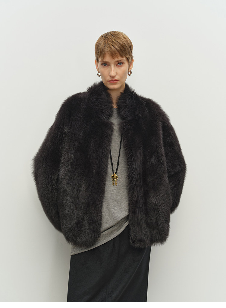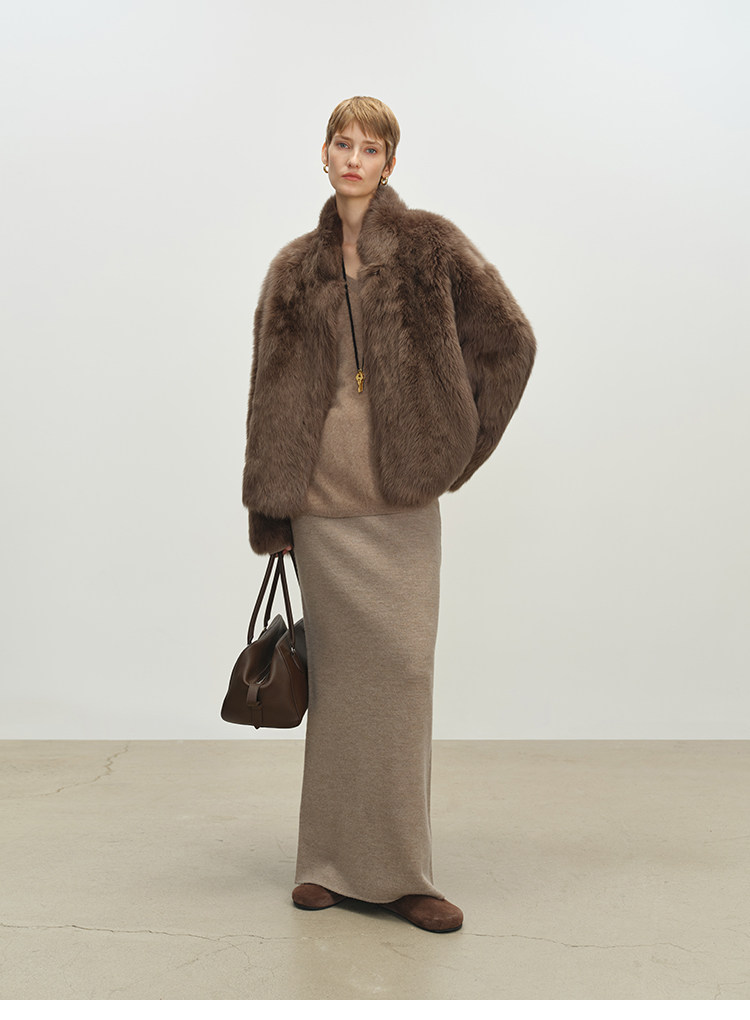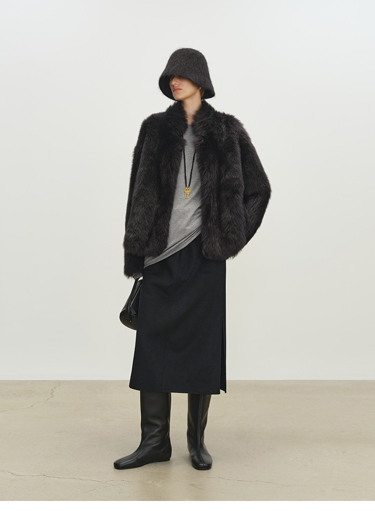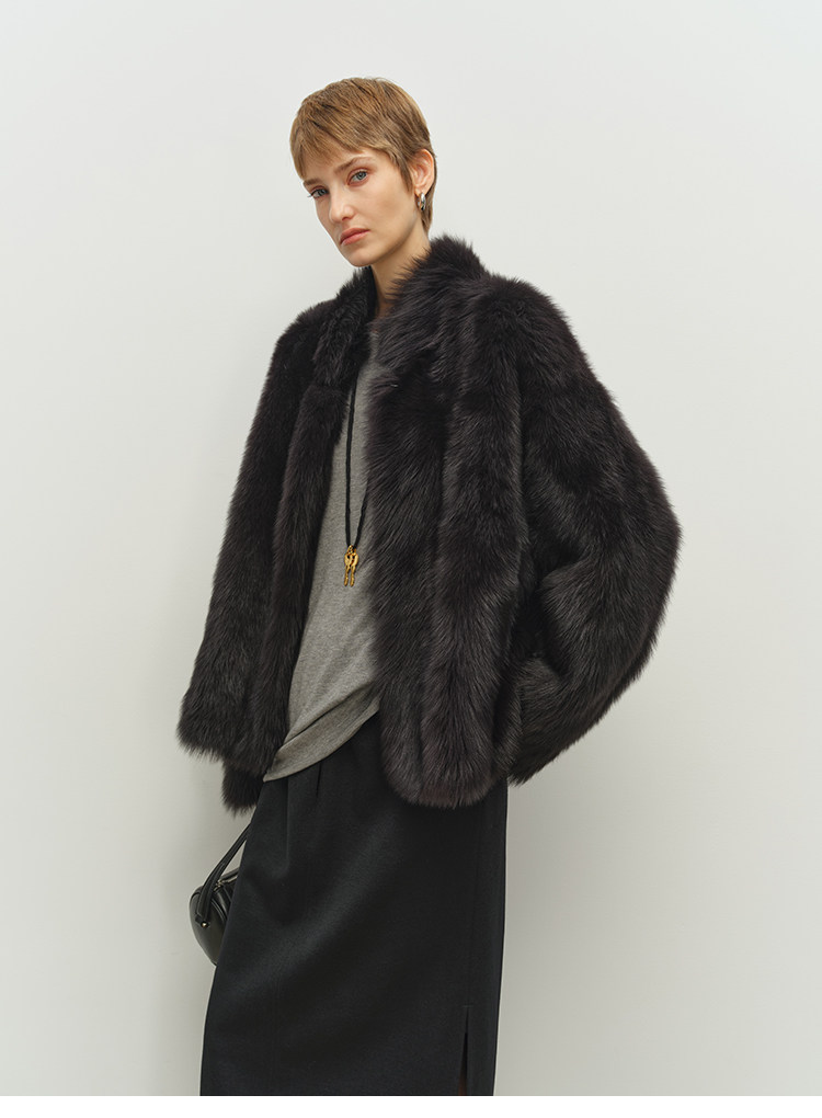 MSBEAST urban casual stand-up collar silhouette Tuscan straight fur one-piece jacket丨Rachel Xingge