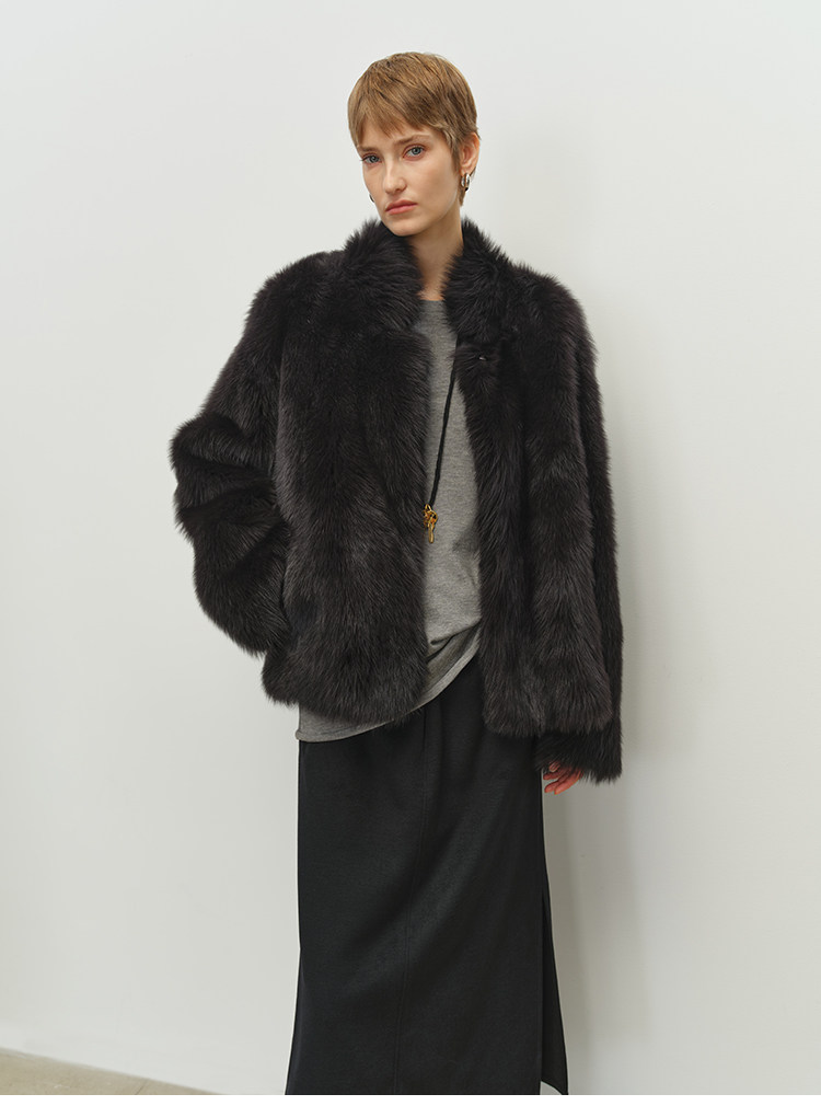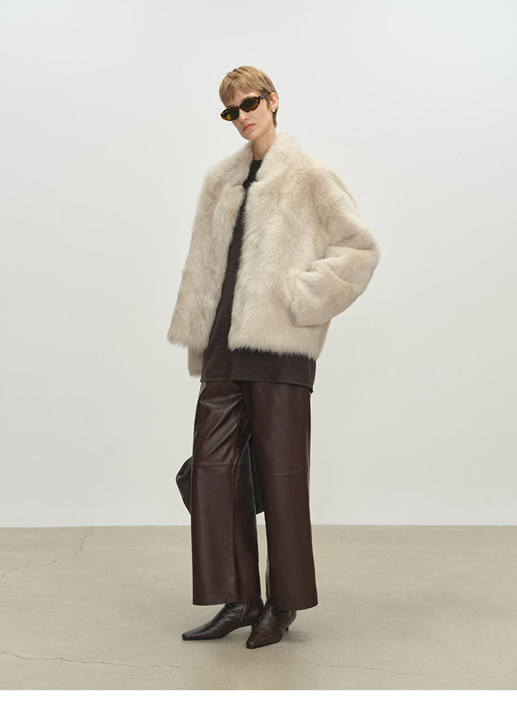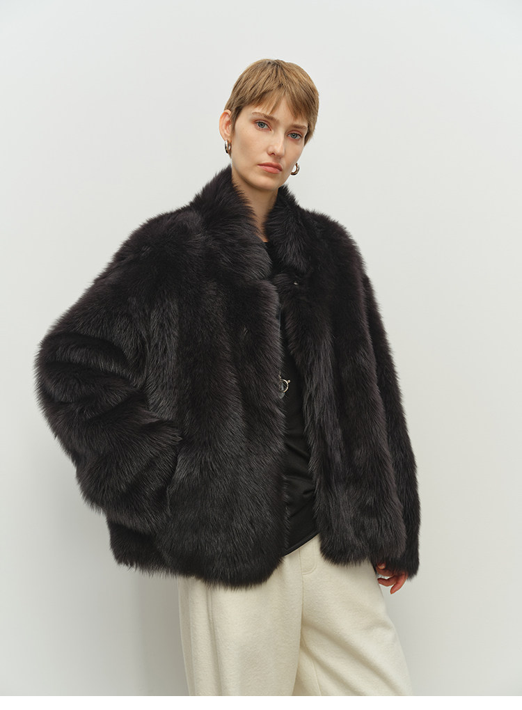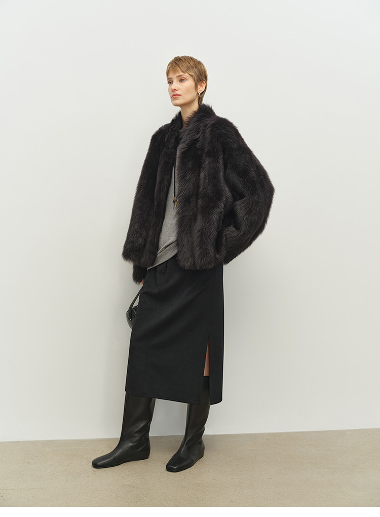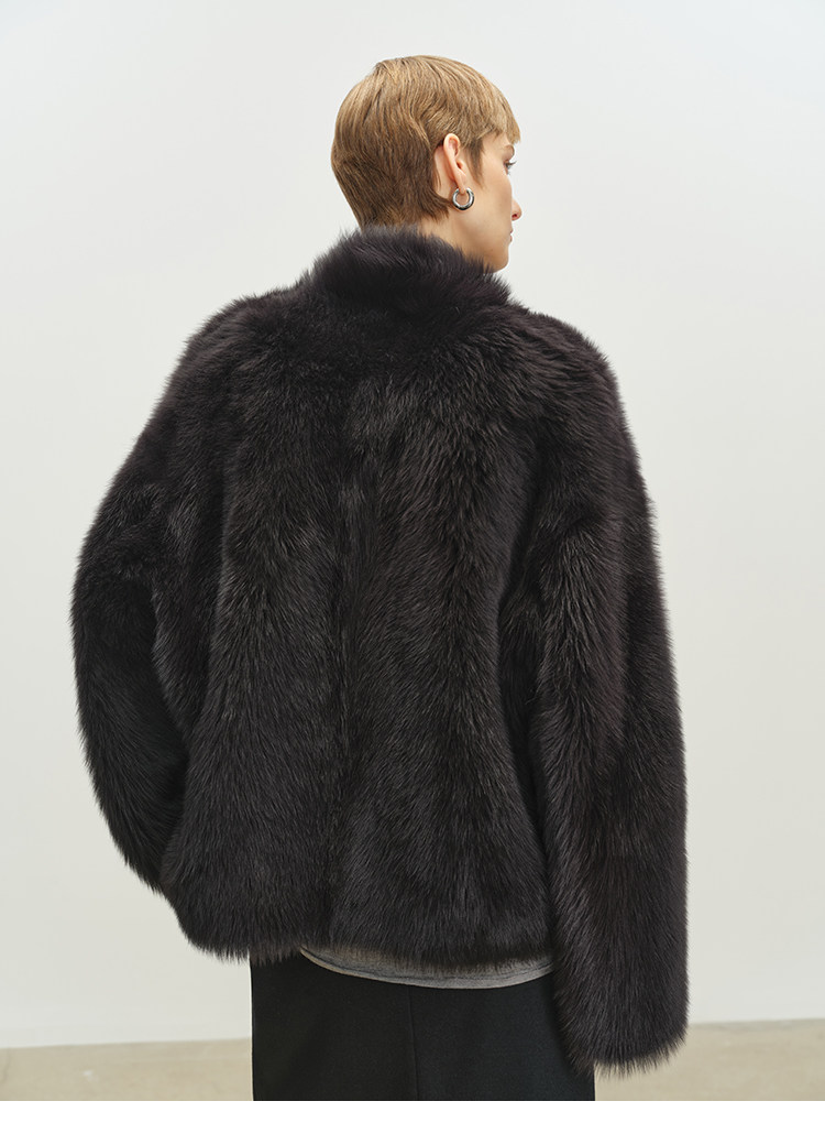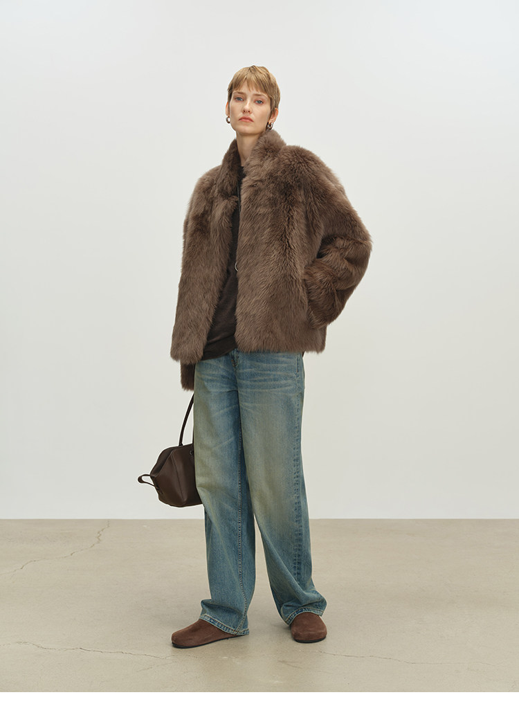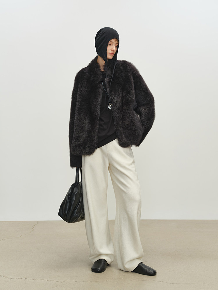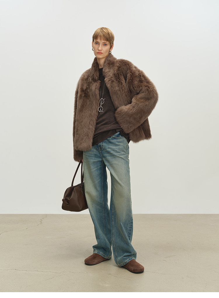 MSBEAST urban casual stand-up collar silhouette Tuscan straight fur one-piece jacket丨Rachel Xingge