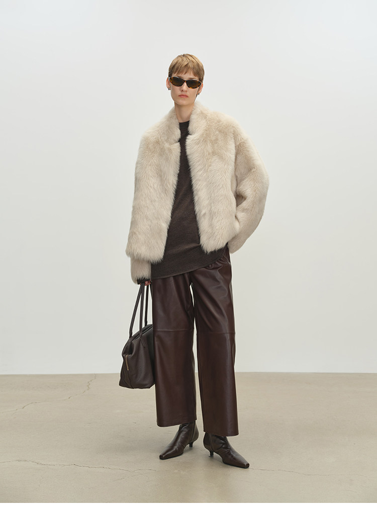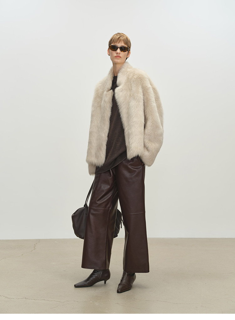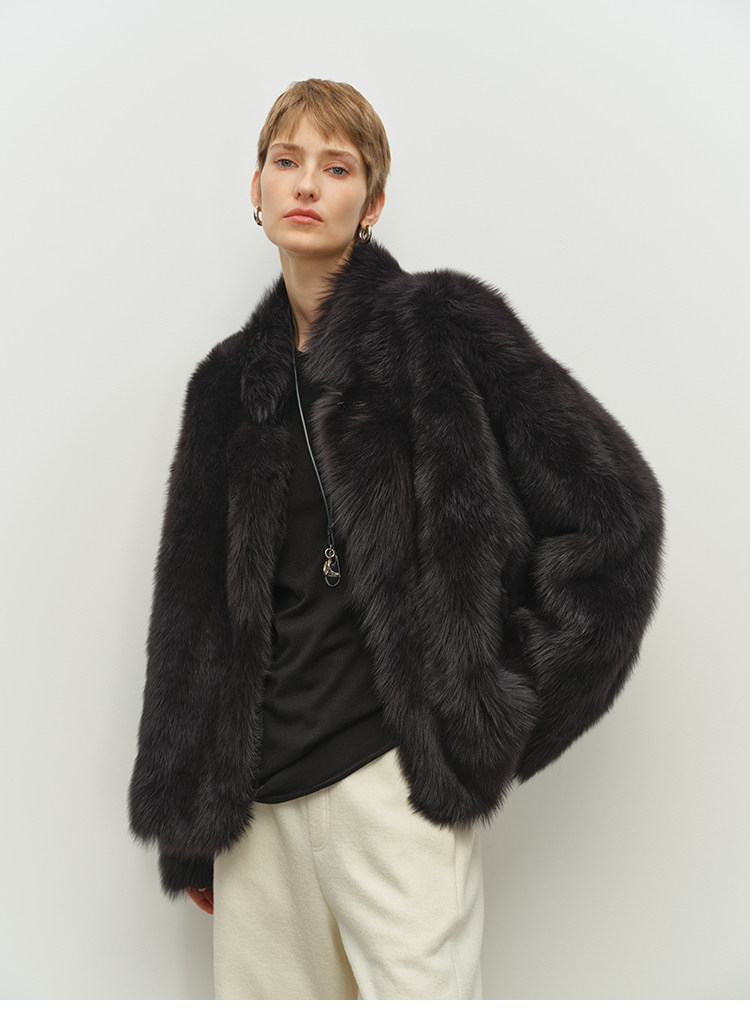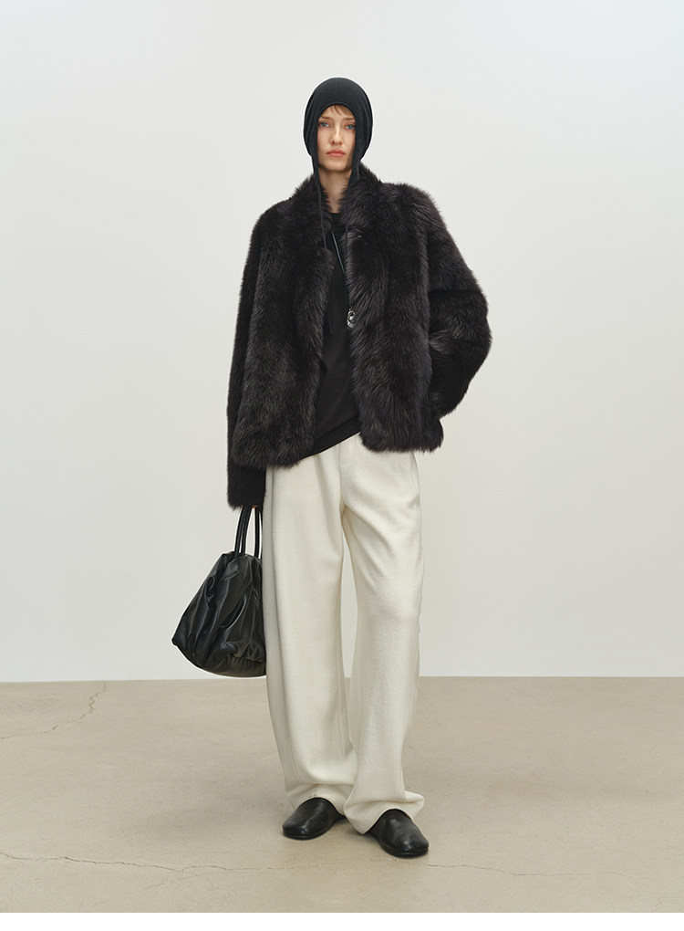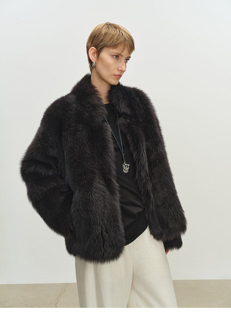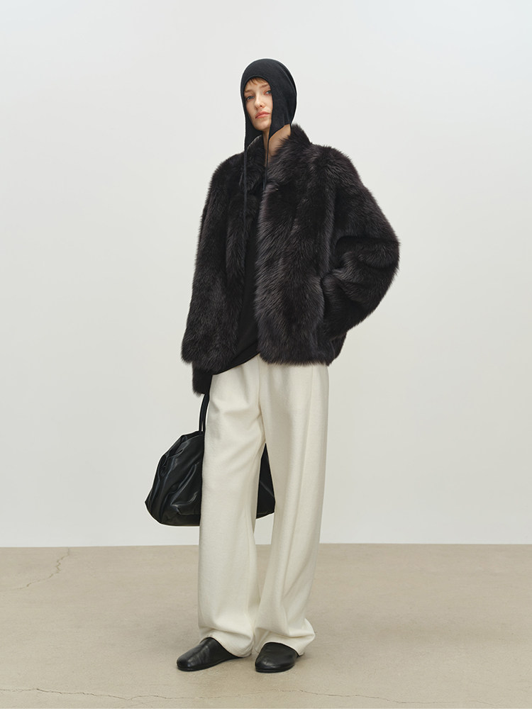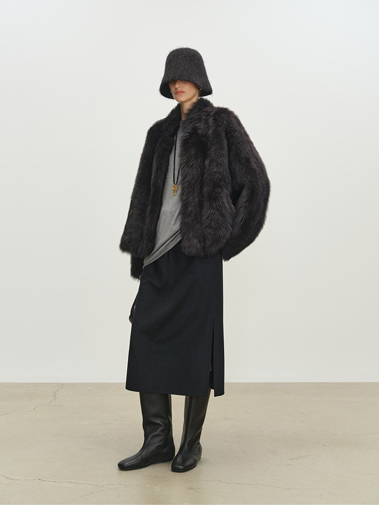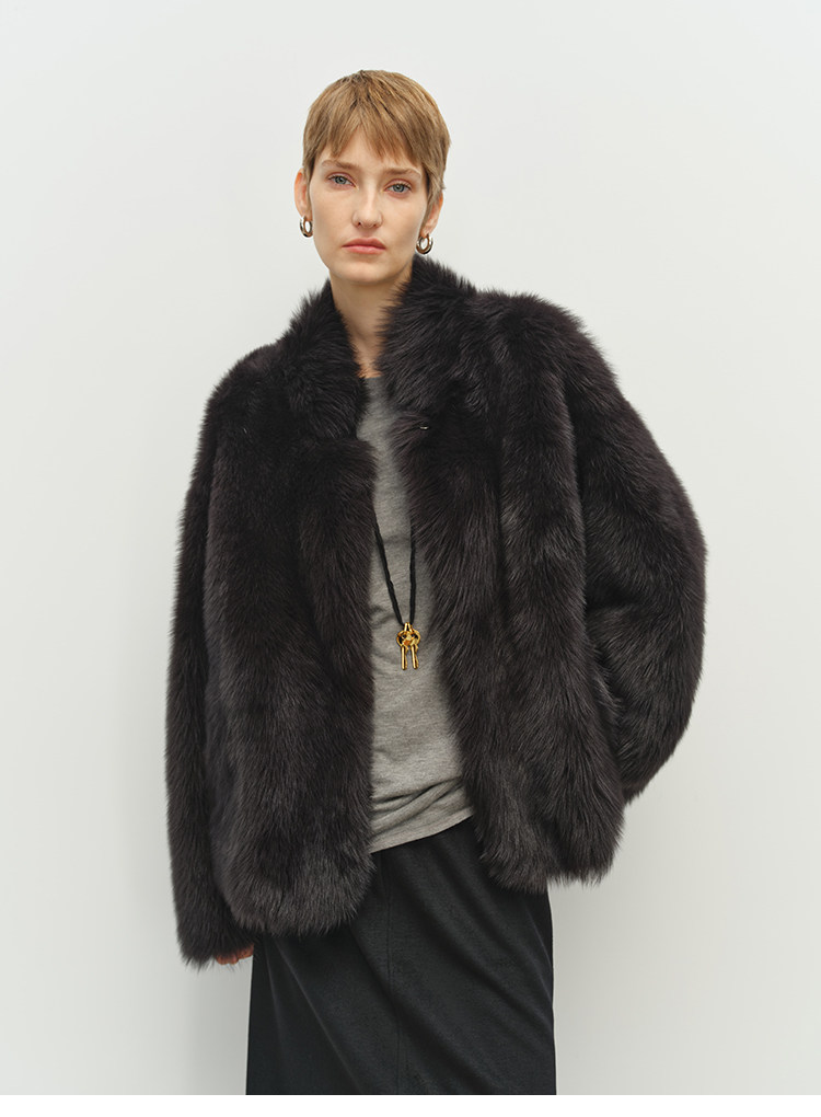 MSBEAST urban casual stand-up collar silhouette Tuscan straight fur one-piece jacket丨Rachel Xingge