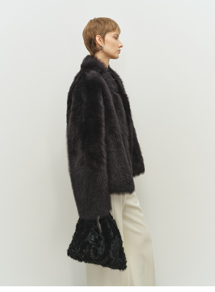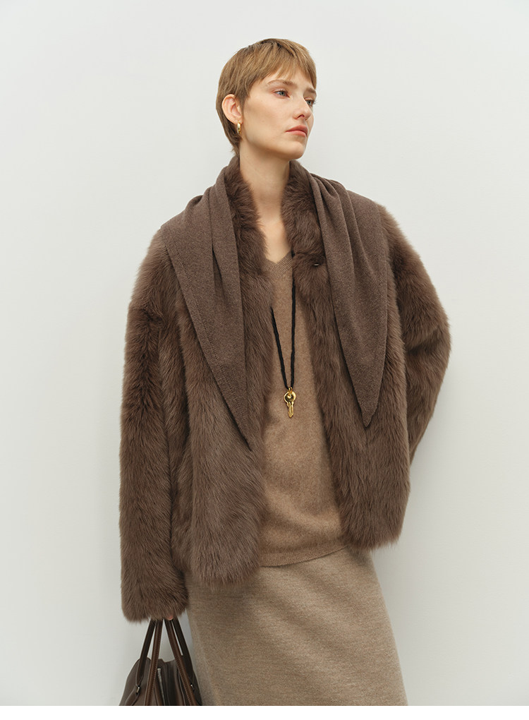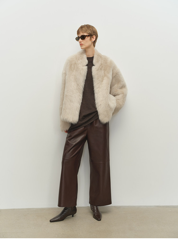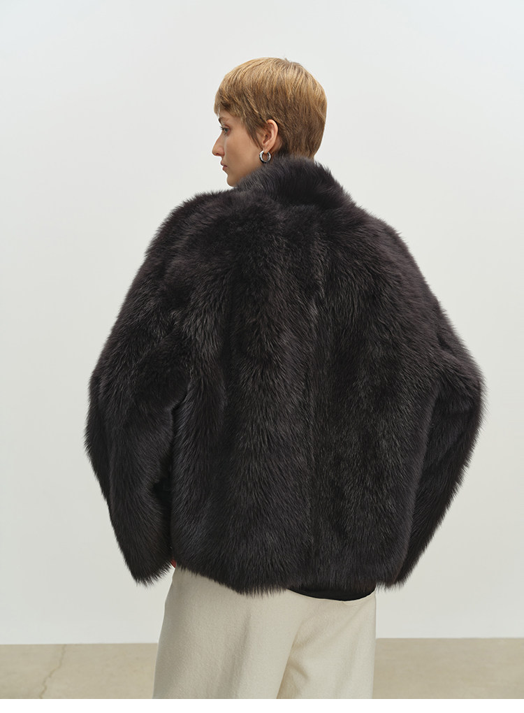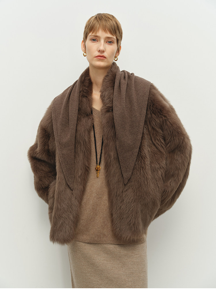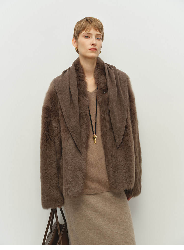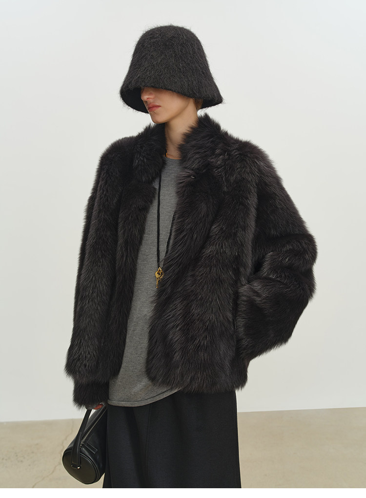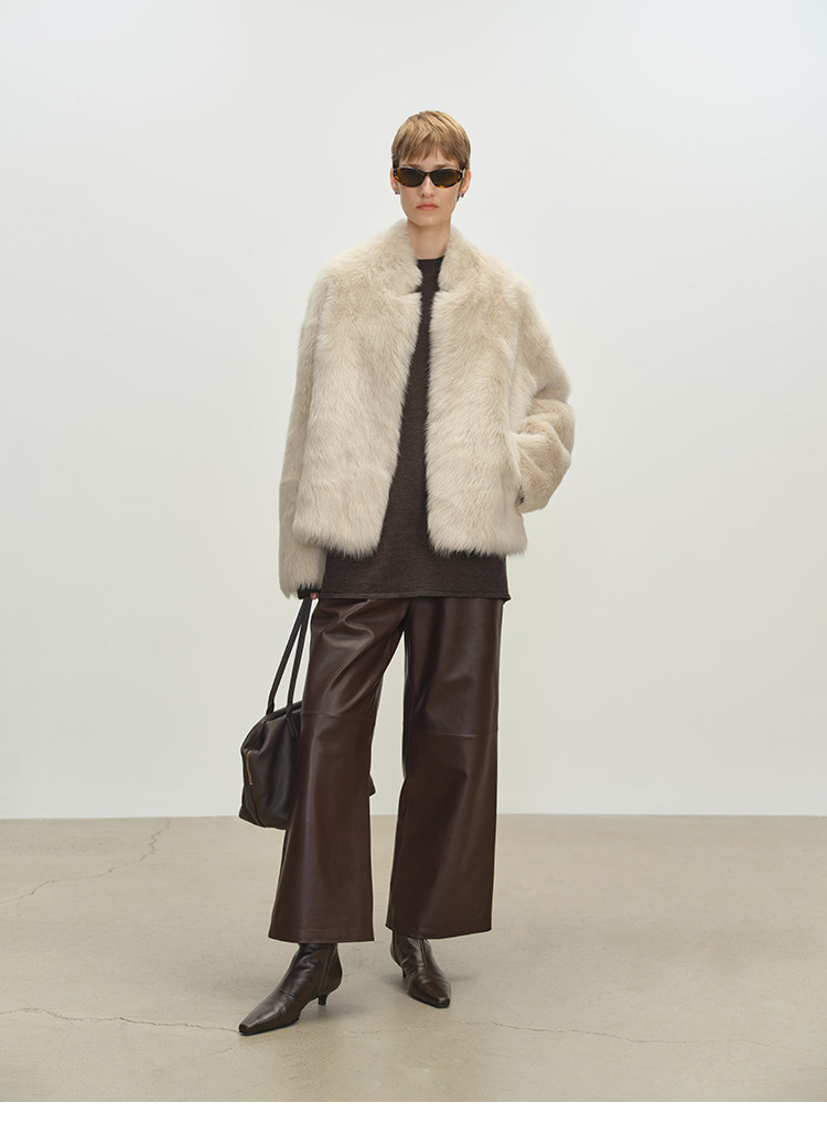 MSBEAST urban casual stand-up collar silhouette Tuscan straight fur one-piece jacket丨Rachel Xingge