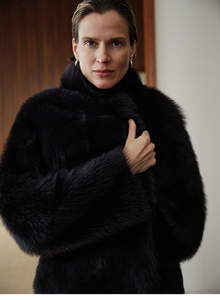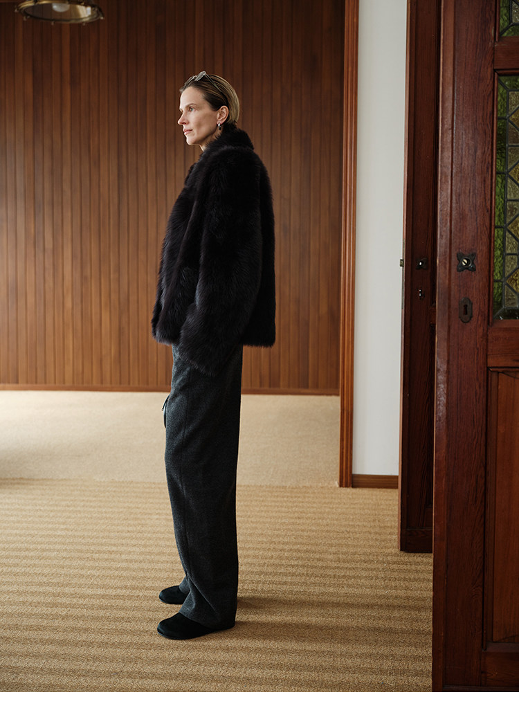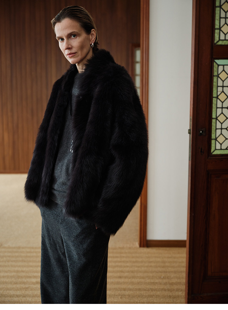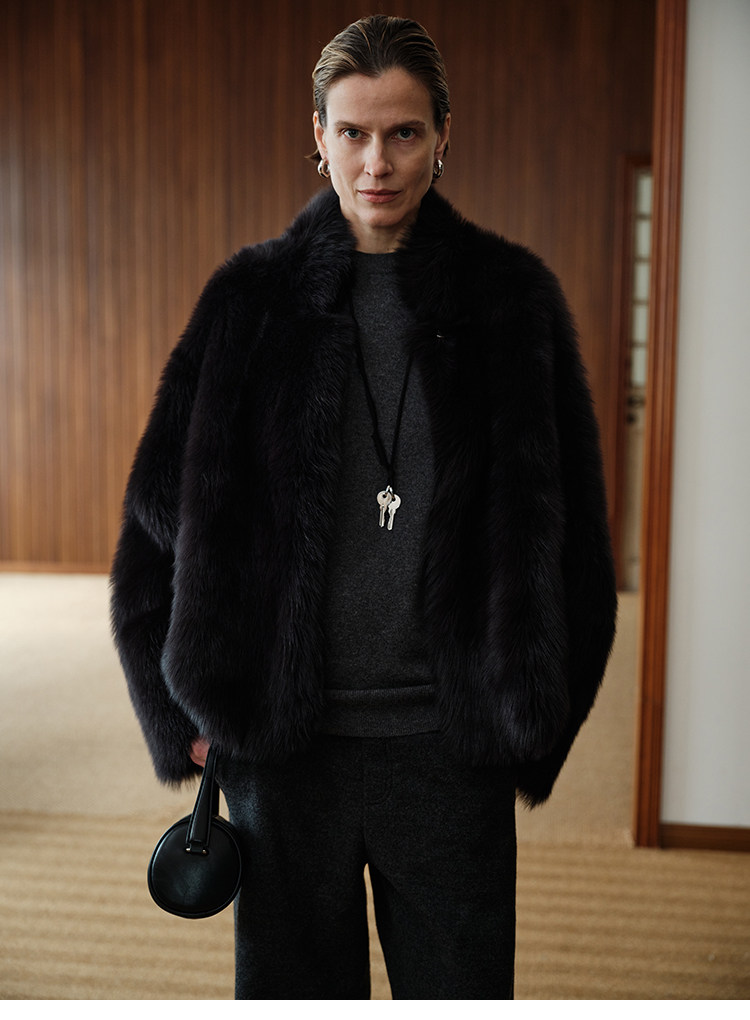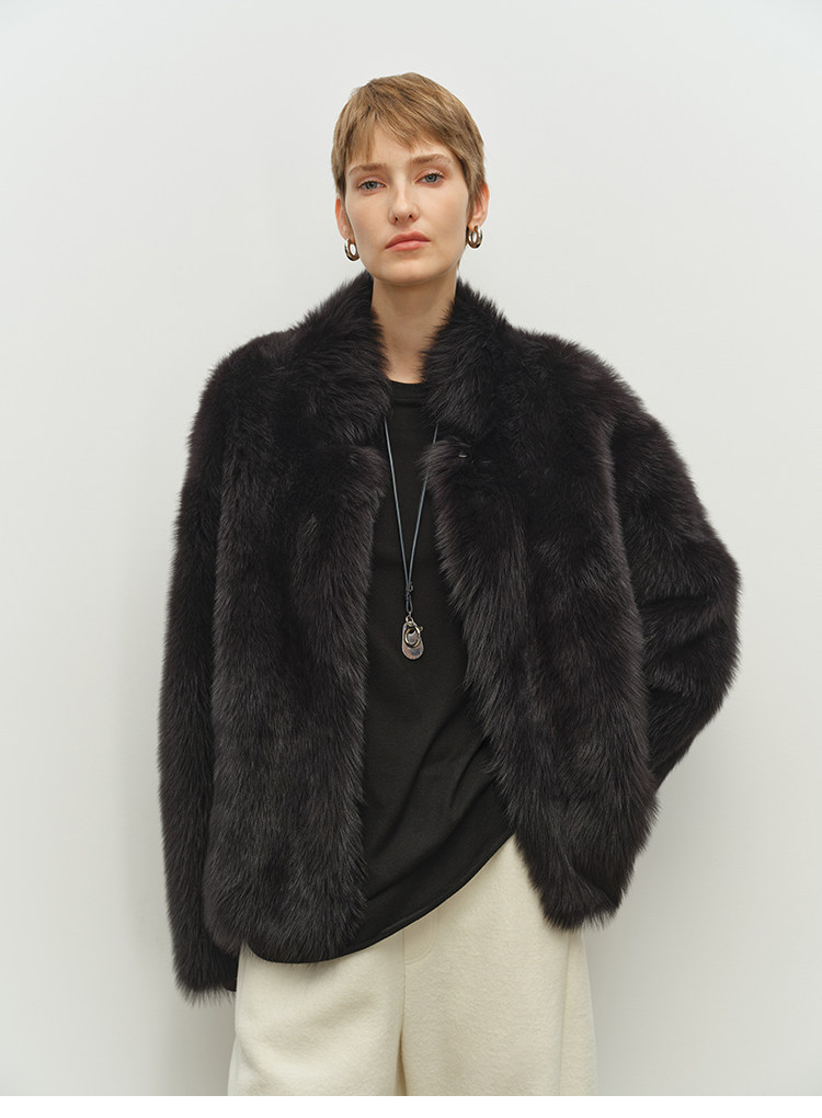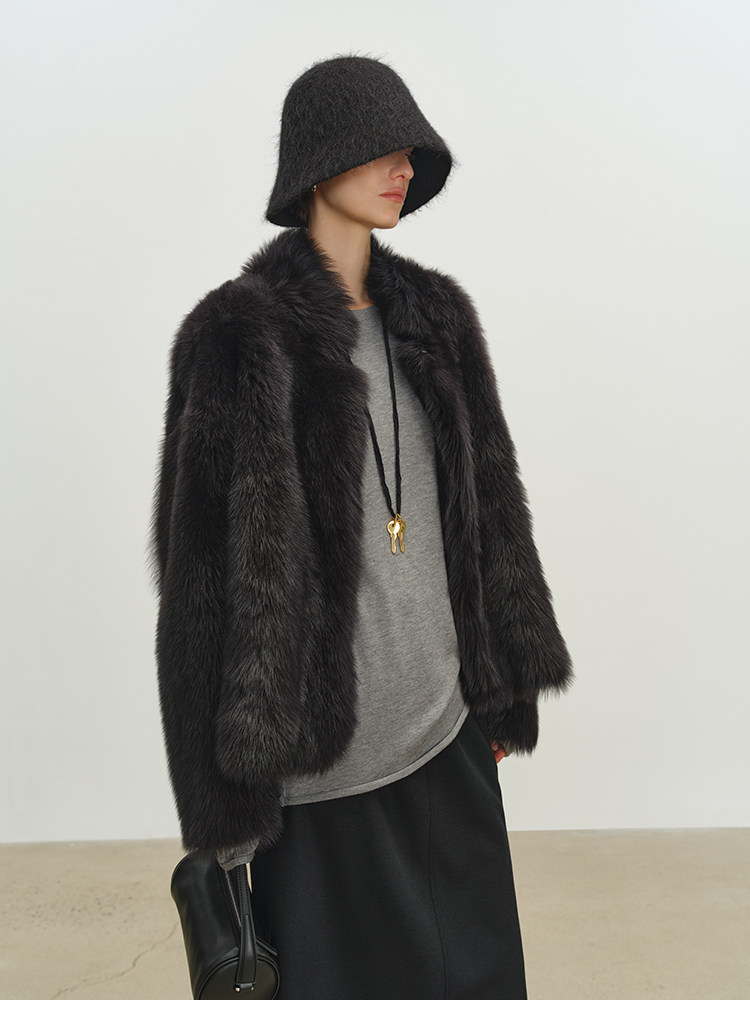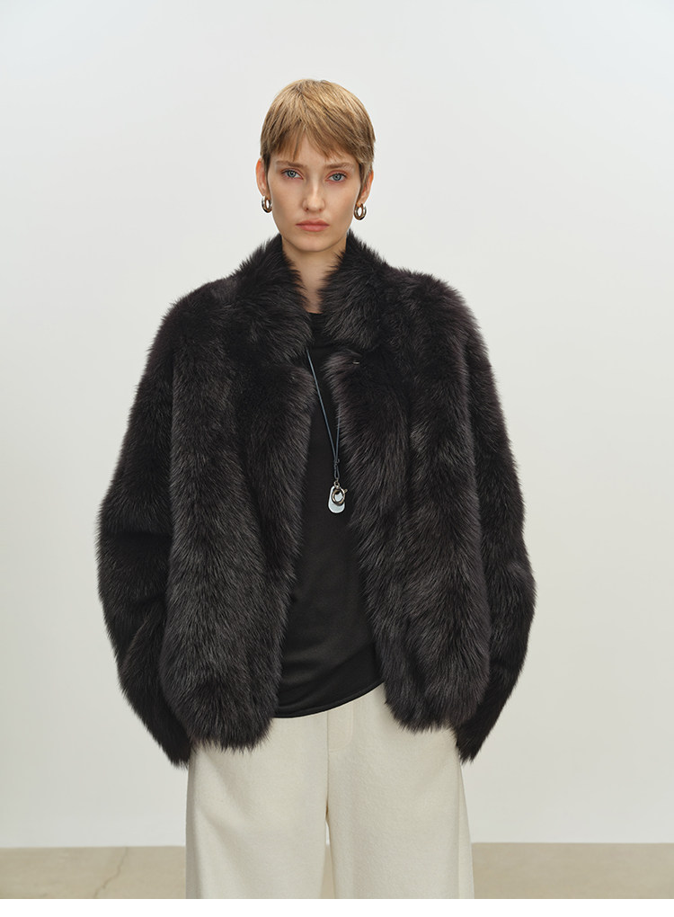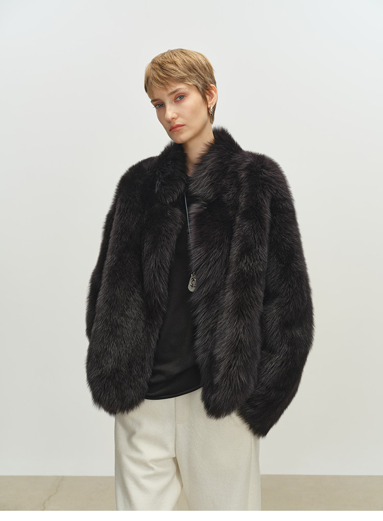 MSBEAST urban casual stand-up collar silhouette Tuscan straight fur one-piece jacket丨Rachel Xingge