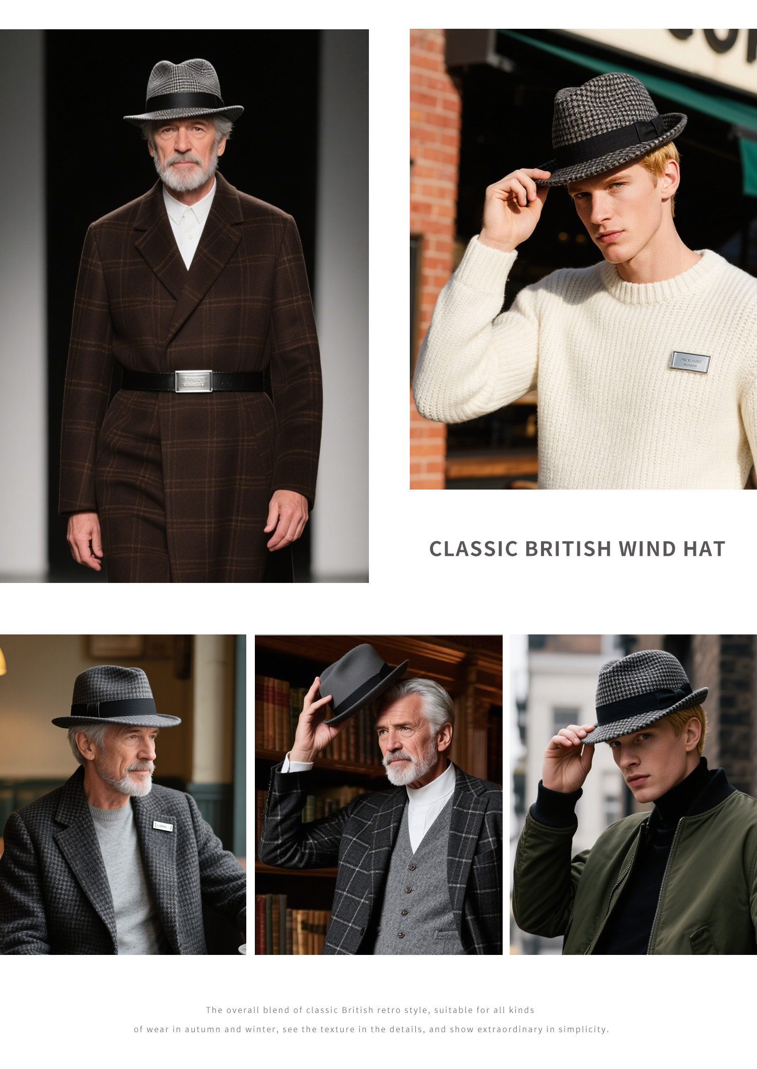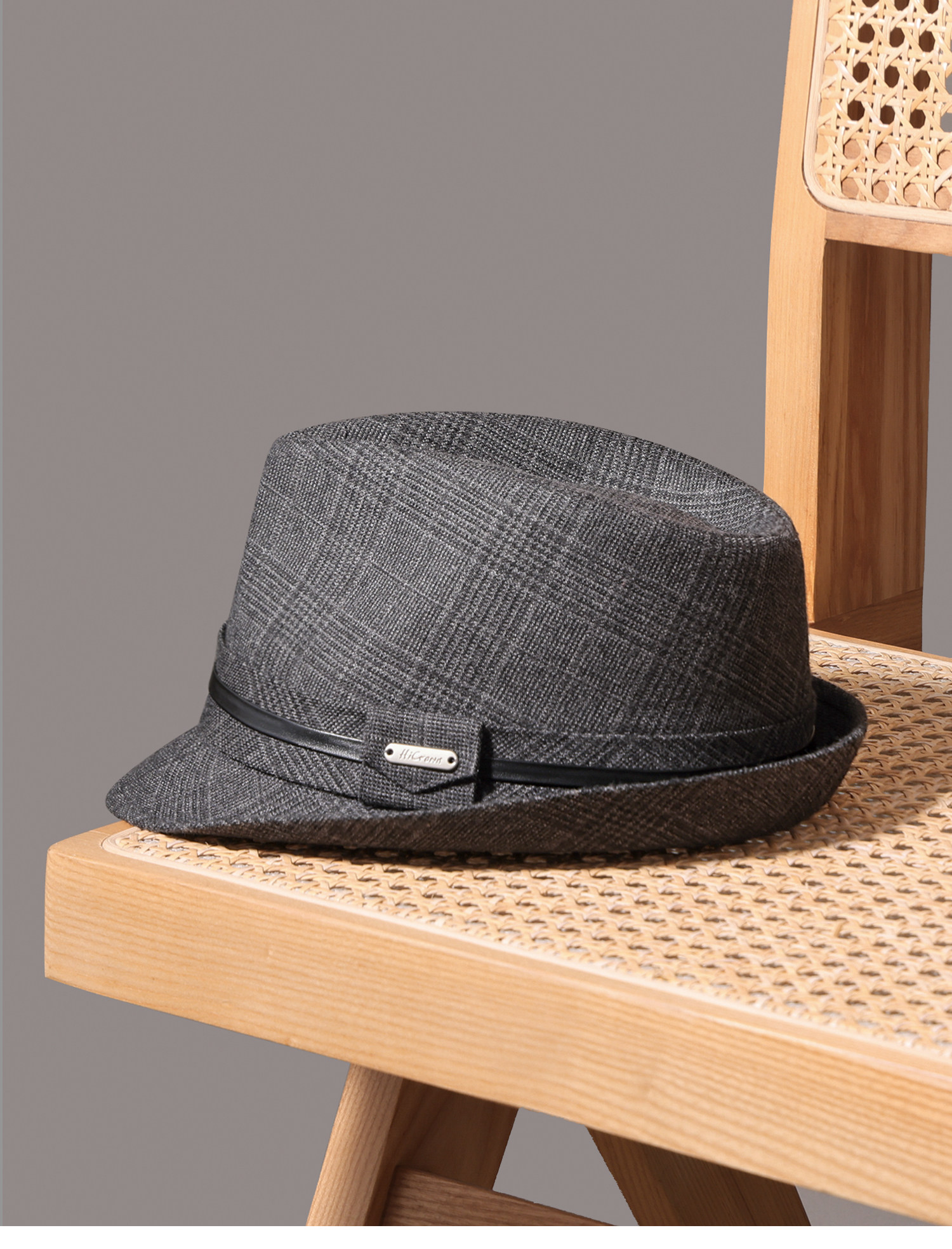 Autumn and Winter British Style Retro Rolled-Brimmed Hat, New Welsh Plaid Men's Woolen Large Head Circumference Gentleman's Hat