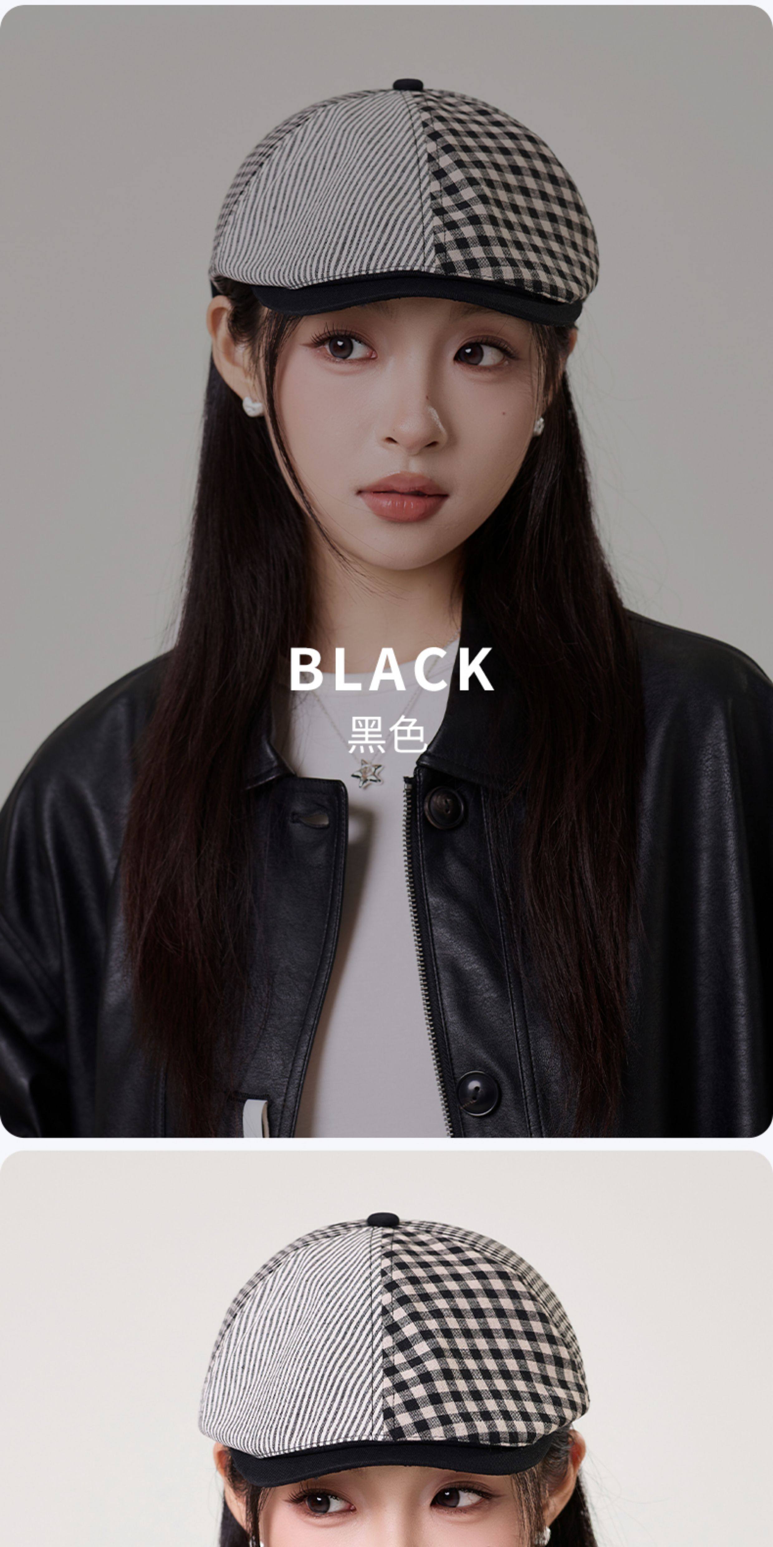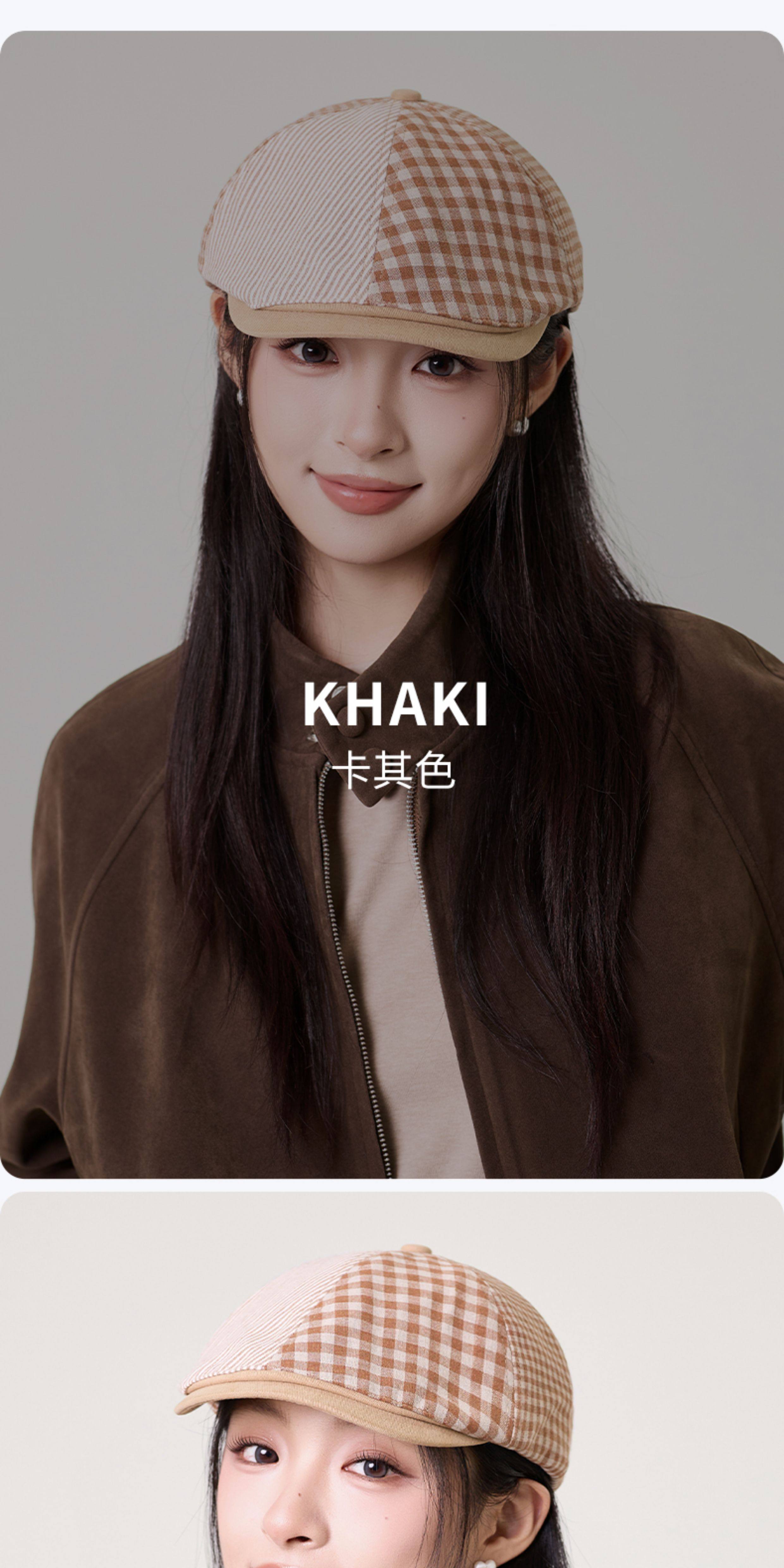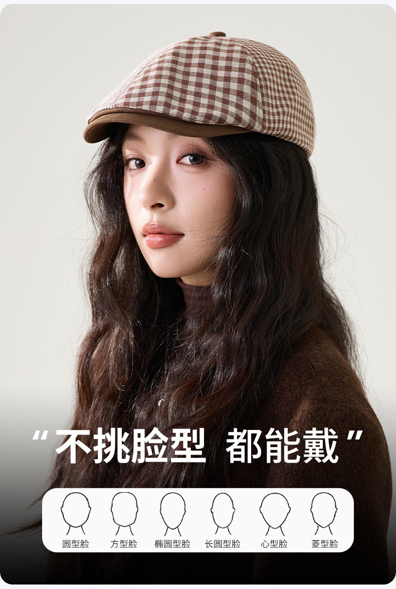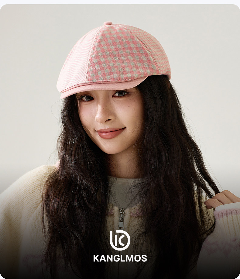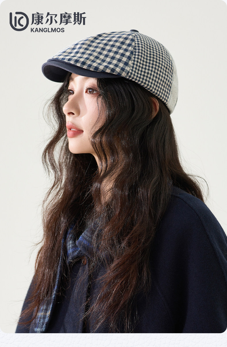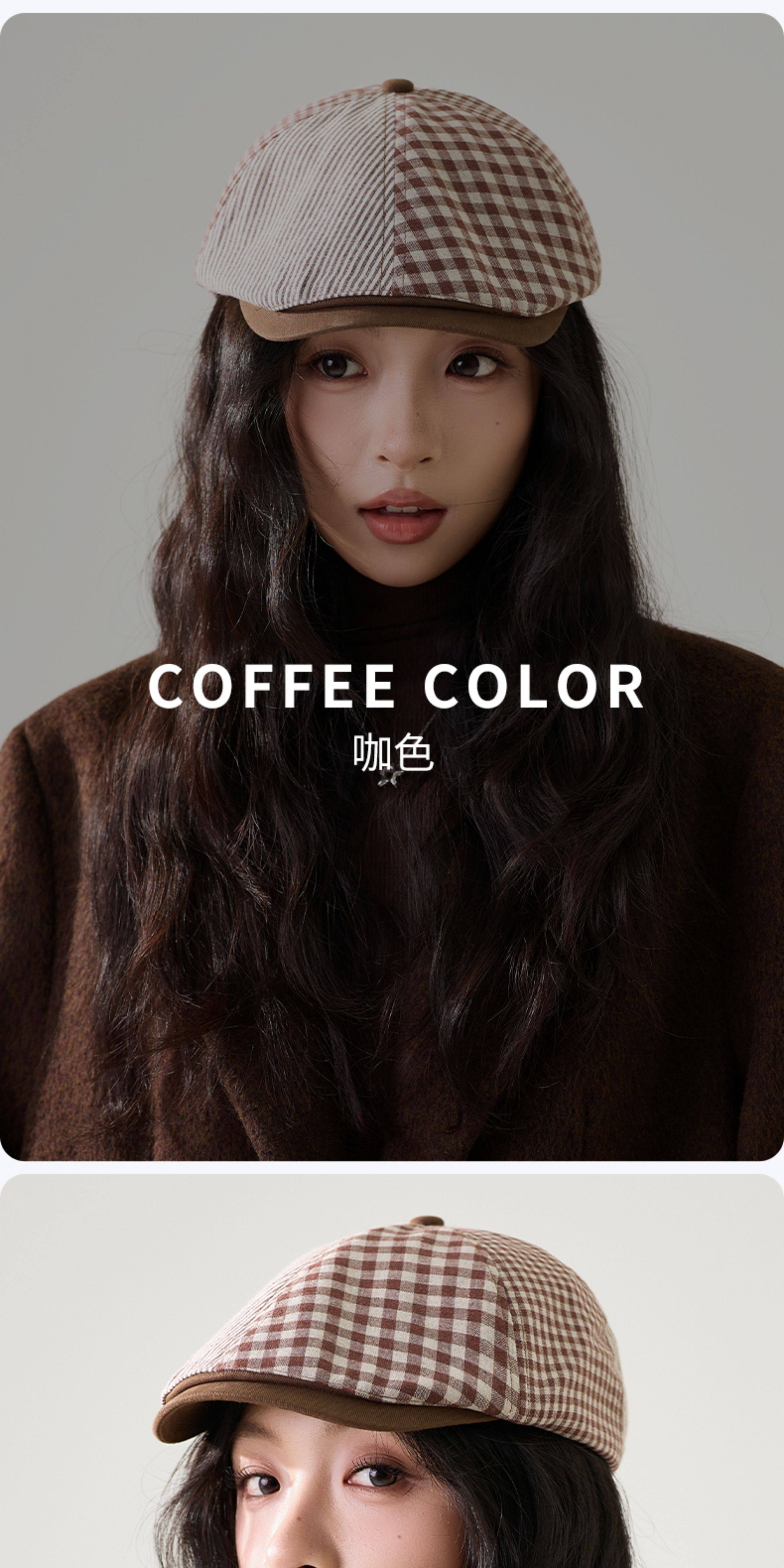 Kanglmos Retro Plaid Beret Hat for Women, New Autumn and Winter Style, Fashionable and Versatile, Makes the Face Look Smaller, Painter's Hat