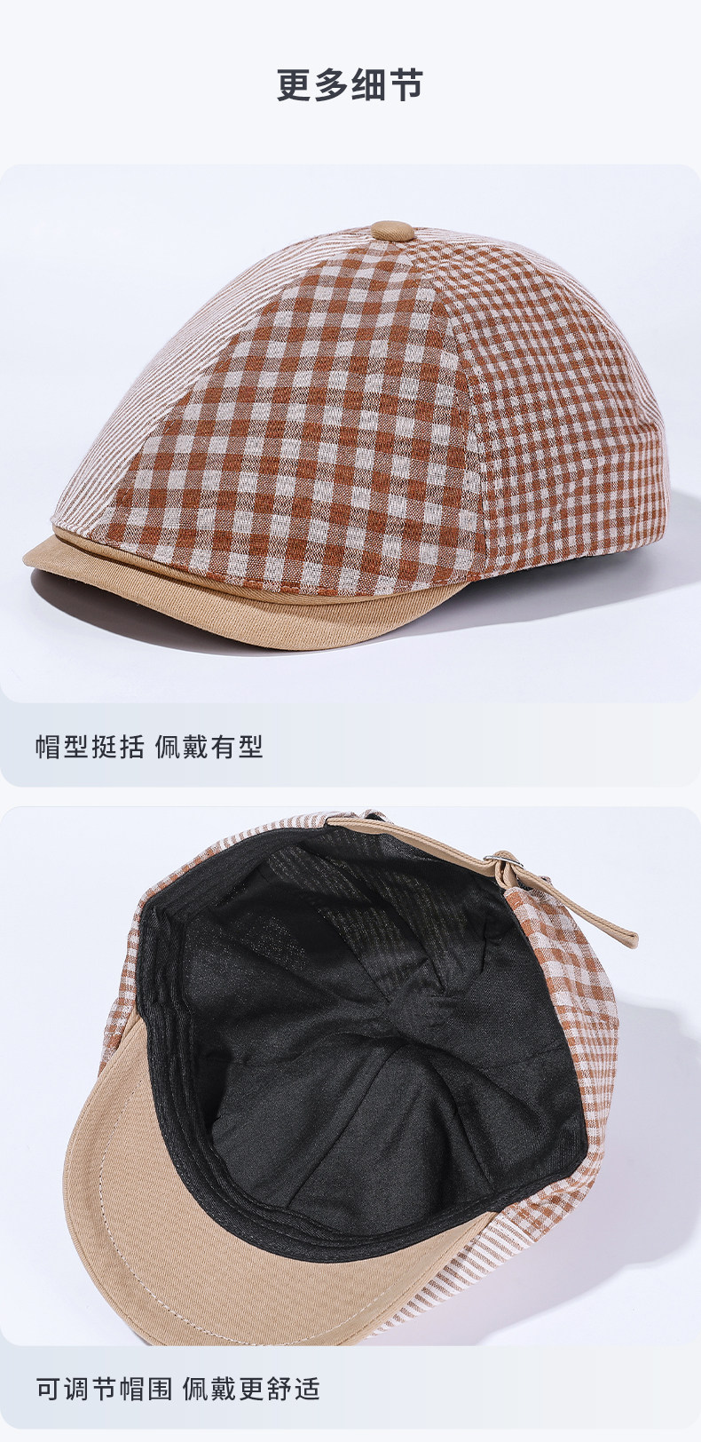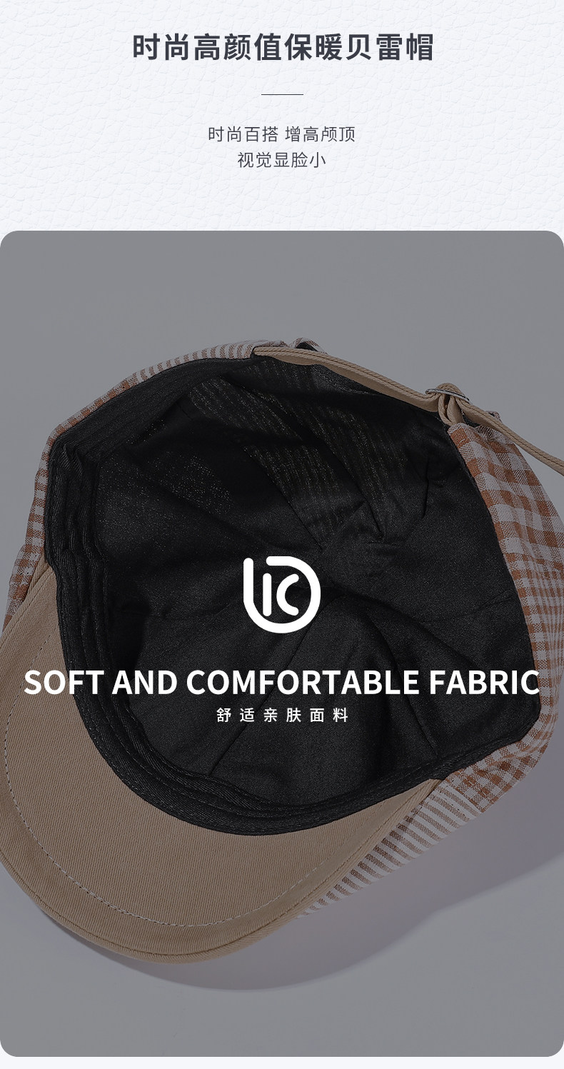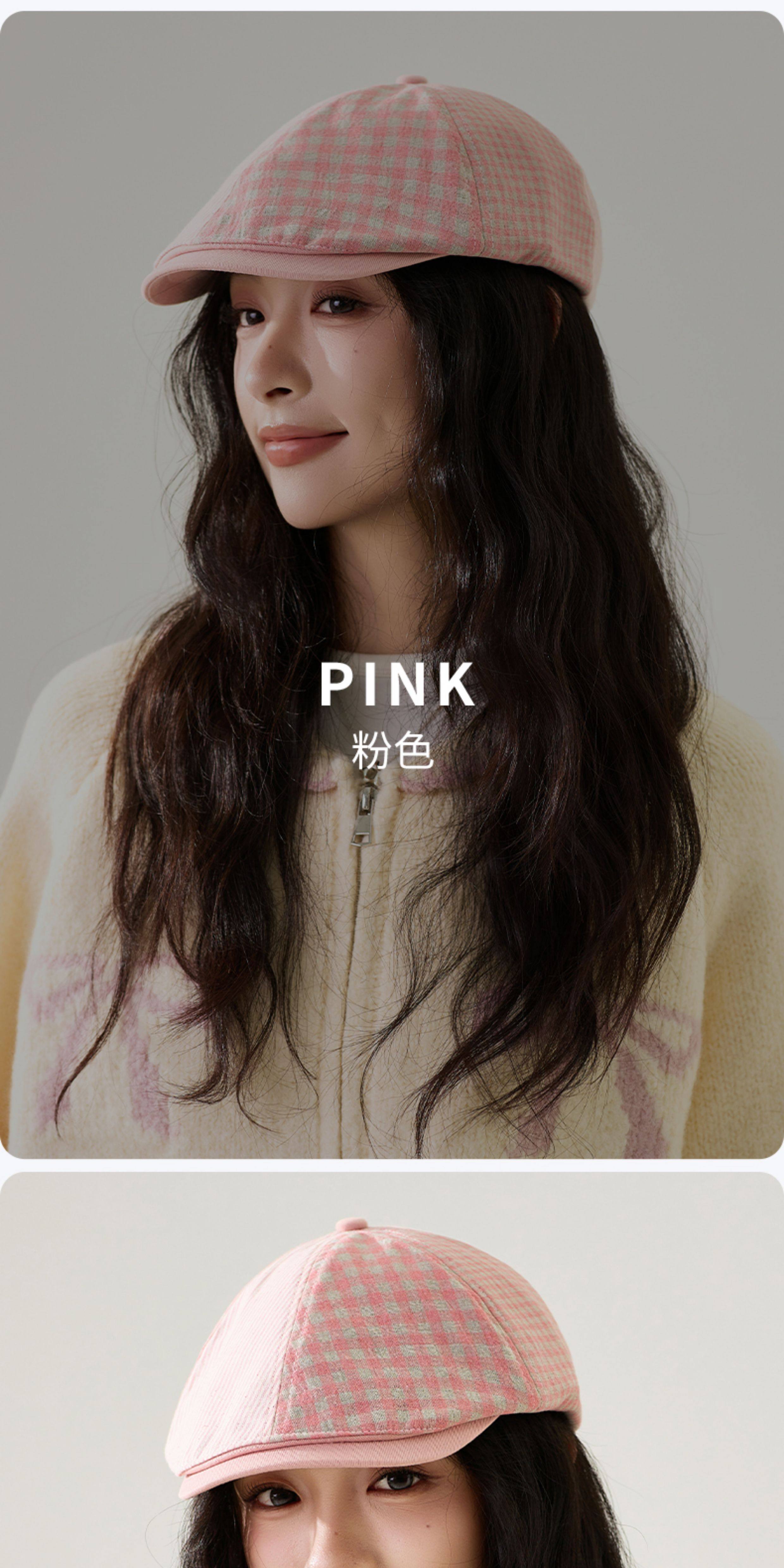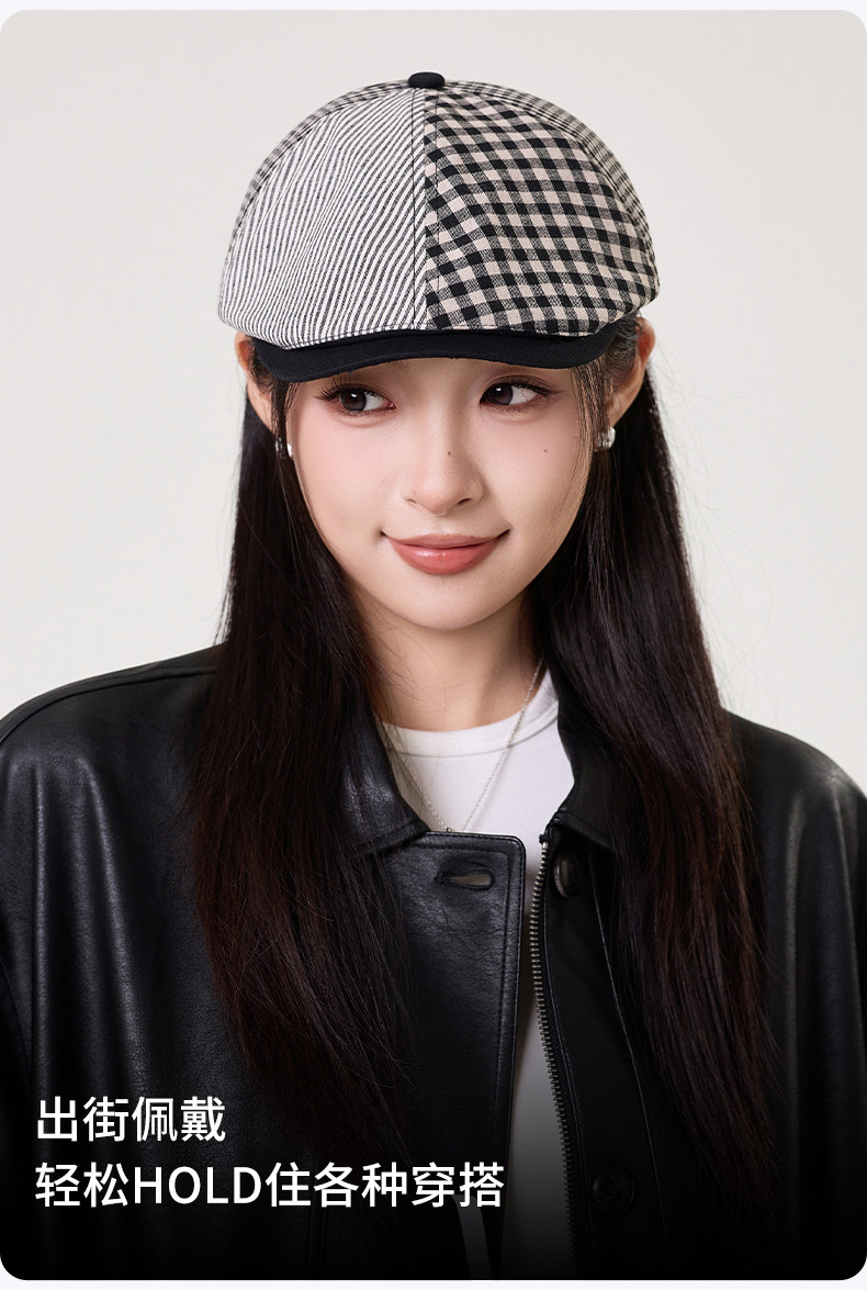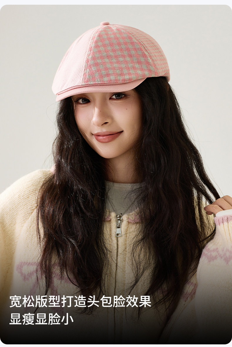 Kanglmos Retro Plaid Beret Hat for Women, New Autumn and Winter Style, Fashionable and Versatile, Makes the Face Look Smaller, Painter's Hat