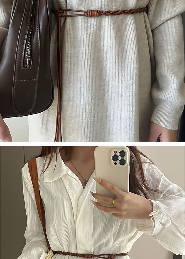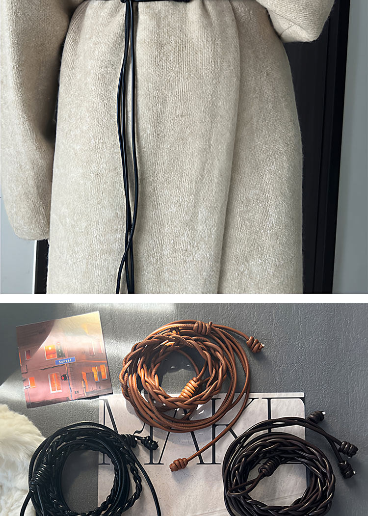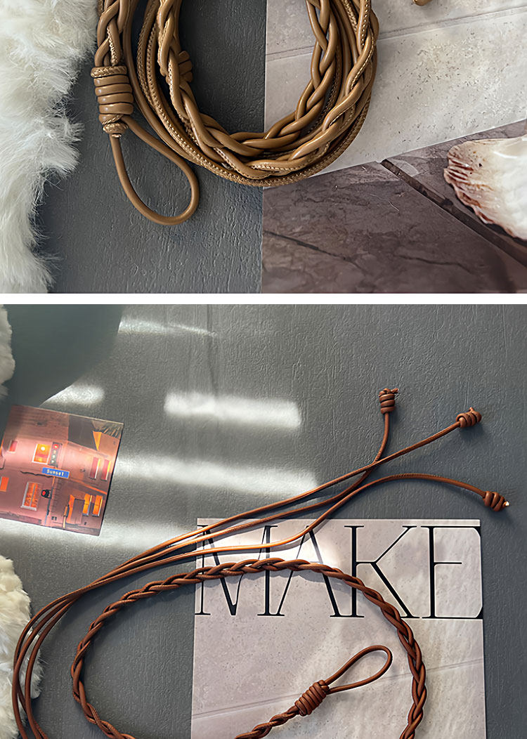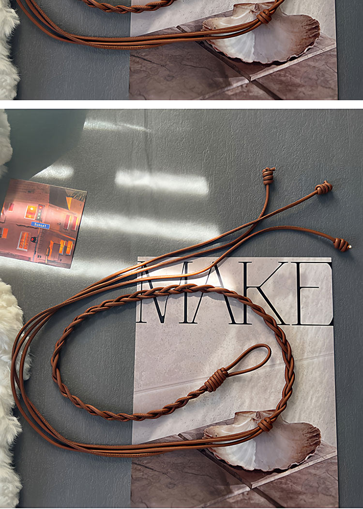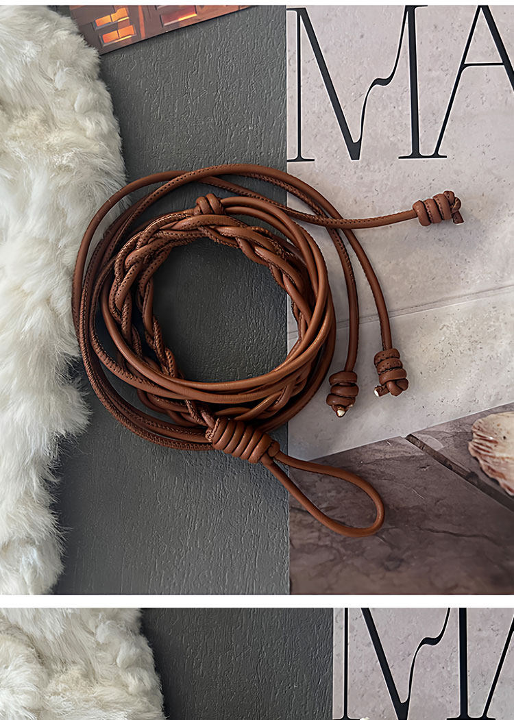 Caramel-Colored Genuine Leather Women's Belt, Decorative Accessory for Dresses, Waist Rope Accessory, 2025 New Style, High-End Thin Leather Belt for Women
