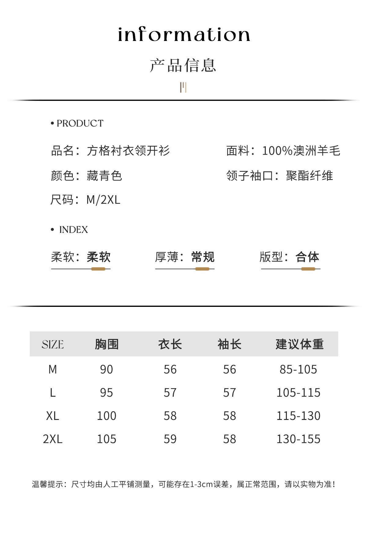 Size (cm) 42 44 46 48 50