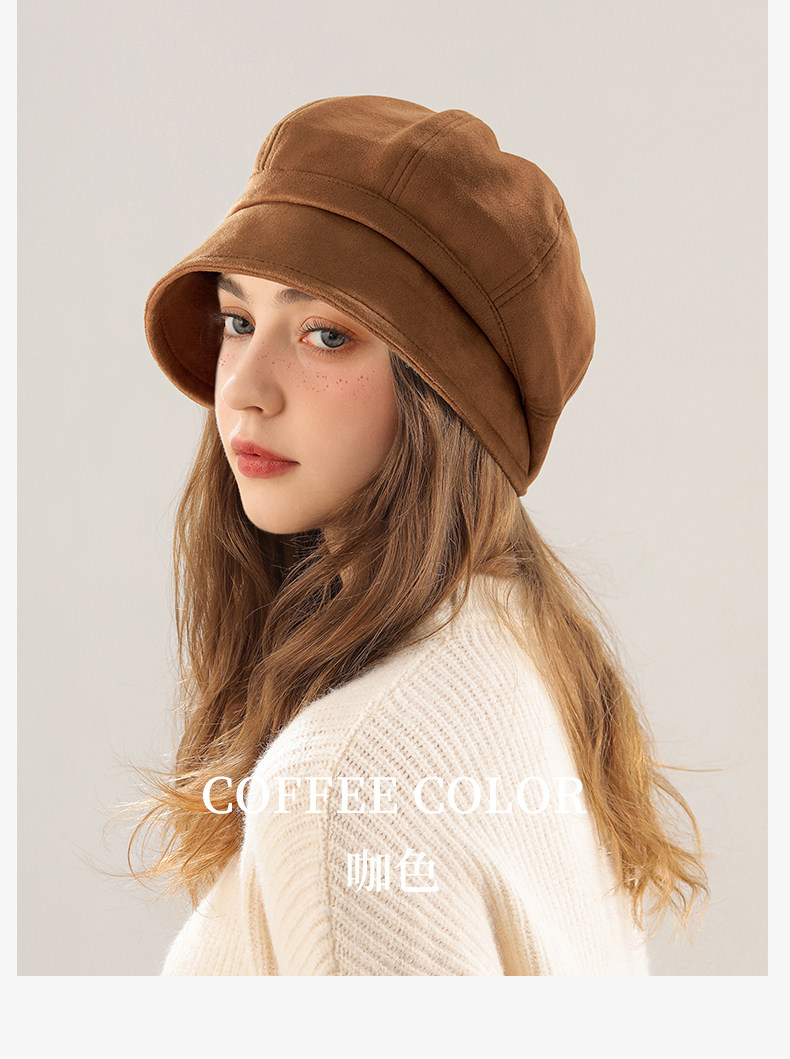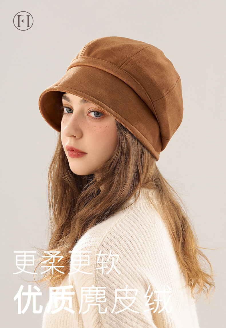 FHI autumn and winter new suede fisherman hat women's Japanese all-match face-showing small pile hat big head beret